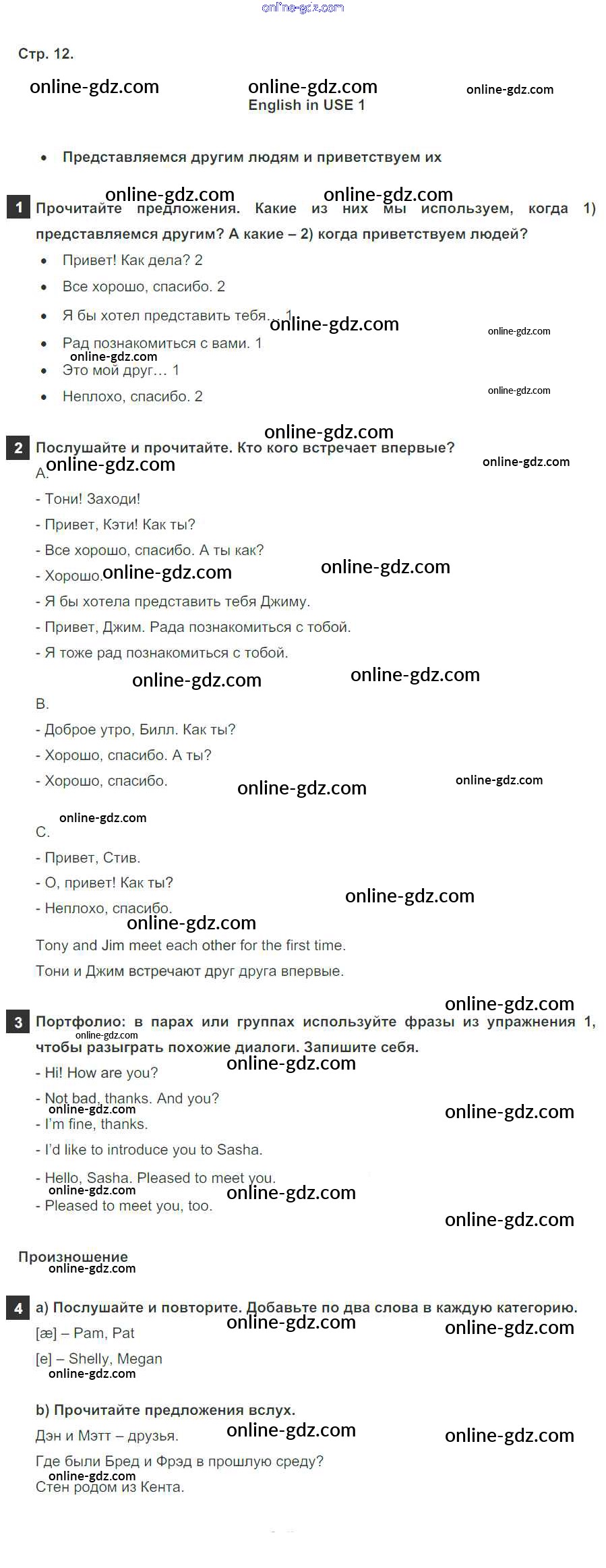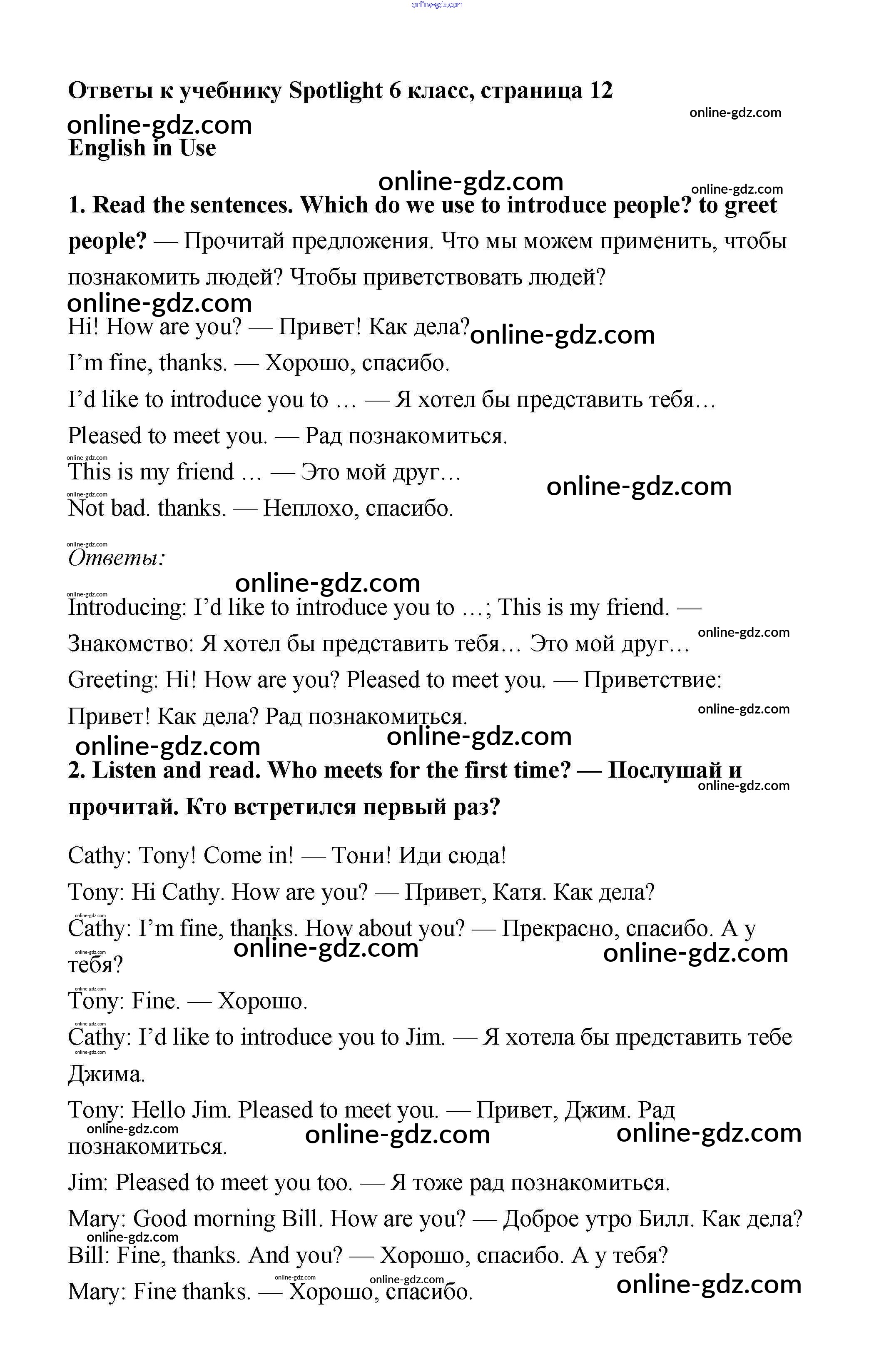 Готовые домашние задания по Английскому языку за 6 класс Учебник Ваулина, Дули Spotlight 2017 - Module 1. Who's who? Страницы 12