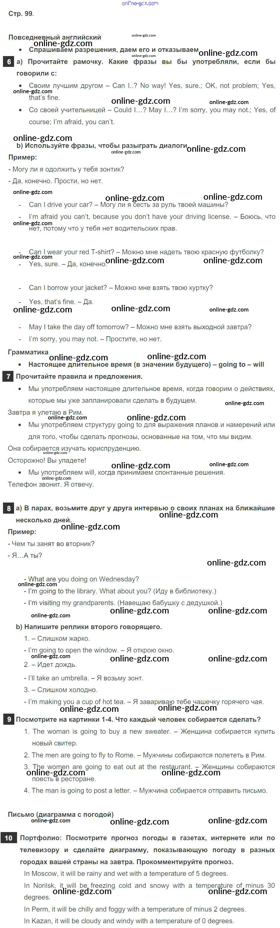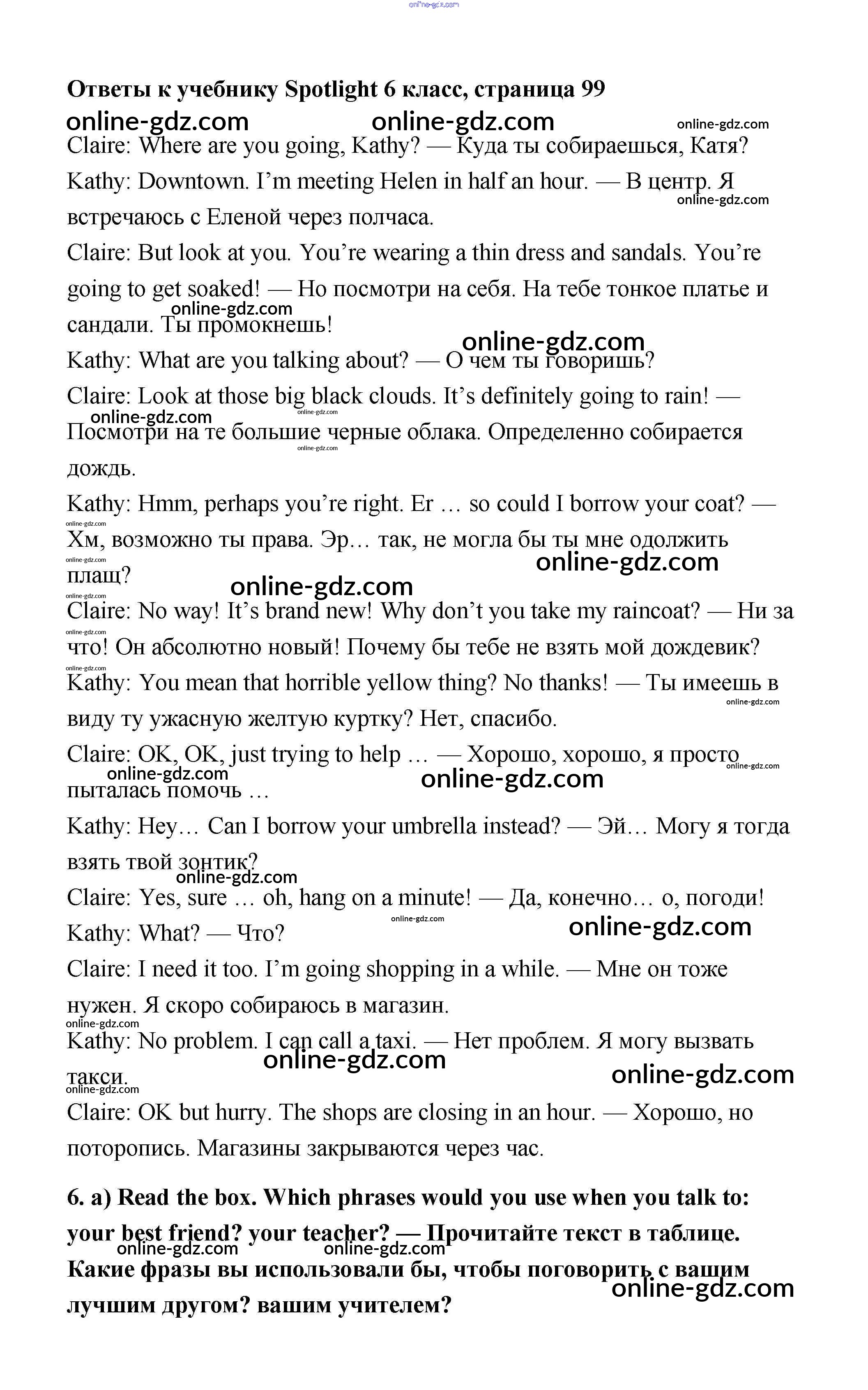 Готовые домашние задания по Английскому языку за 6 класс Учебник Ваулина, Дули Spotlight 2017 - Module 10. Holiday Time. Страницы 99