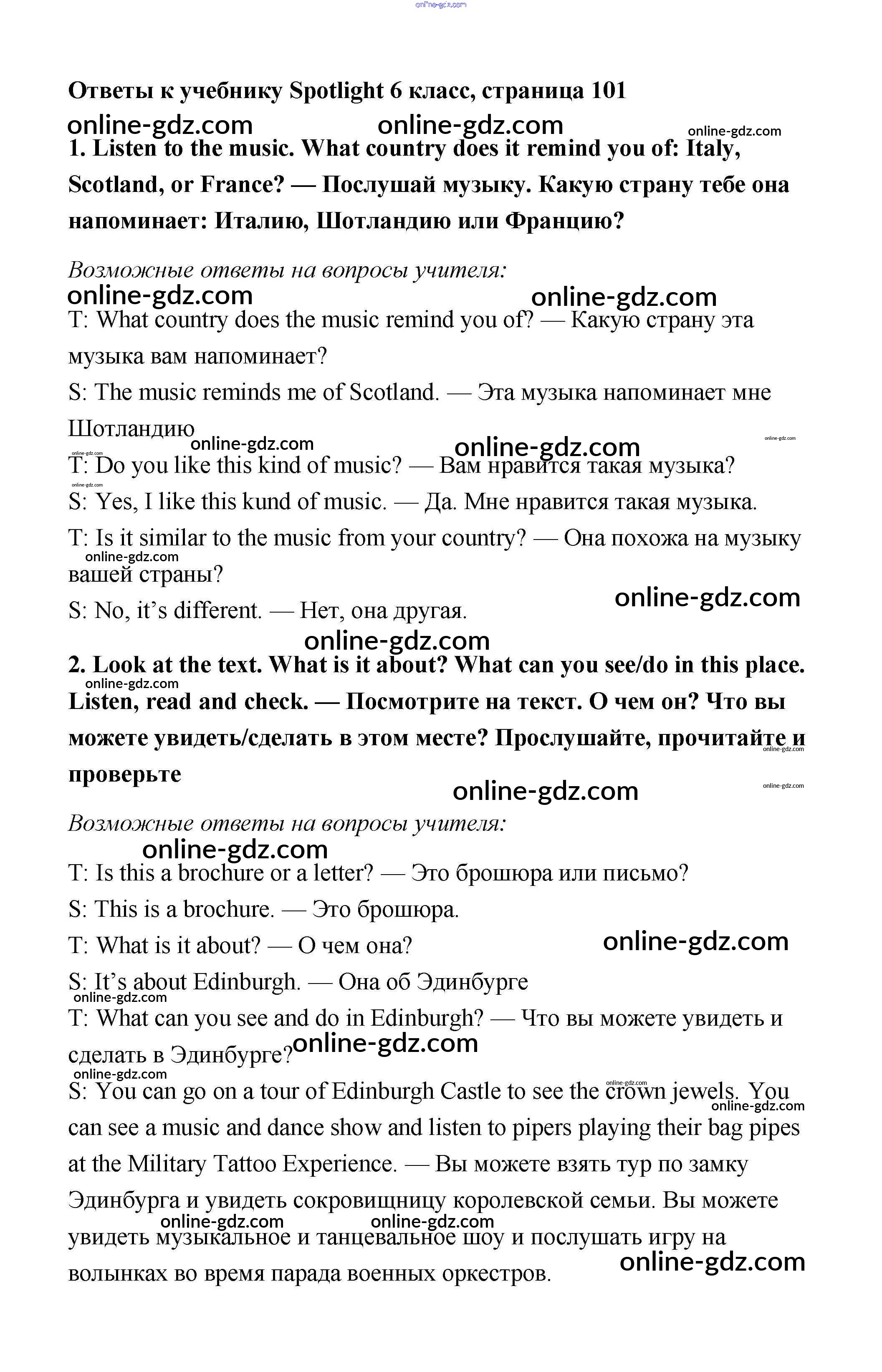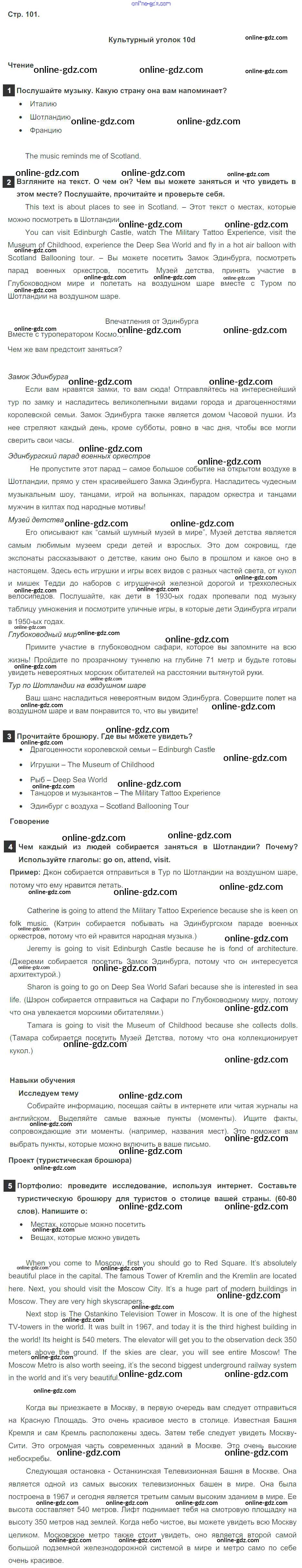 Готовые домашние задания по Английскому языку за 6 класс Учебник Ваулина, Дули Spotlight 2017 - Module 10. Holiday Time. Страницы 101