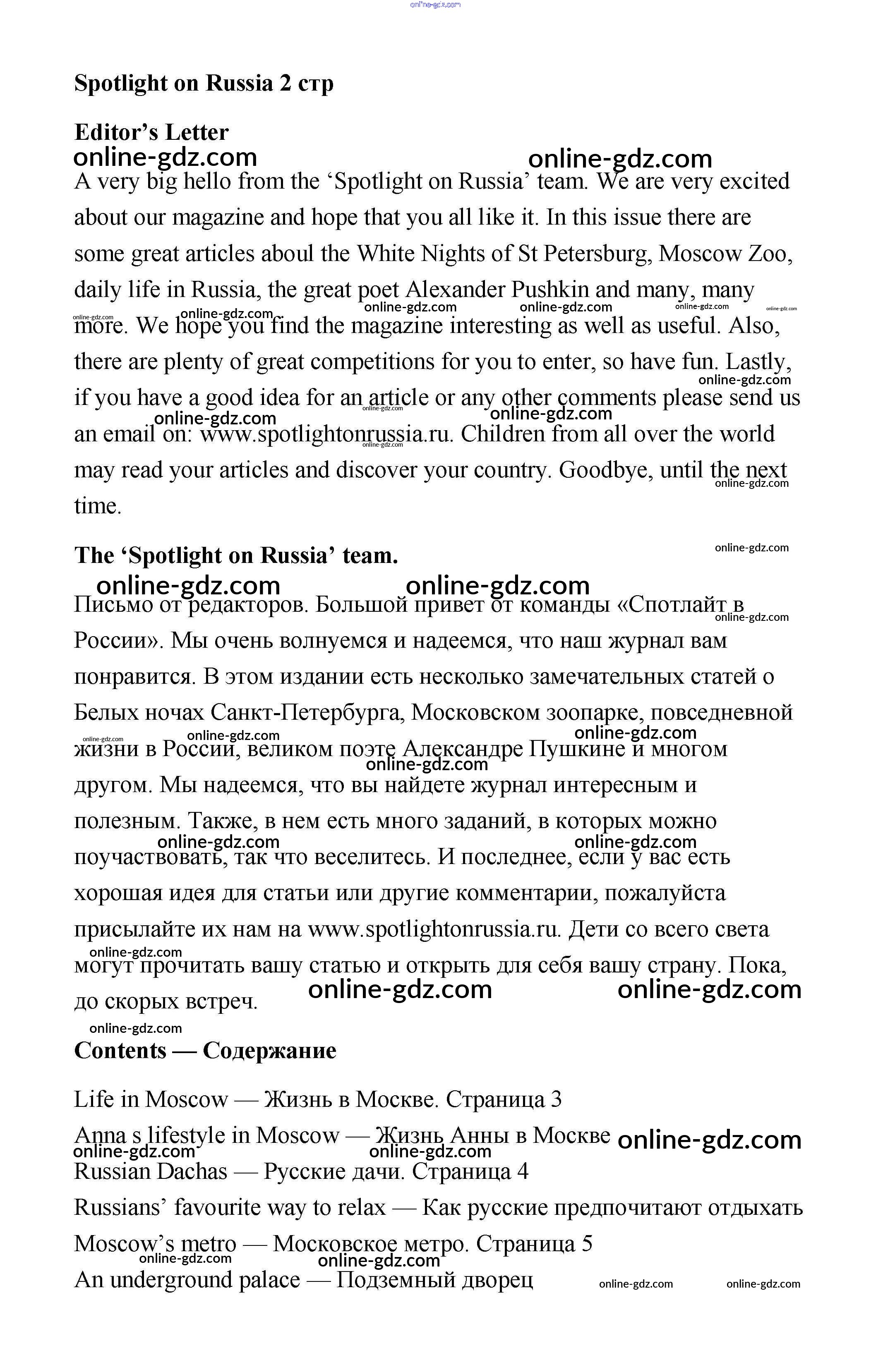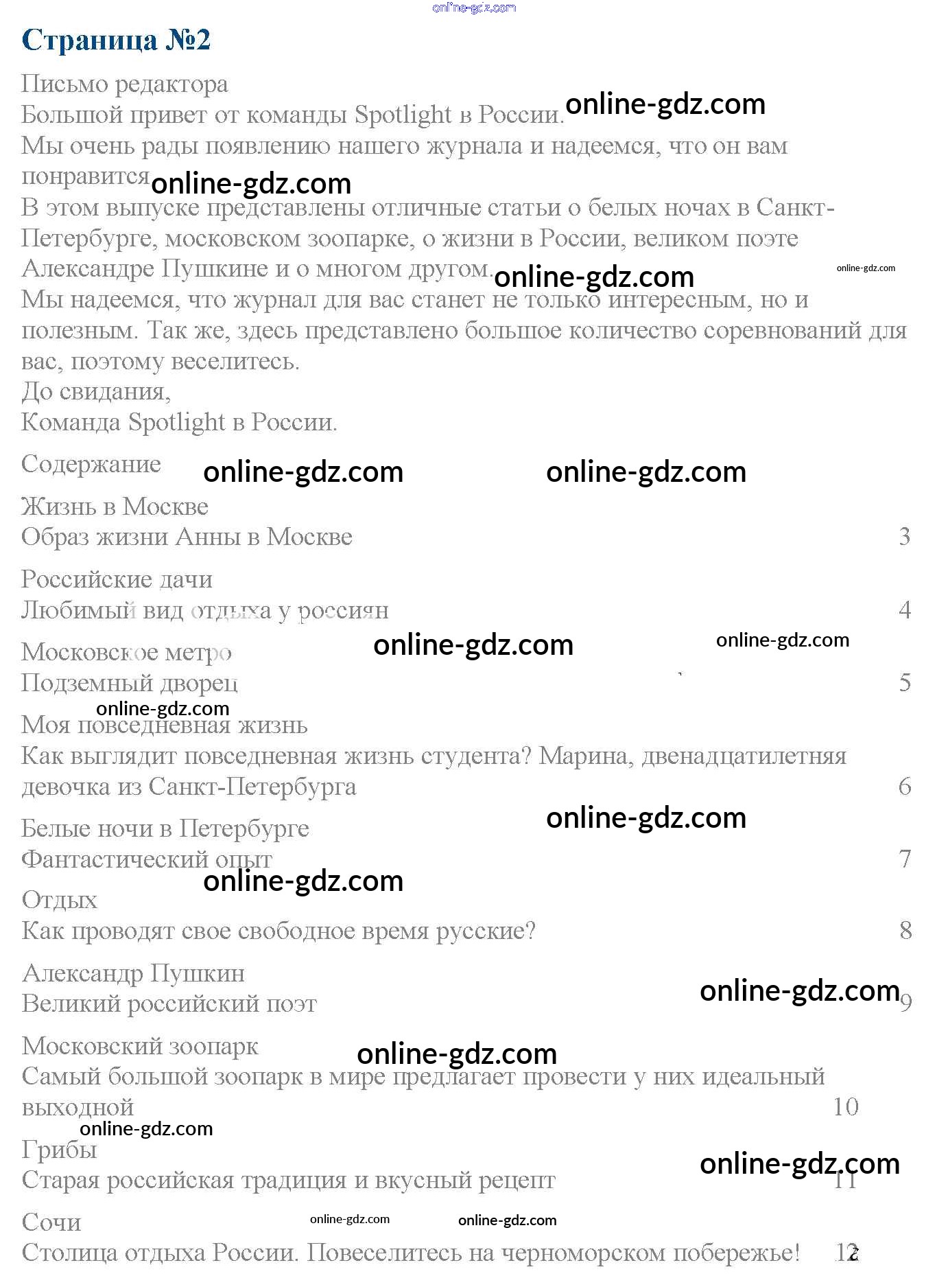 класс, от простых до сложных. Мы стремимся предоставить нашим пользователям максимально точные и полезные ответы к Учебнику Ваулина, Дули Spotlight - Spotlight on Russia. Страницы 2, поэтому мы постоянно работаем над улучшением нашего контента. Мы всегда готовы помочь!