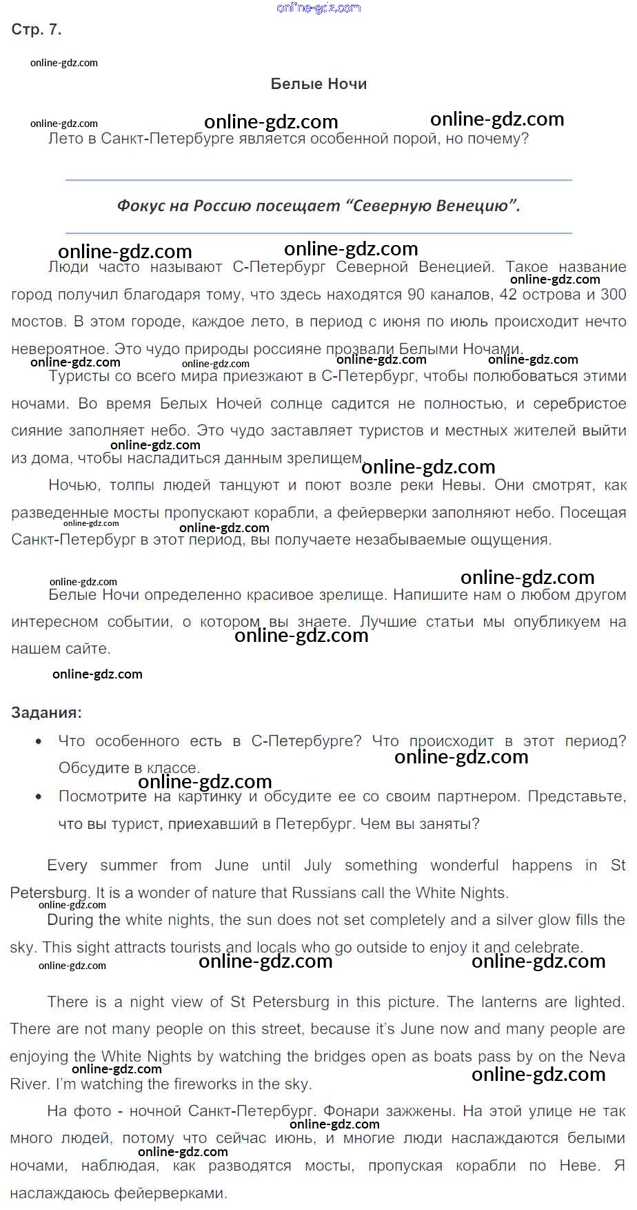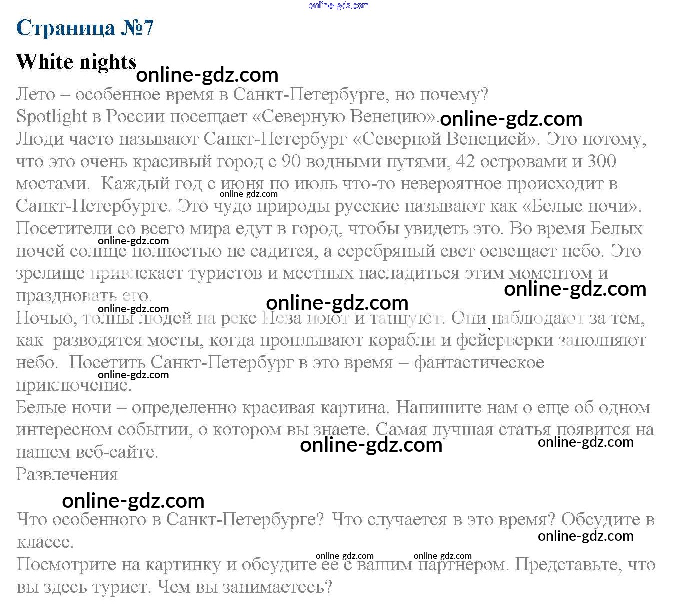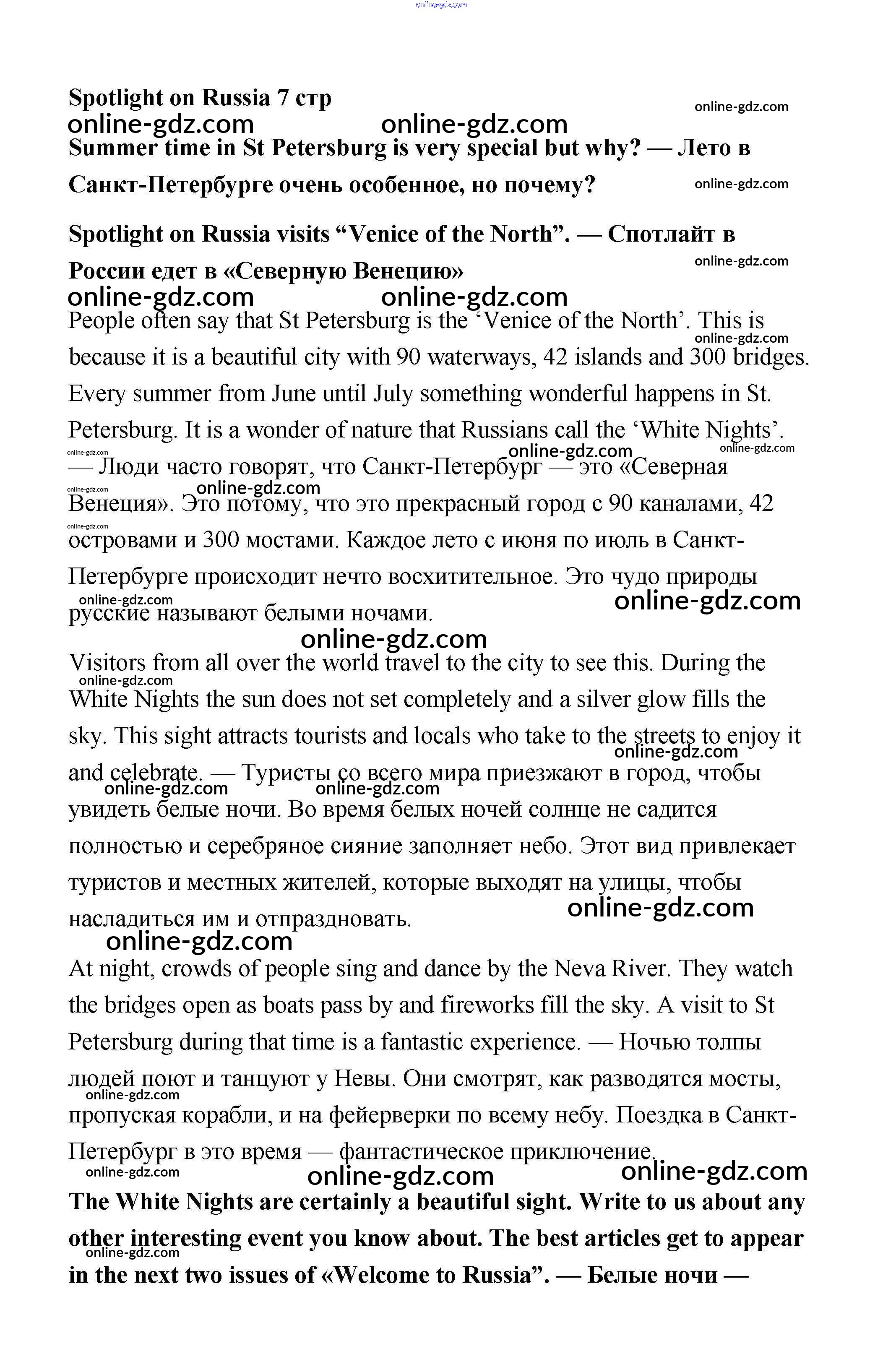 Готовые домашние задания по Английскому языку за 6 класс Учебник Ваулина, Дули Spotlight 2017 - Spotlight on Russia. Страницы 7