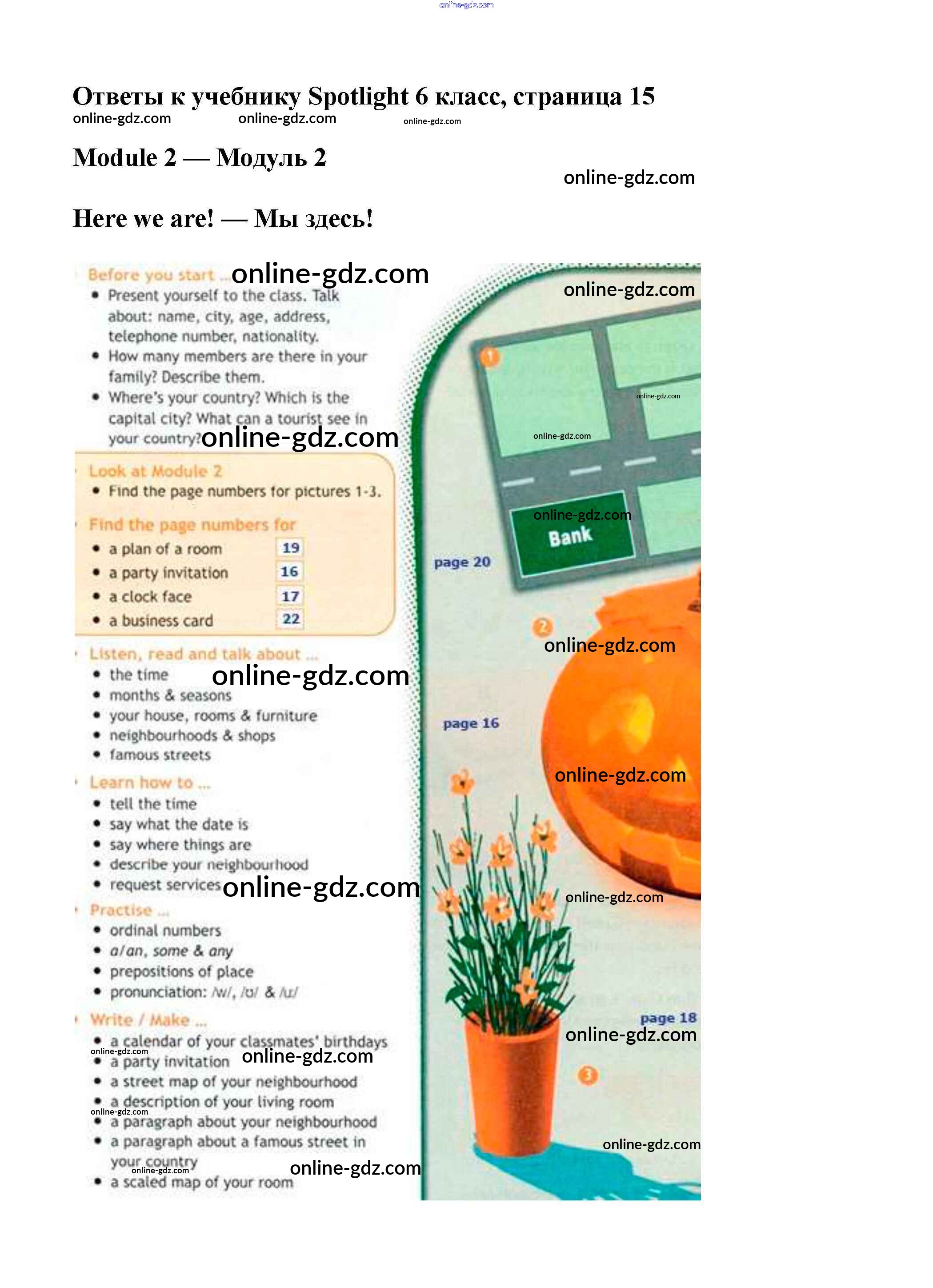 Готовые домашние задания по Английскому языку за 6 класс Учебник Ваулина, Дули Spotlight 2017 - Module 2. Here we are! Страницы 15
