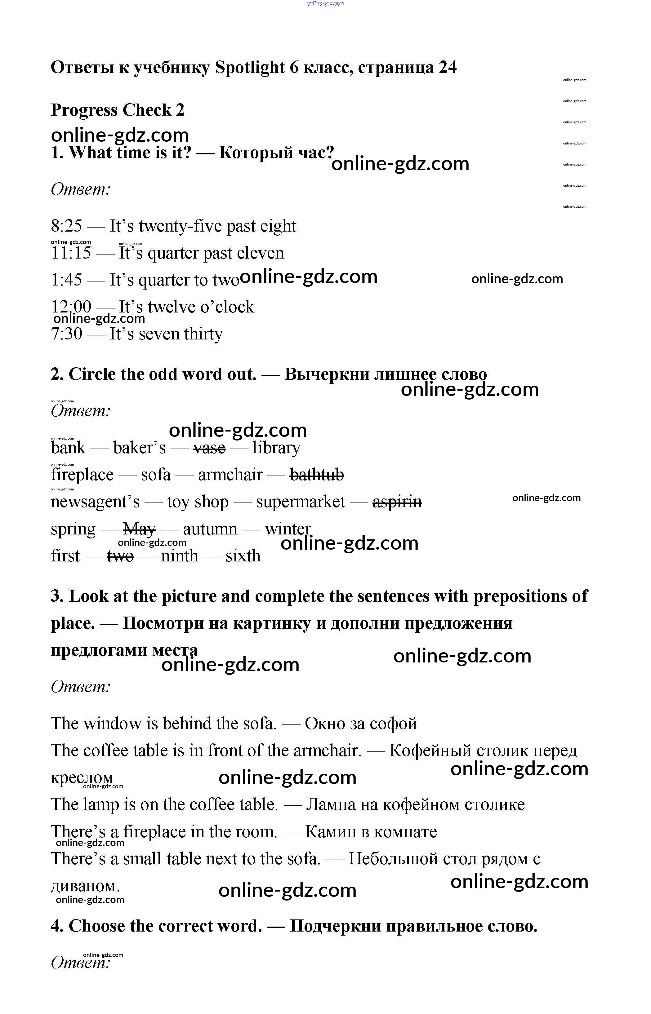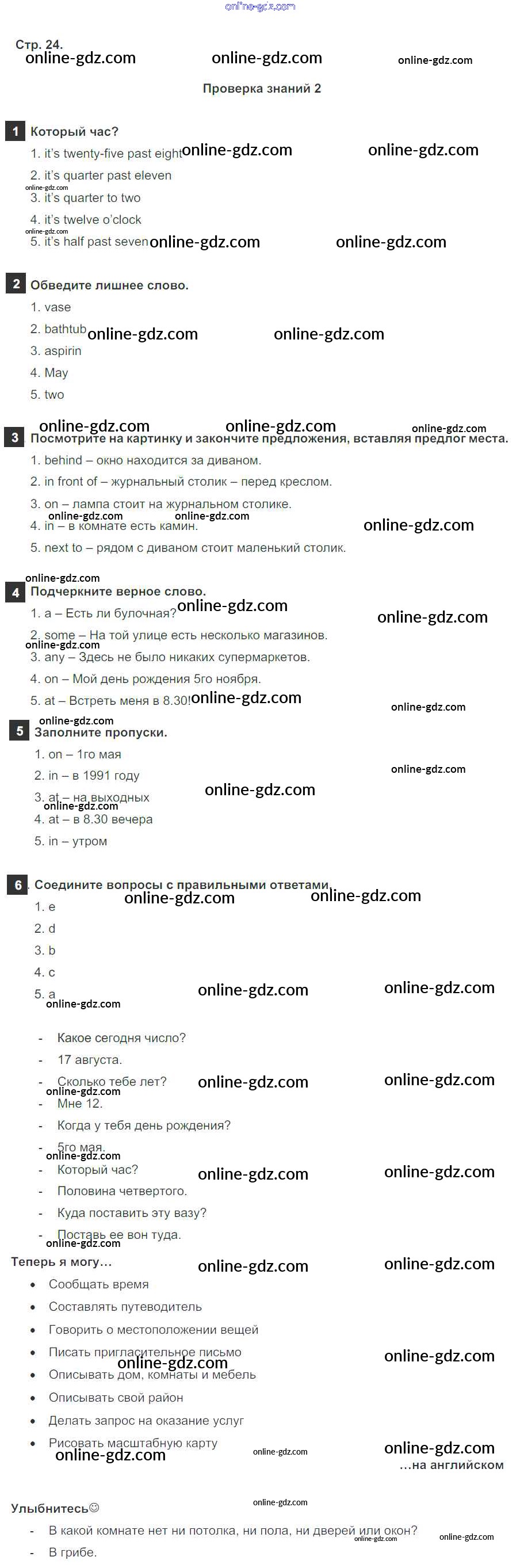 Готовые домашние задания по Английскому языку за 6 класс Учебник Ваулина, Дули Spotlight 2017 - Module 2. Here we are! Страницы 24