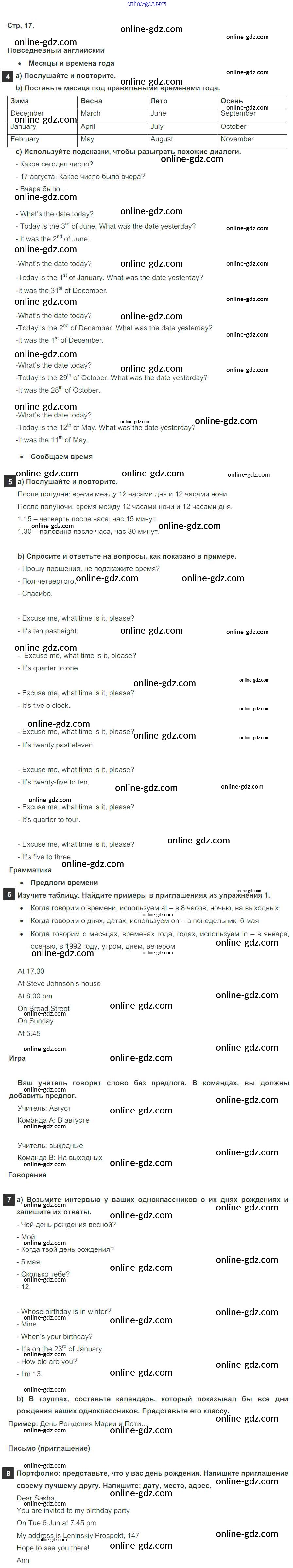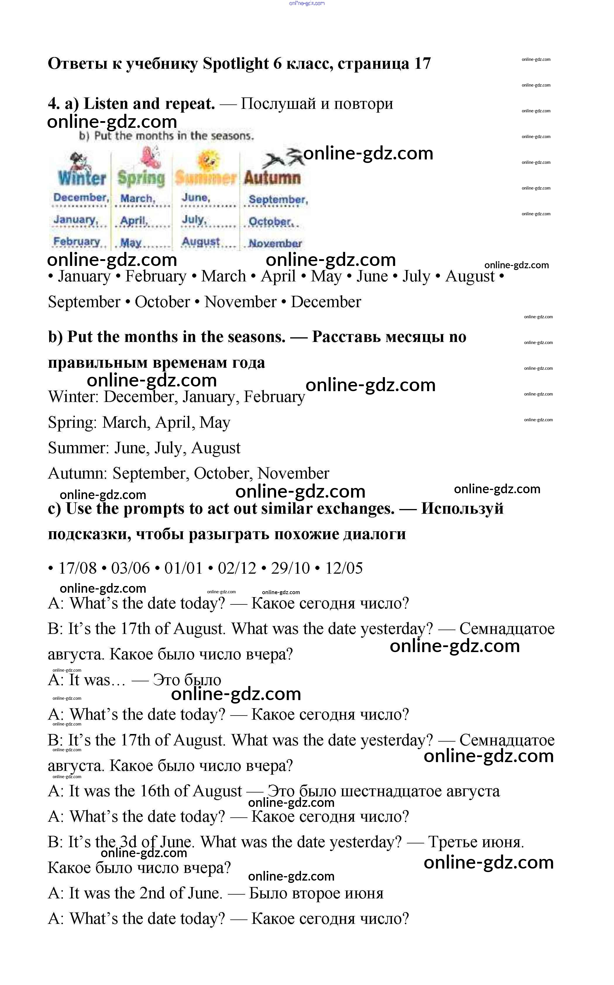 Готовые домашние задания по Английскому языку за 6 класс Учебник Ваулина, Дули Spotlight 2017 - Module 2. Here we are! Страницы 17