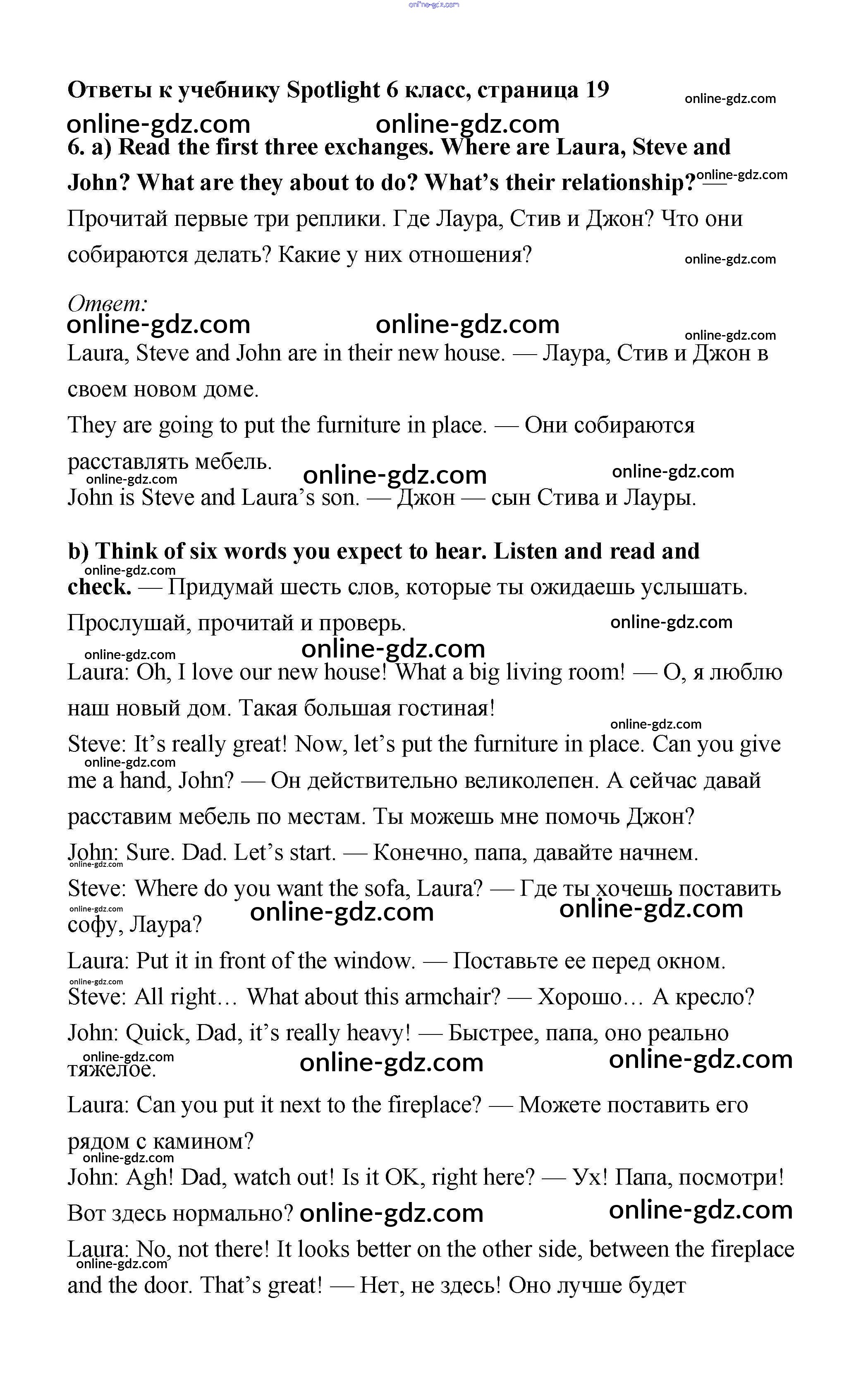 Готовые домашние задания по Английскому языку за 6 класс Учебник Ваулина, Дули Spotlight 2017 - Module 2. Here we are! Страницы 19