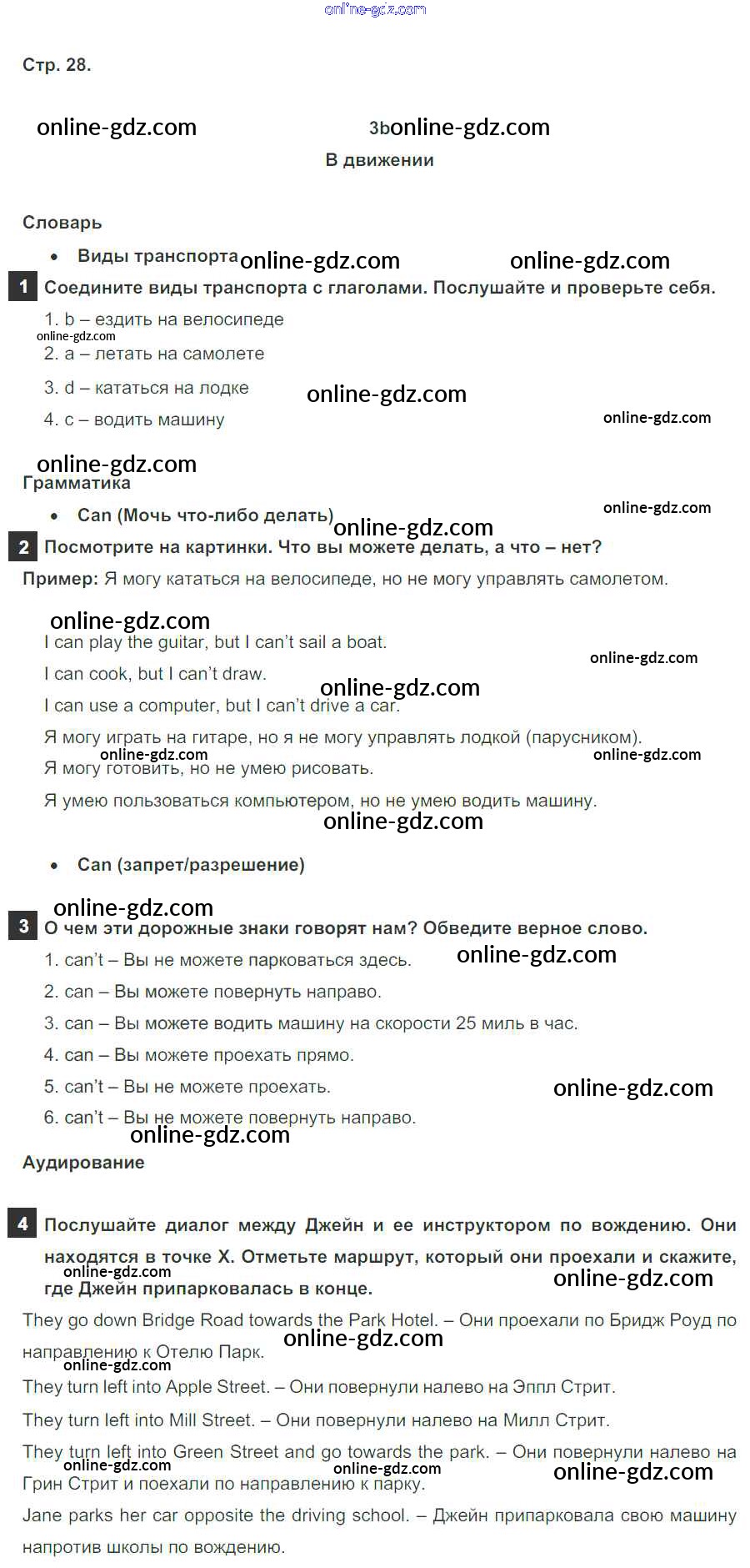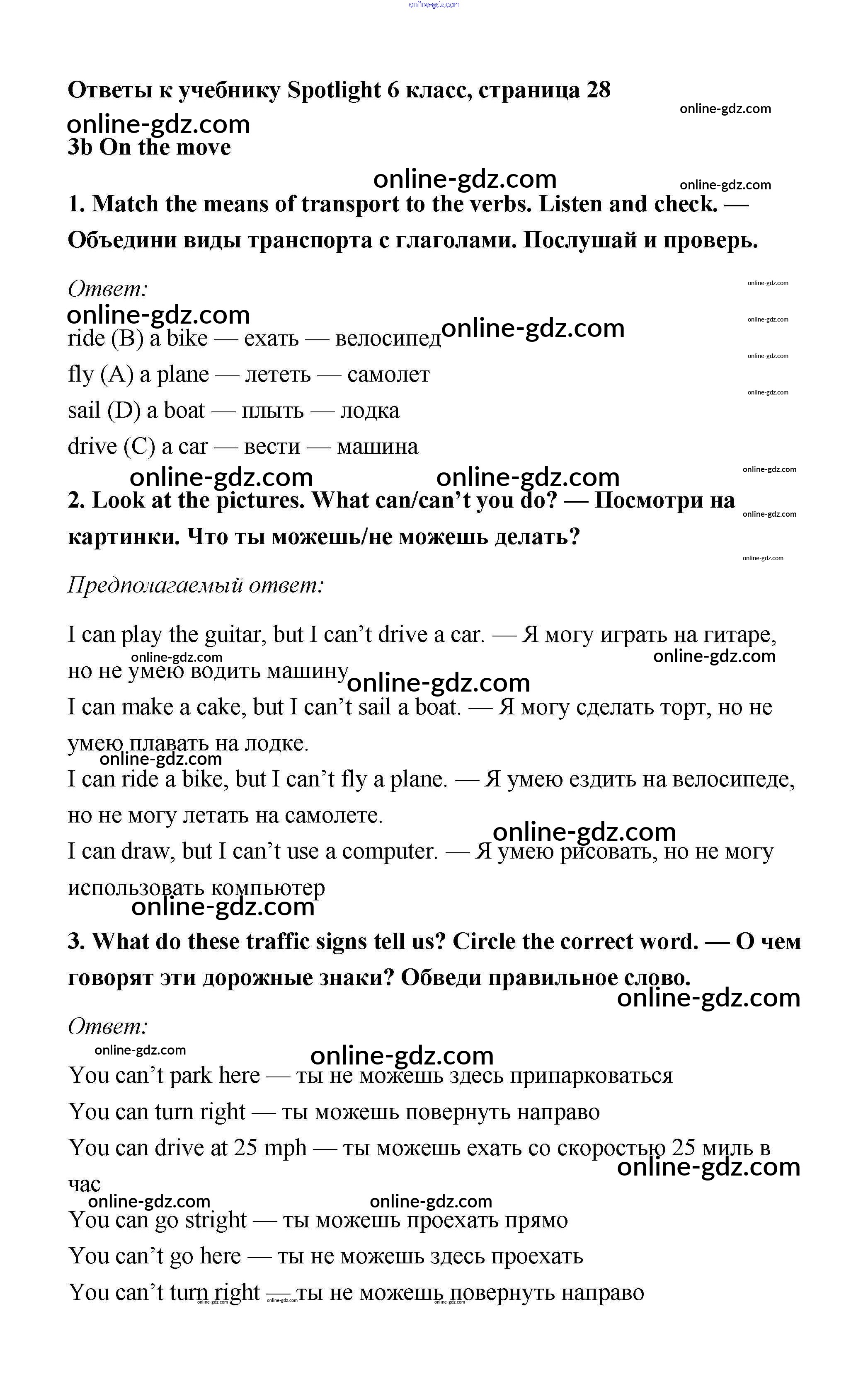 Готовые домашние задания по Английскому языку за 6 класс Учебник Ваулина, Дули Spotlight 2017 - Module 3. Getting around. Страницы 28
