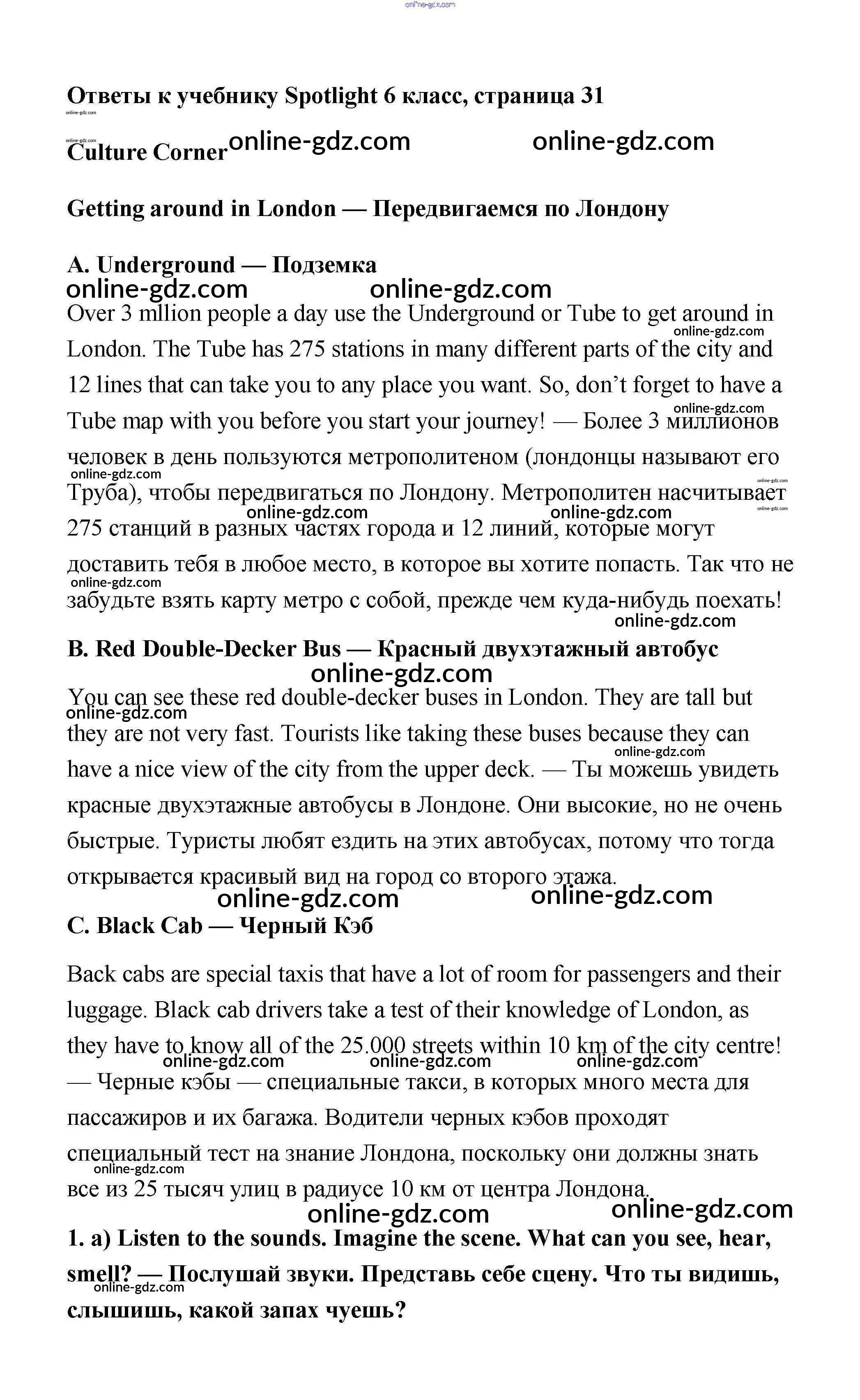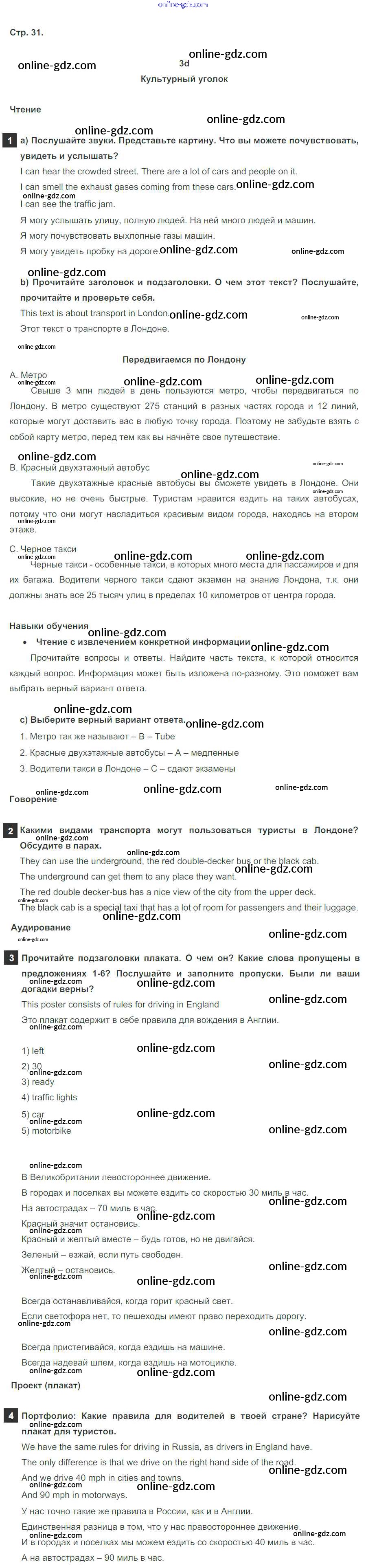 Готовые домашние задания по Английскому языку за 6 класс Учебник Ваулина, Дули Spotlight 2017 - Module 3. Getting around. Страницы 31