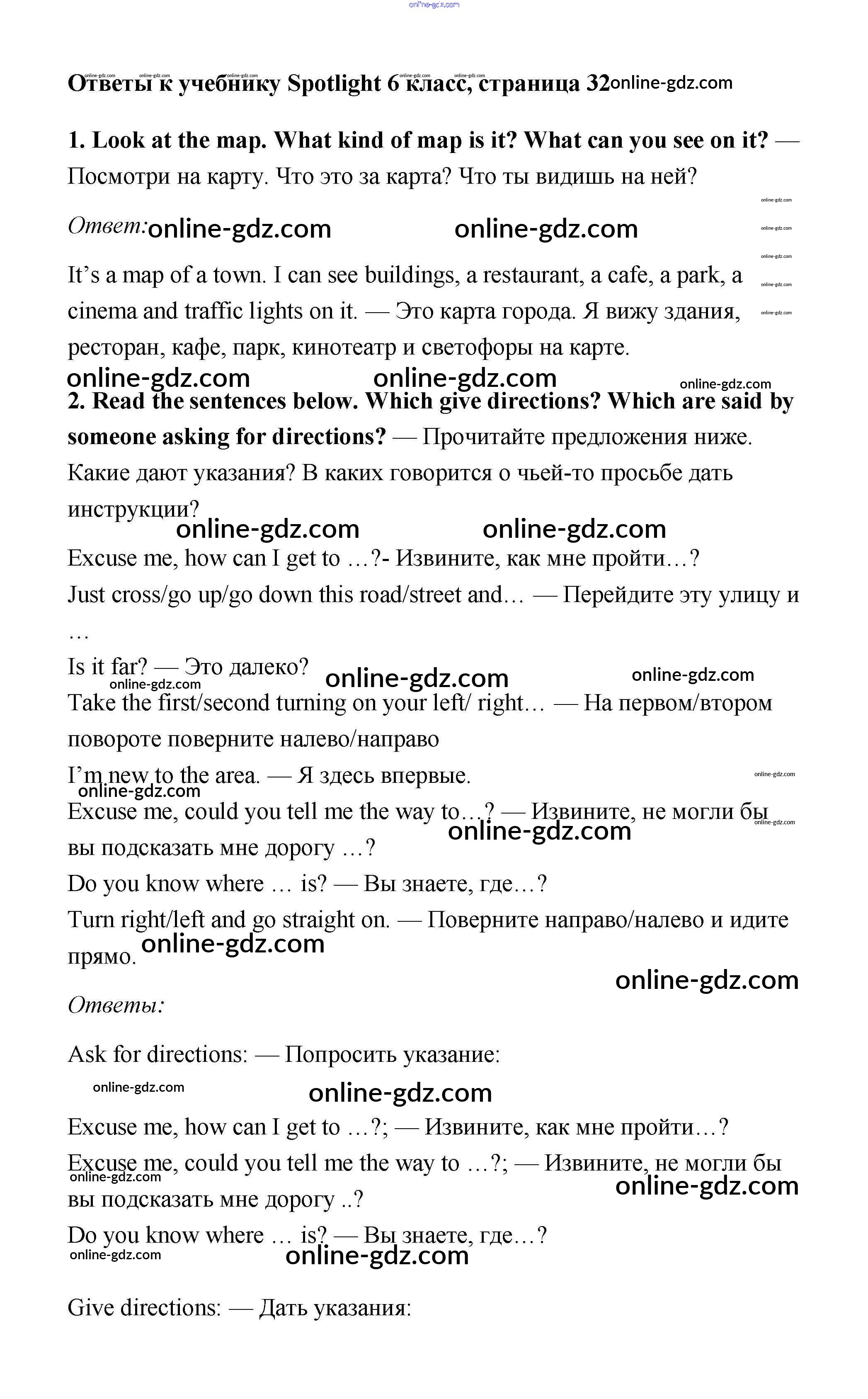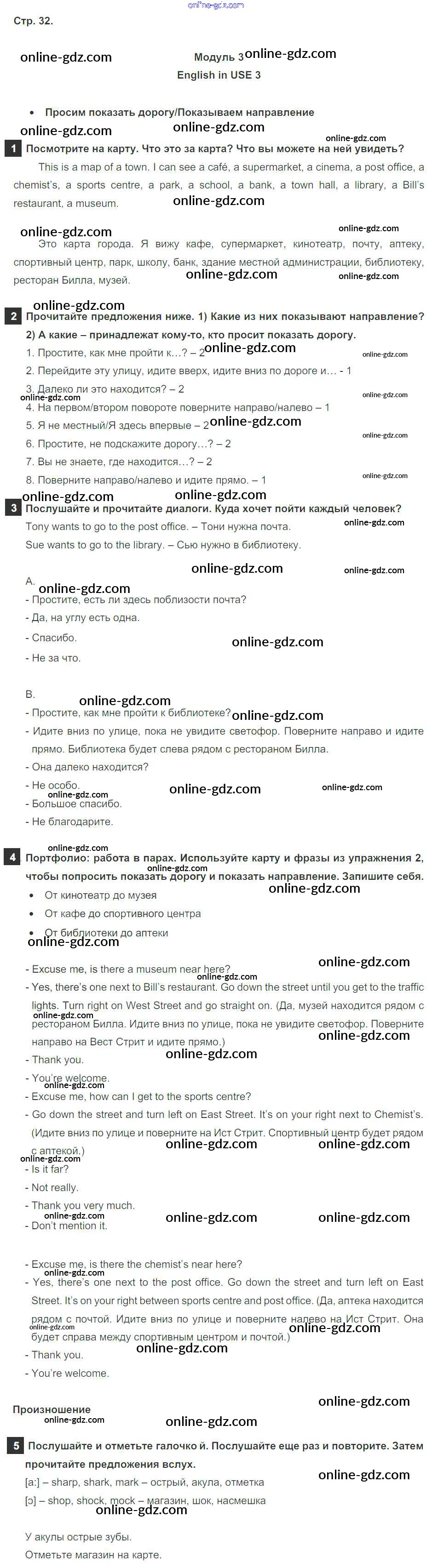 Готовые домашние задания по Английскому языку за 6 класс Учебник Ваулина, Дули Spotlight 2017 - Module 3. Getting around. Страницы 32