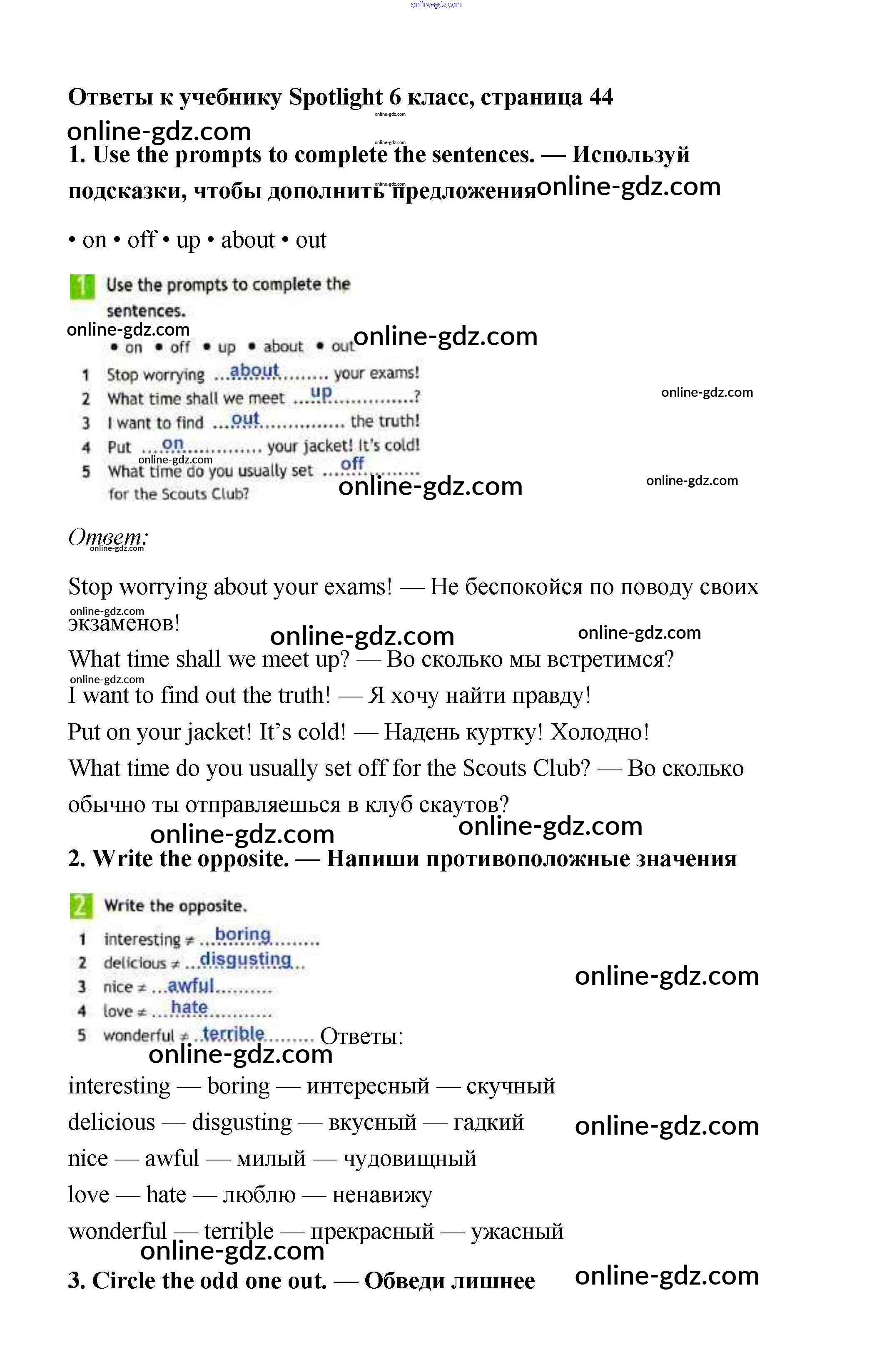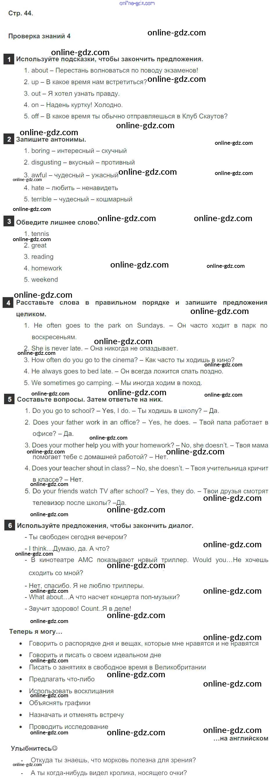 Готовые домашние задания по Английскому языку за 6 класс Учебник Ваулина, Дули Spotlight 2017 - Module 4. Day after day. Страницы 44