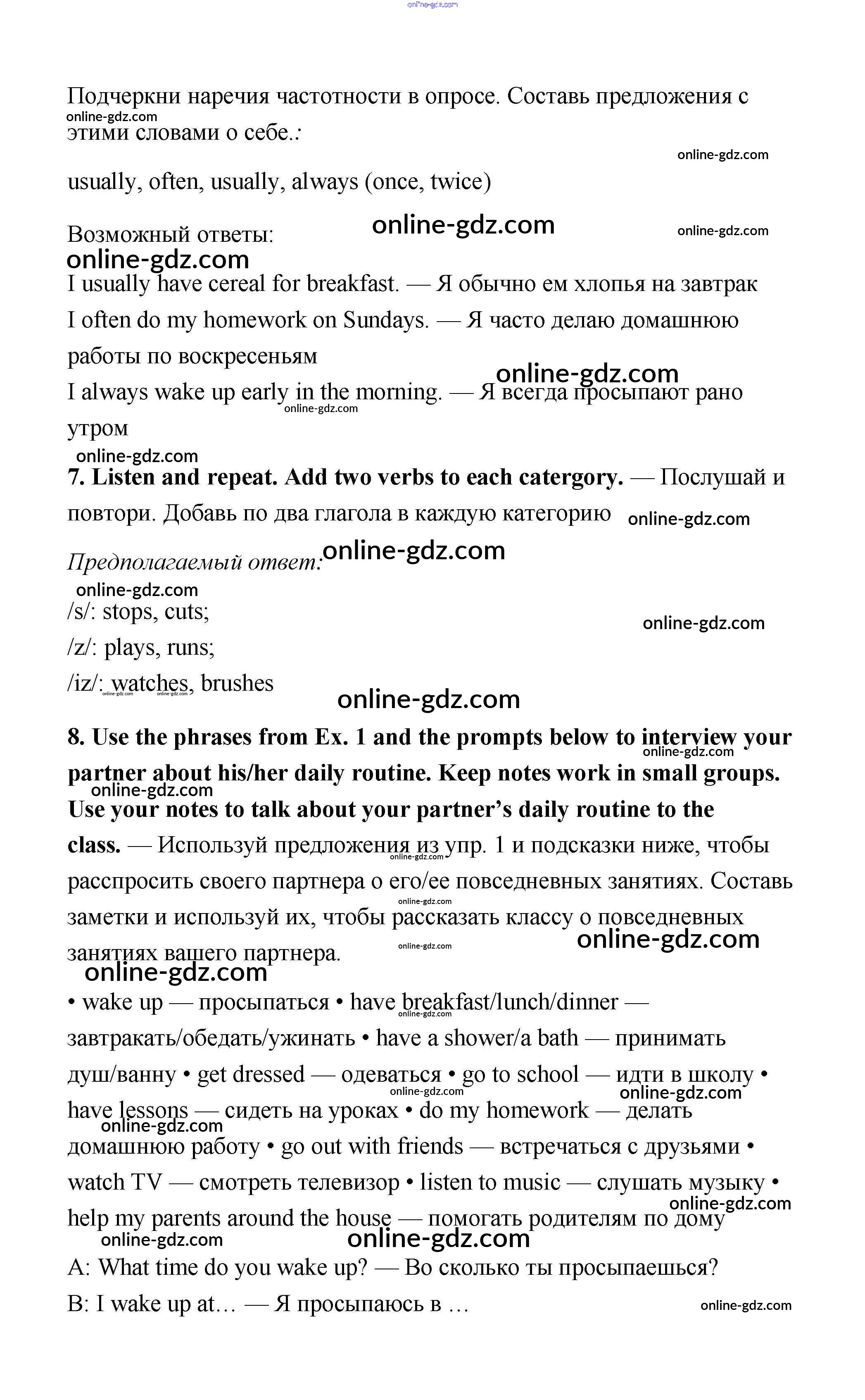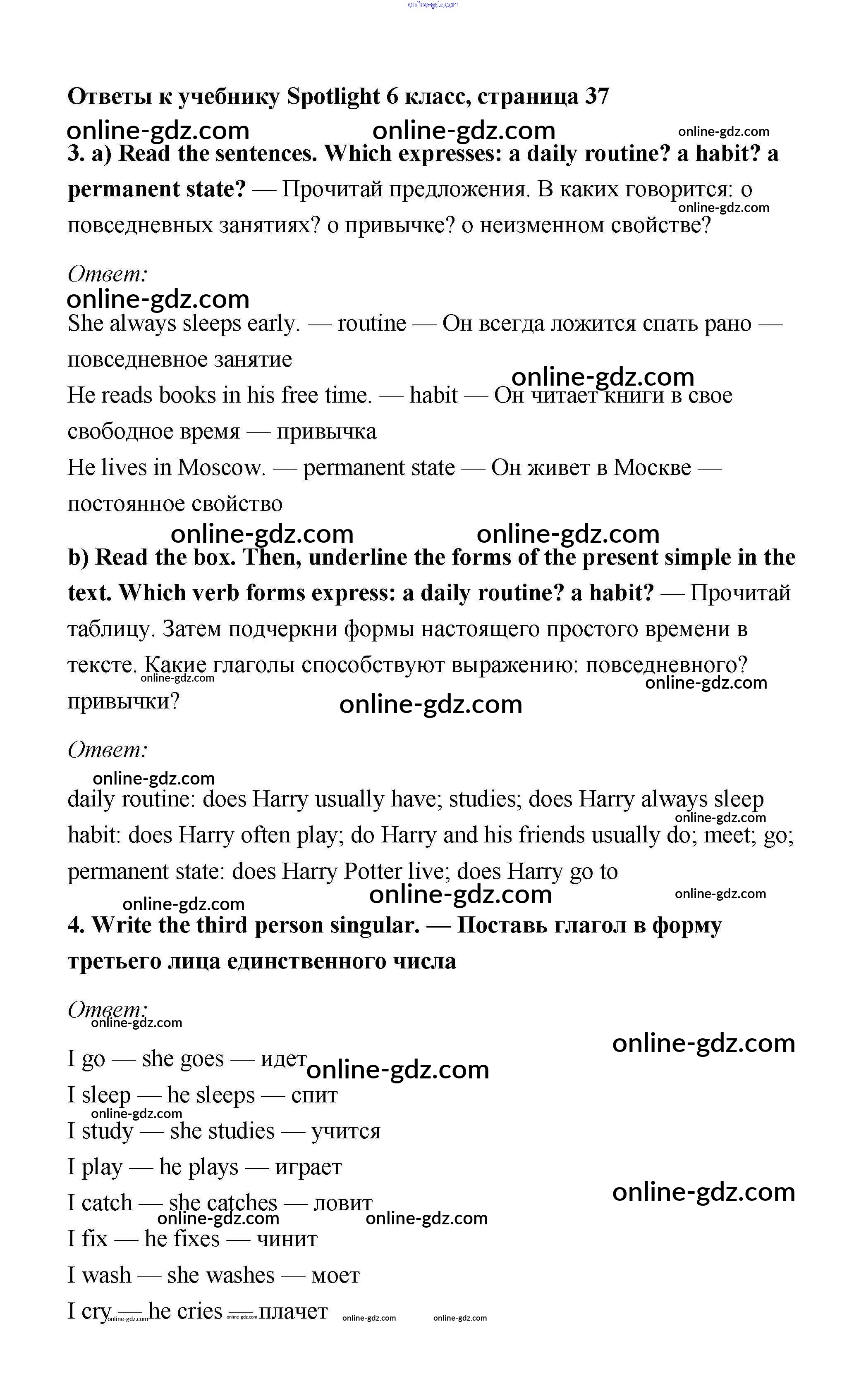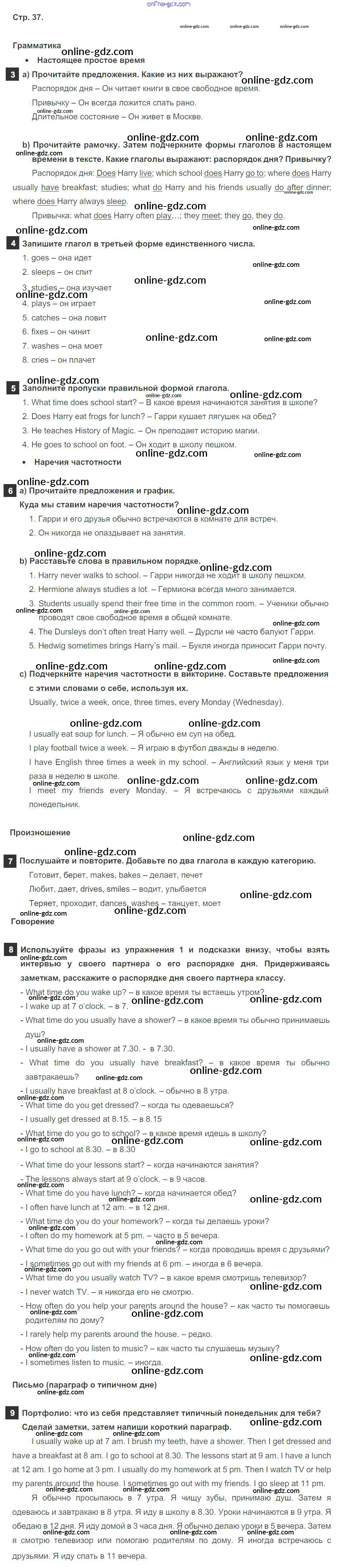 Готовые домашние задания по Английскому языку за 6 класс Учебник Ваулина, Дули Spotlight 2017 - Module 4. Day after day. Страницы 37