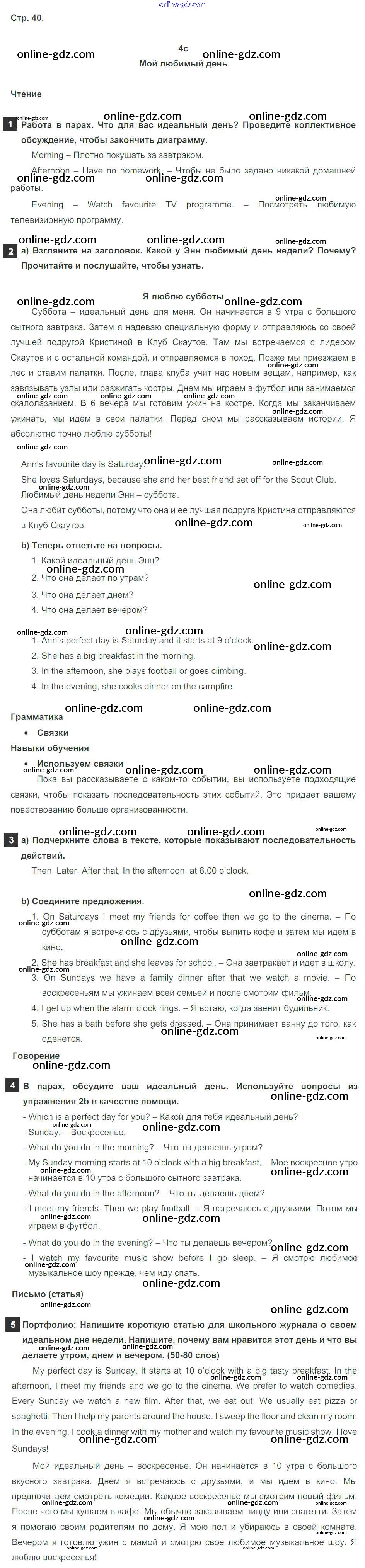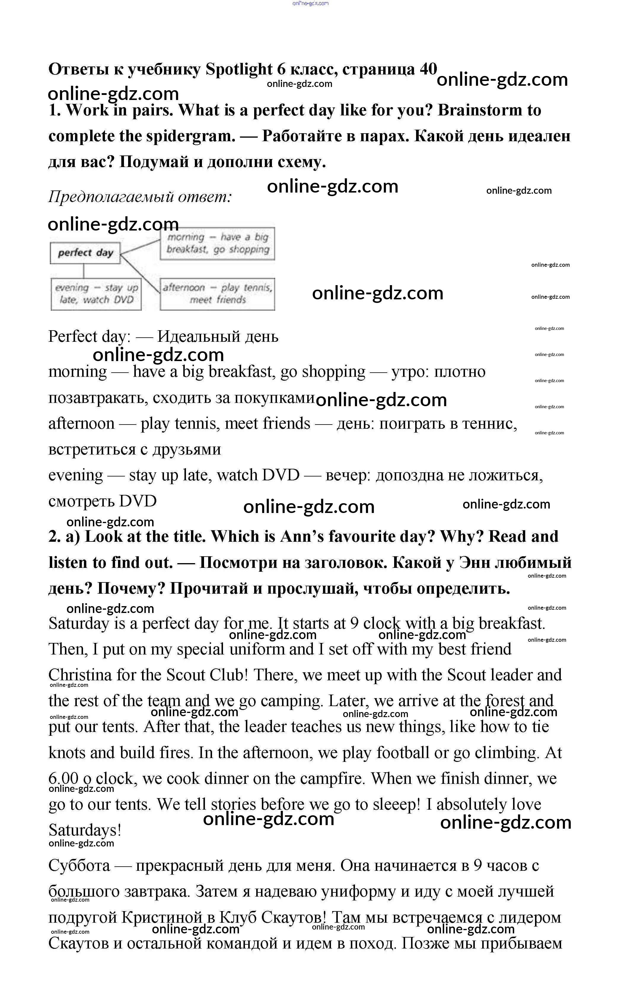 Готовые домашние задания по Английскому языку за 6 класс Учебник Ваулина, Дули Spotlight 2017 - Module 4. Day after day. Страницы 40