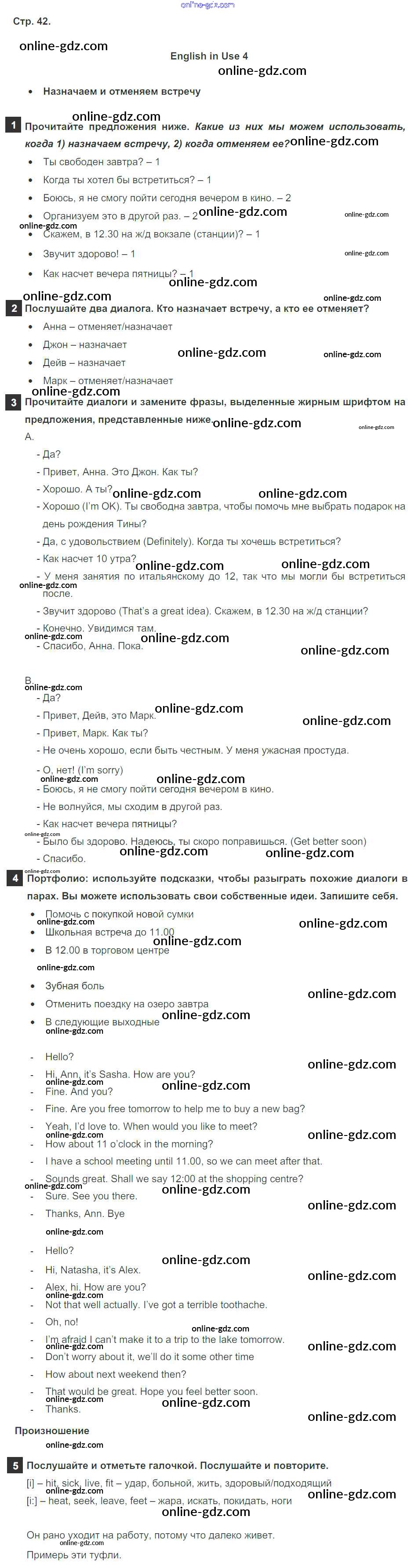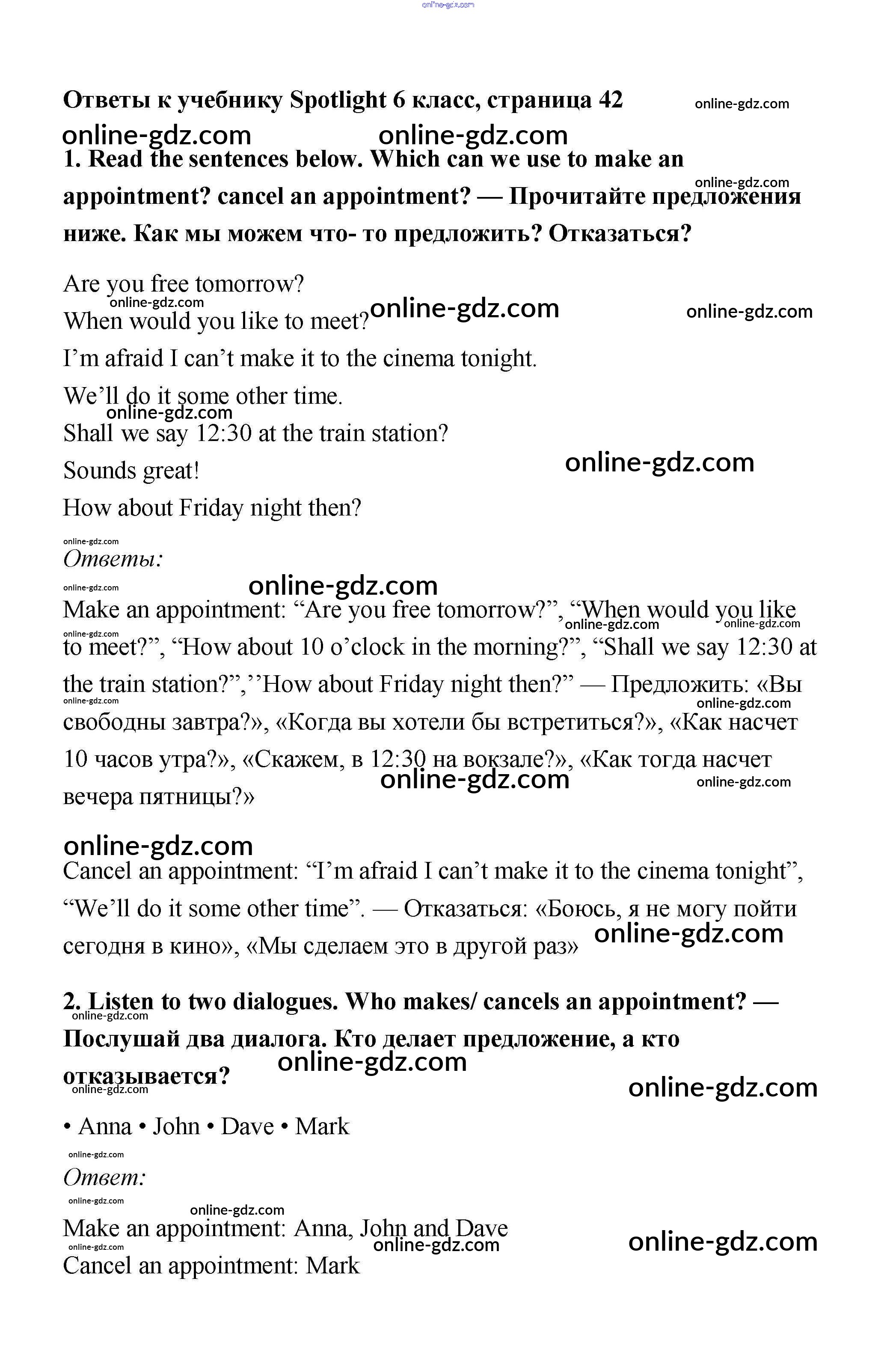 Готовые домашние задания по Английскому языку за 6 класс Учебник Ваулина, Дули Spotlight 2017 - Module 4. Day after day. Страницы 42