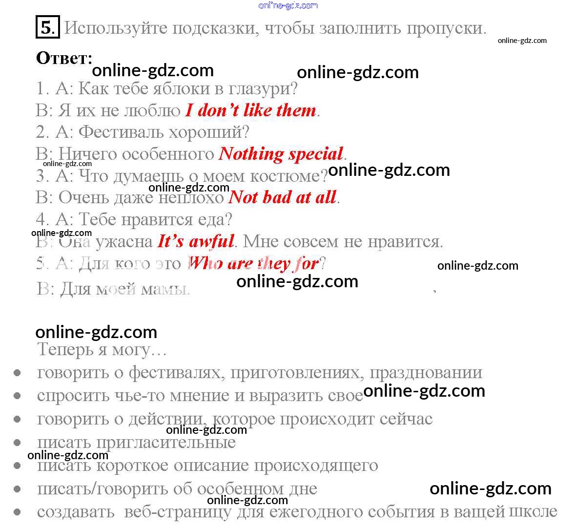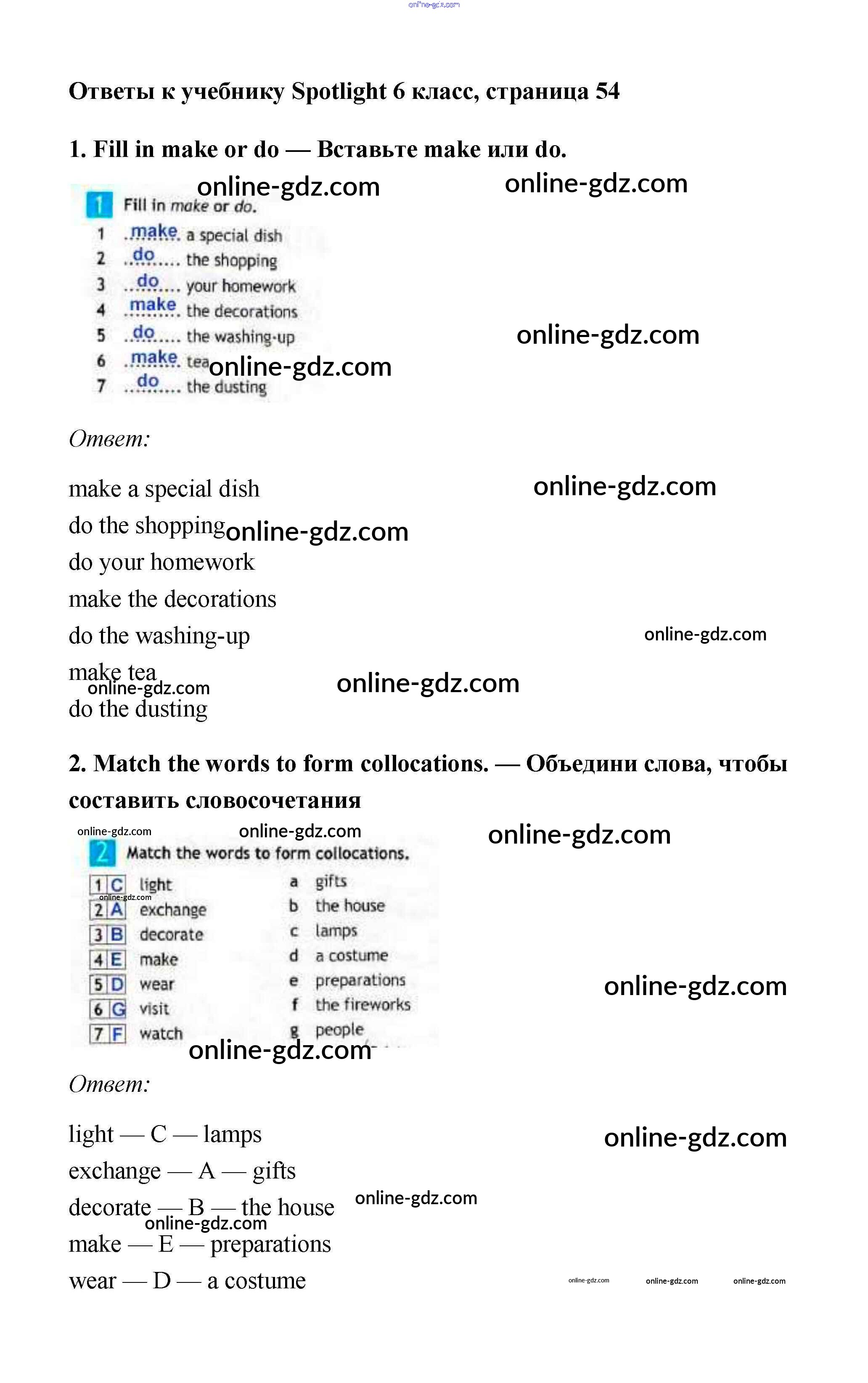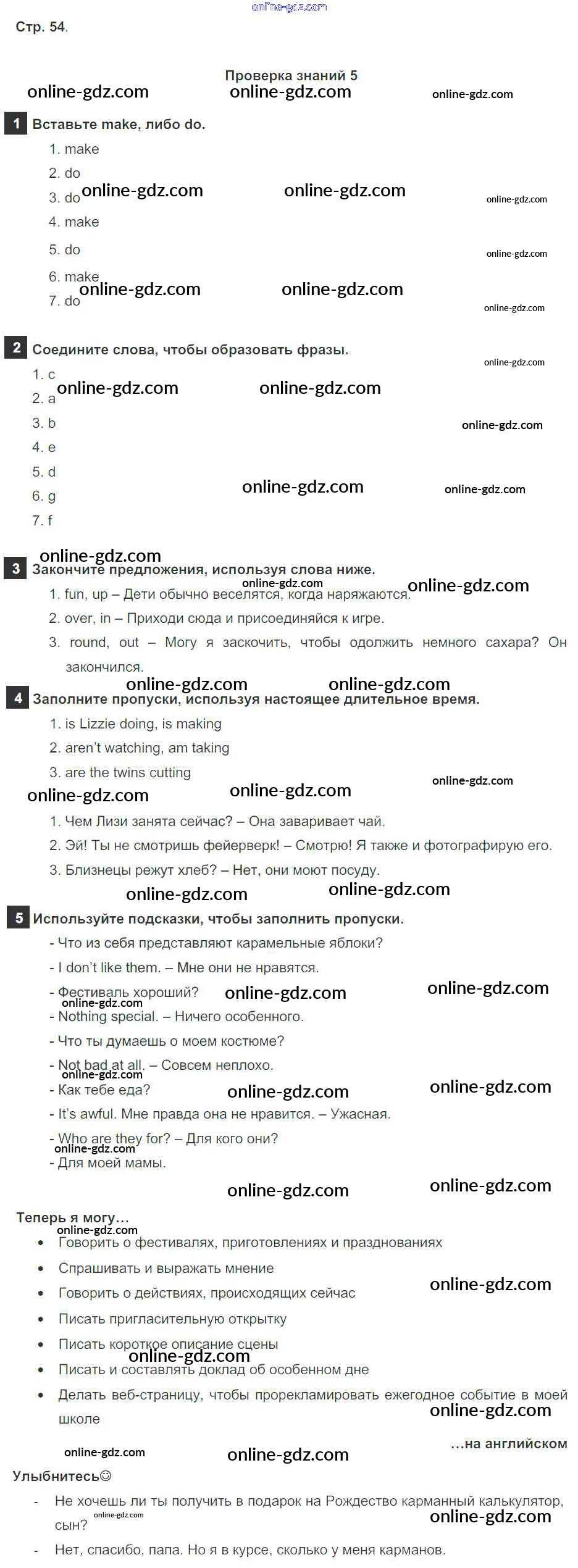 Готовые домашние задания по Английскому языку за 6 класс Учебник Ваулина, Дули Spotlight 2017 - Module 5. Feasts. Страницы 54