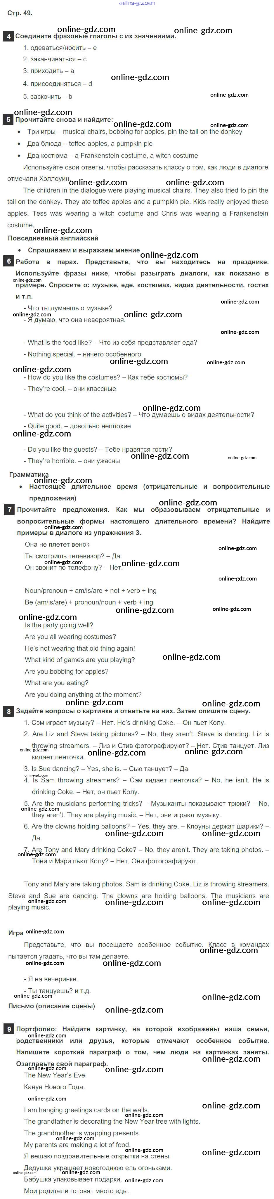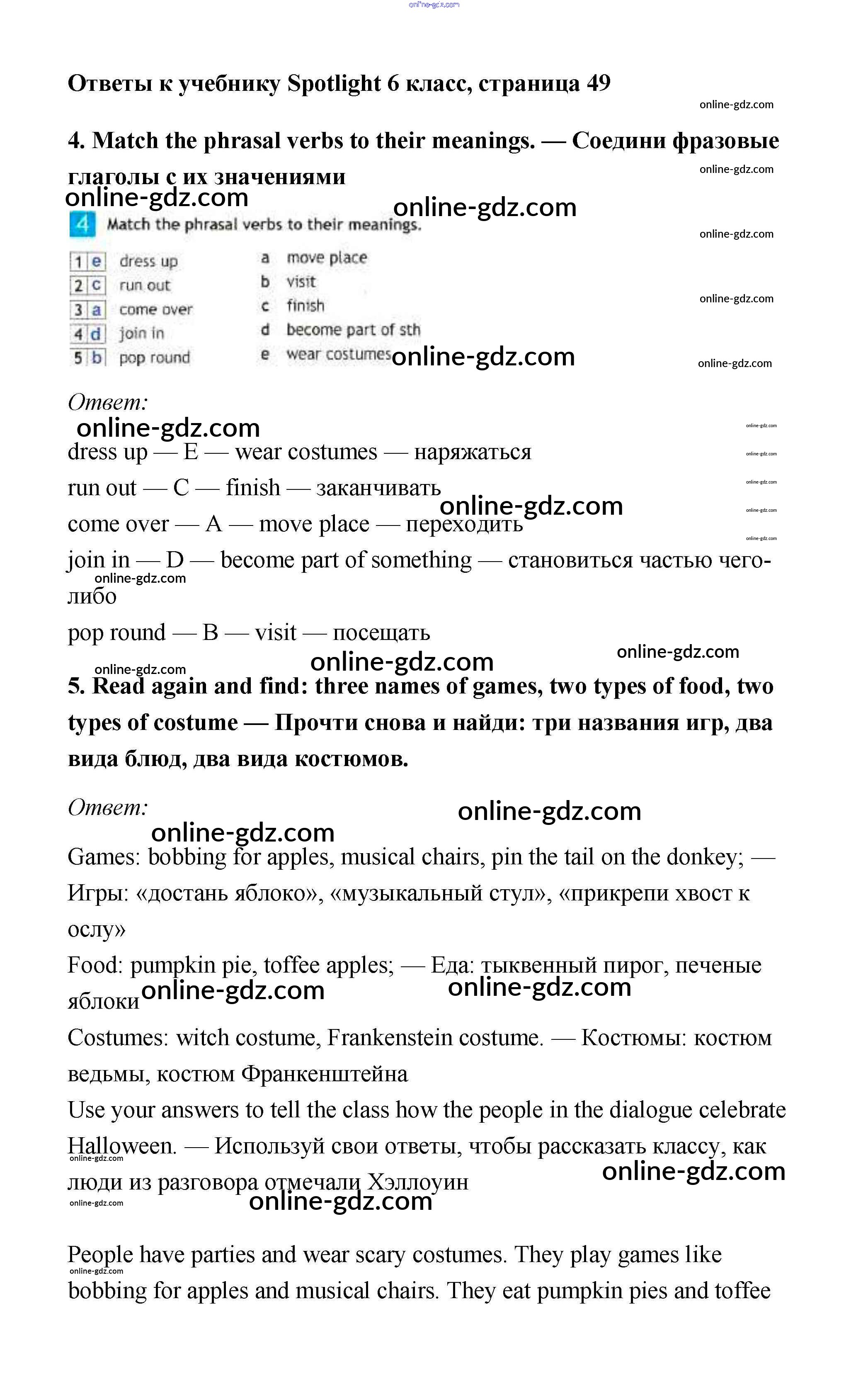 Готовые домашние задания по Английскому языку за 6 класс Учебник Ваулина, Дули Spotlight 2017 - Module 5. Feasts. Страницы 49
