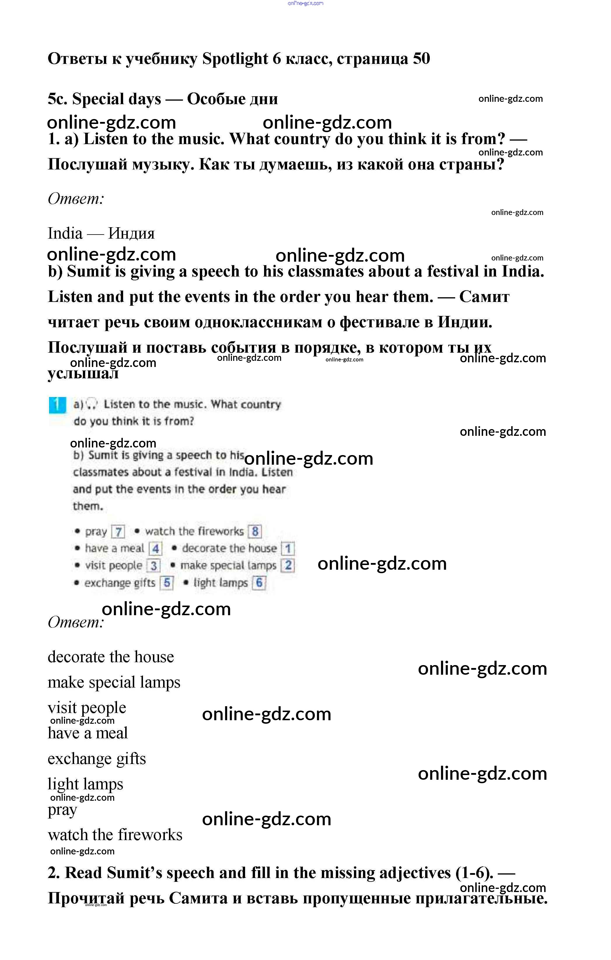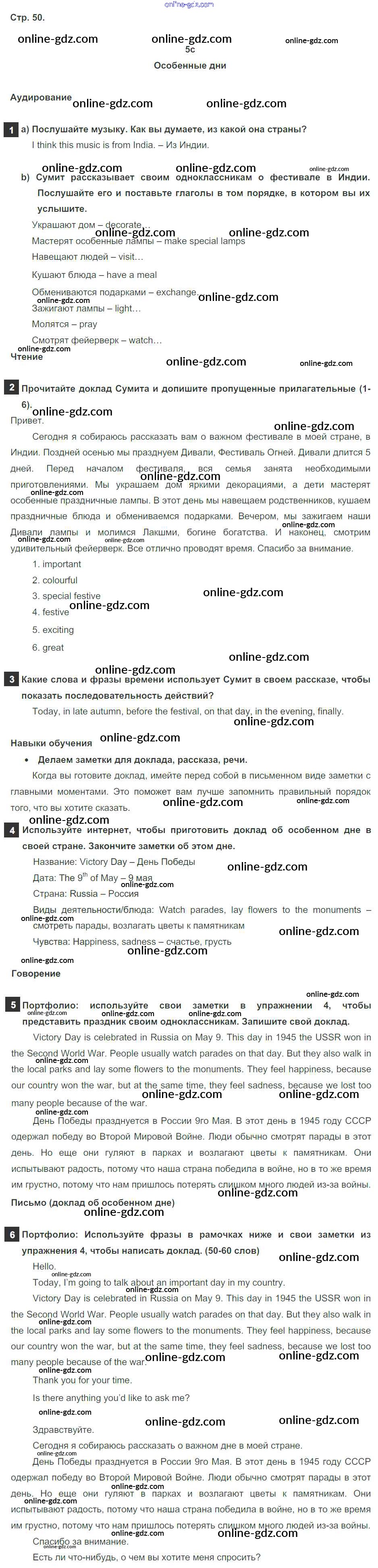 Готовые домашние задания по Английскому языку за 6 класс Учебник Ваулина, Дули Spotlight 2017 - Module 5. Feasts. Страницы 50