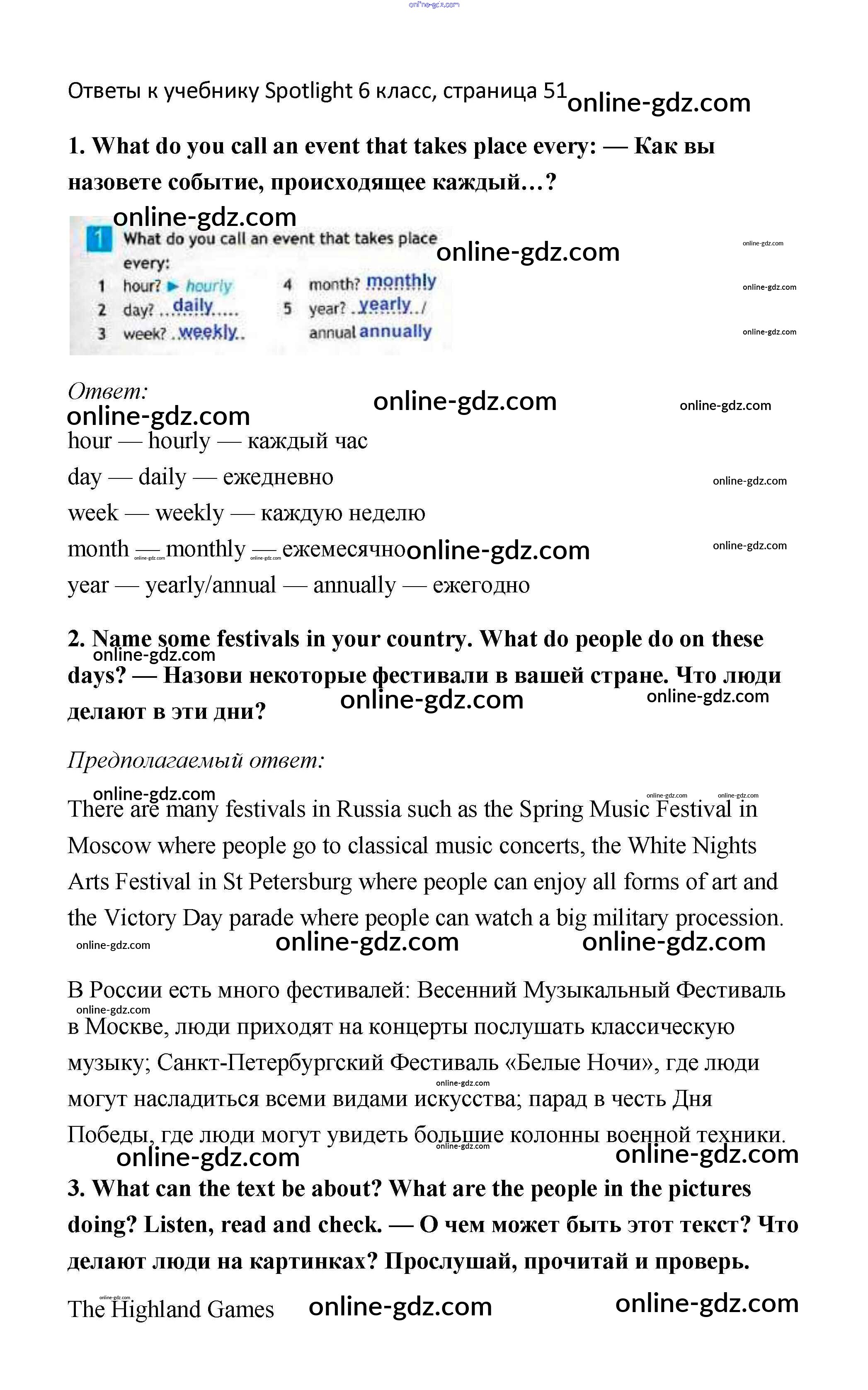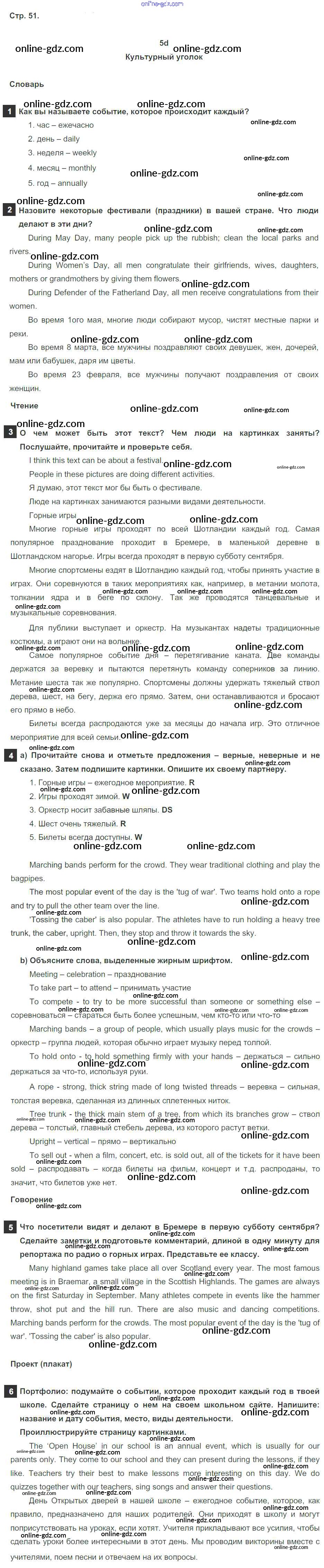 Готовые домашние задания по Английскому языку за 6 класс Учебник Ваулина, Дули Spotlight 2017 - Module 5. Feasts. Страницы 51