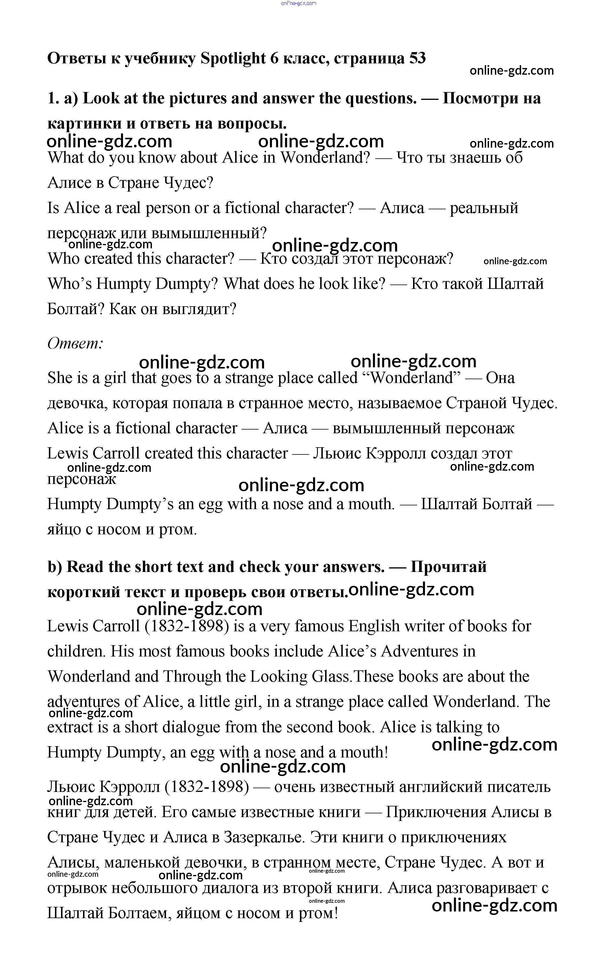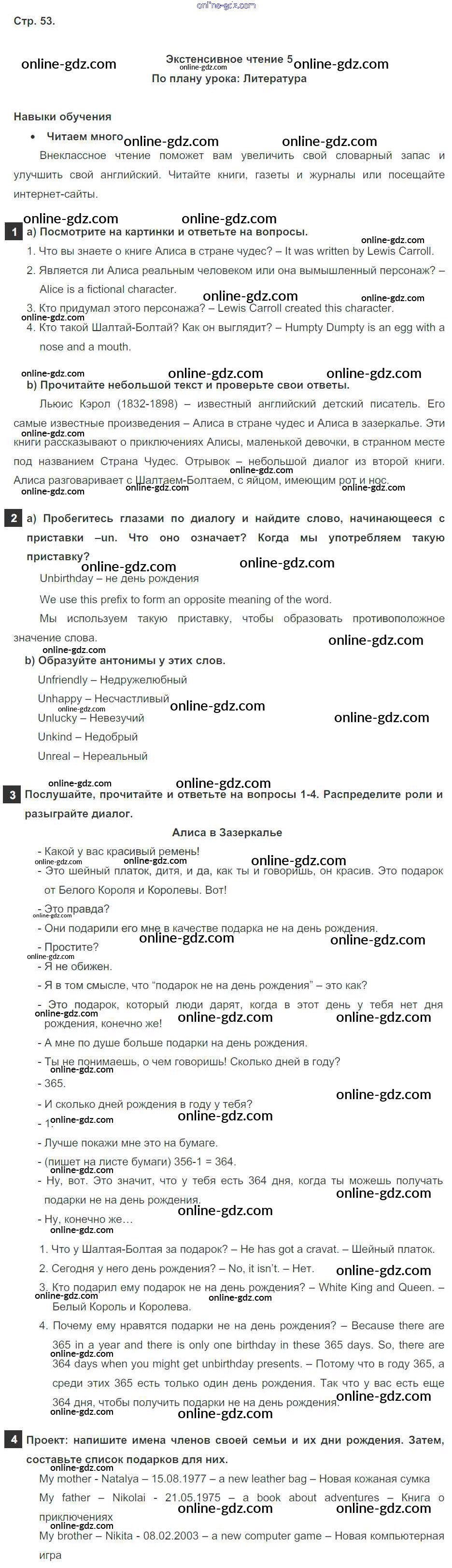 Готовые домашние задания по Английскому языку за 6 класс Учебник Ваулина, Дули Spotlight 2017 - Module 5. Feasts. Страницы 53