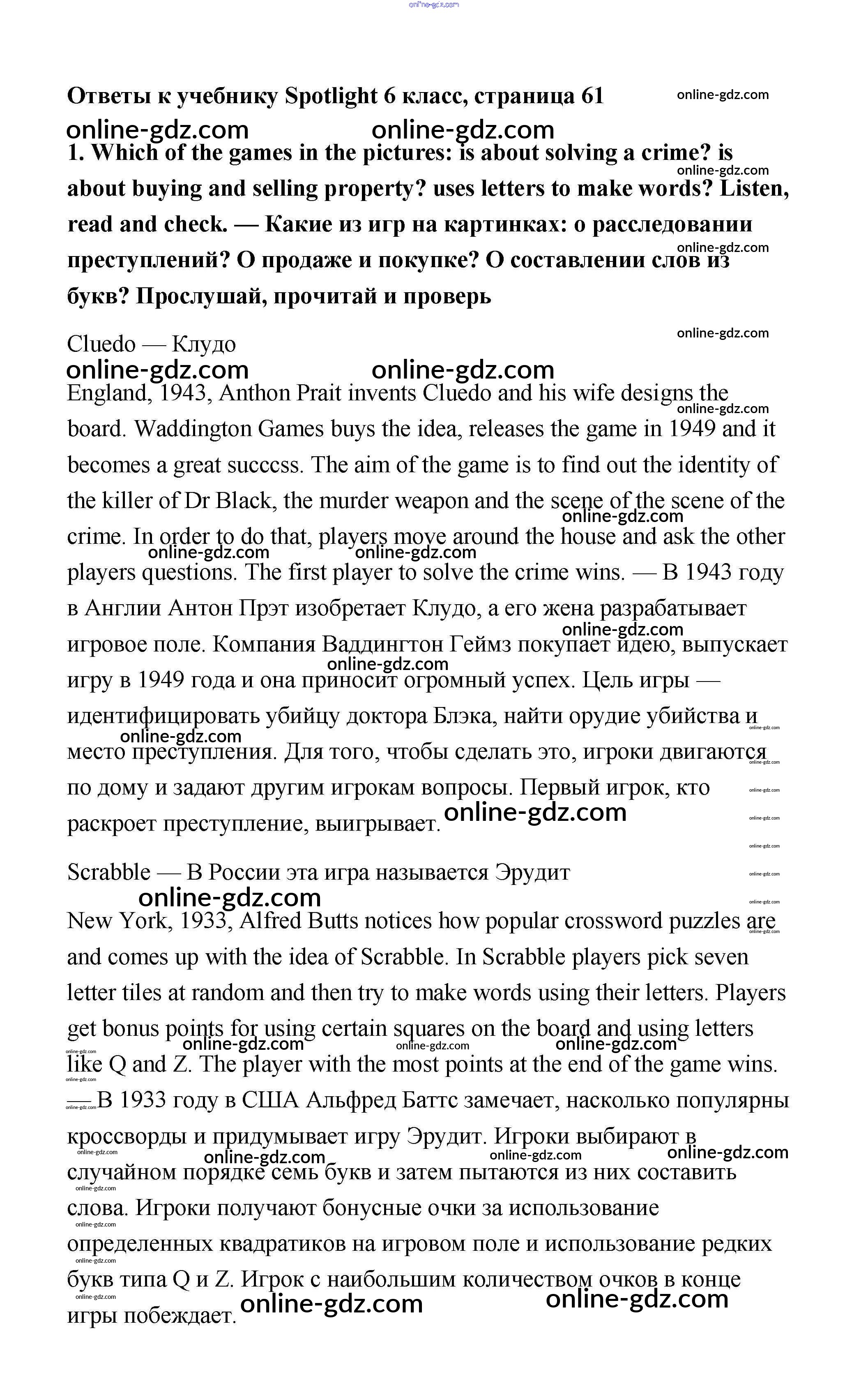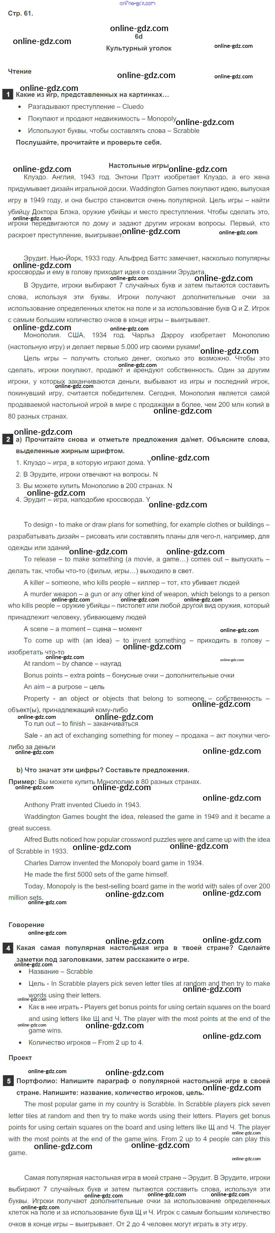 Готовые домашние задания по Английскому языку за 6 класс Учебник Ваулина, Дули Spotlight 2017 - Module 6. Leisure activities. Страницы 61