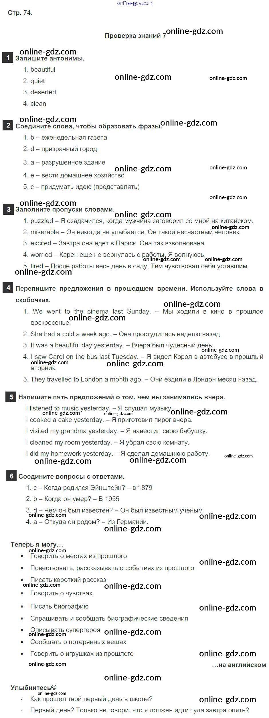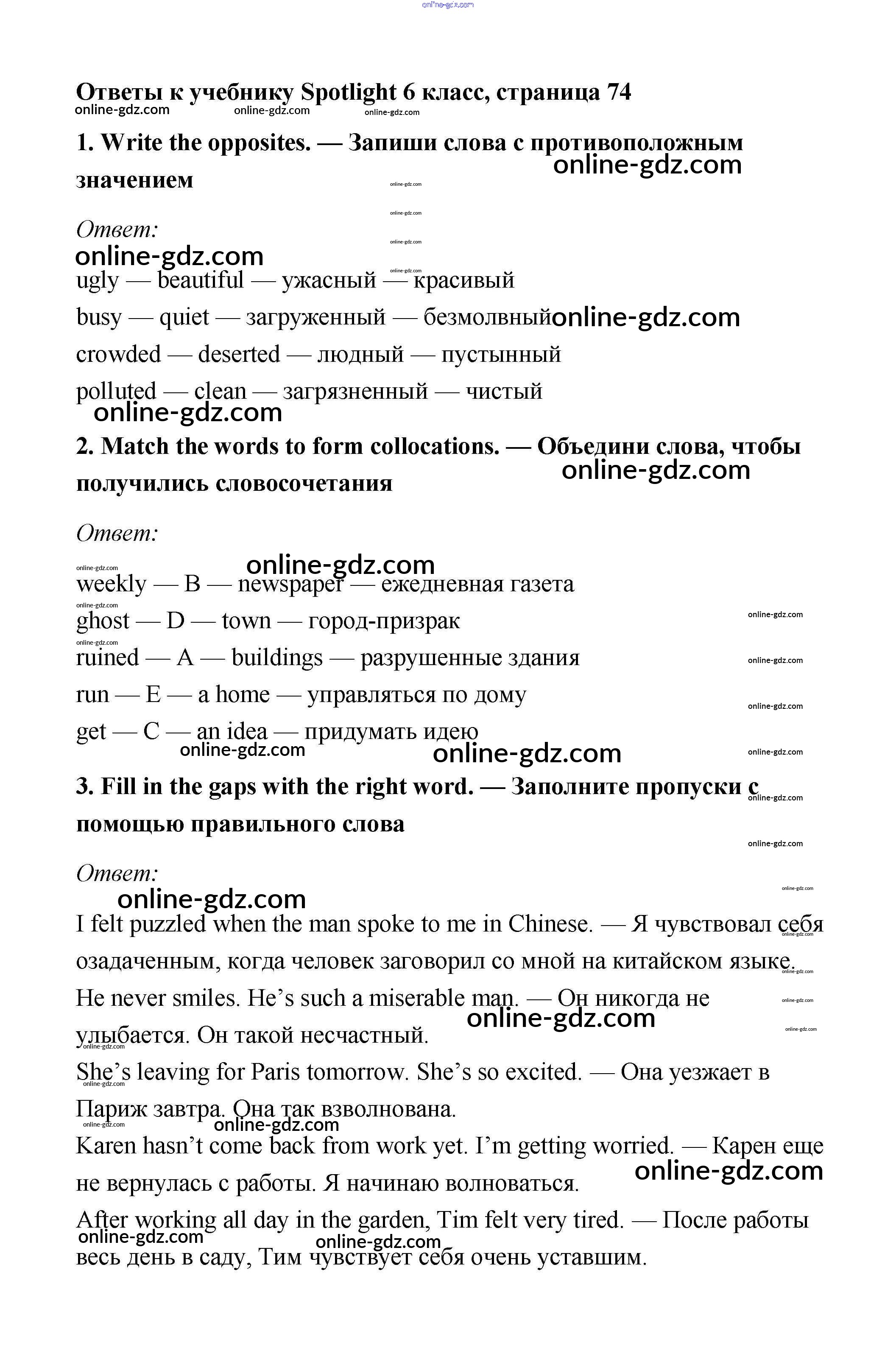 Готовые домашние задания по Английскому языку за 6 класс Учебник Ваулина, Дули Spotlight 2017 - Module 7. Now & then. Страницы 74