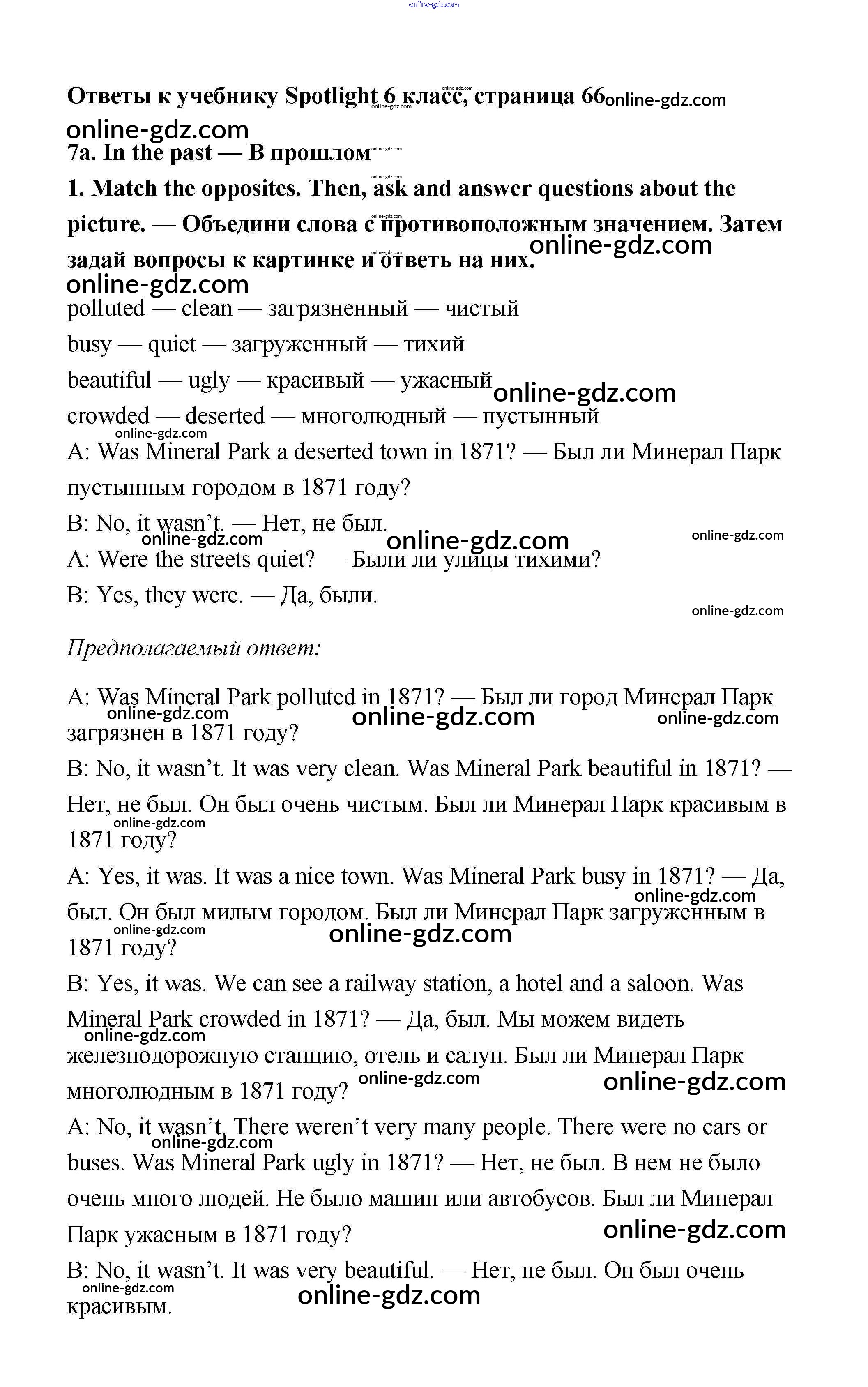 Готовые домашние задания по Английскому языку за 6 класс Учебник Ваулина, Дули Spotlight 2017 - Module 7. Now & then. Страницы 66
