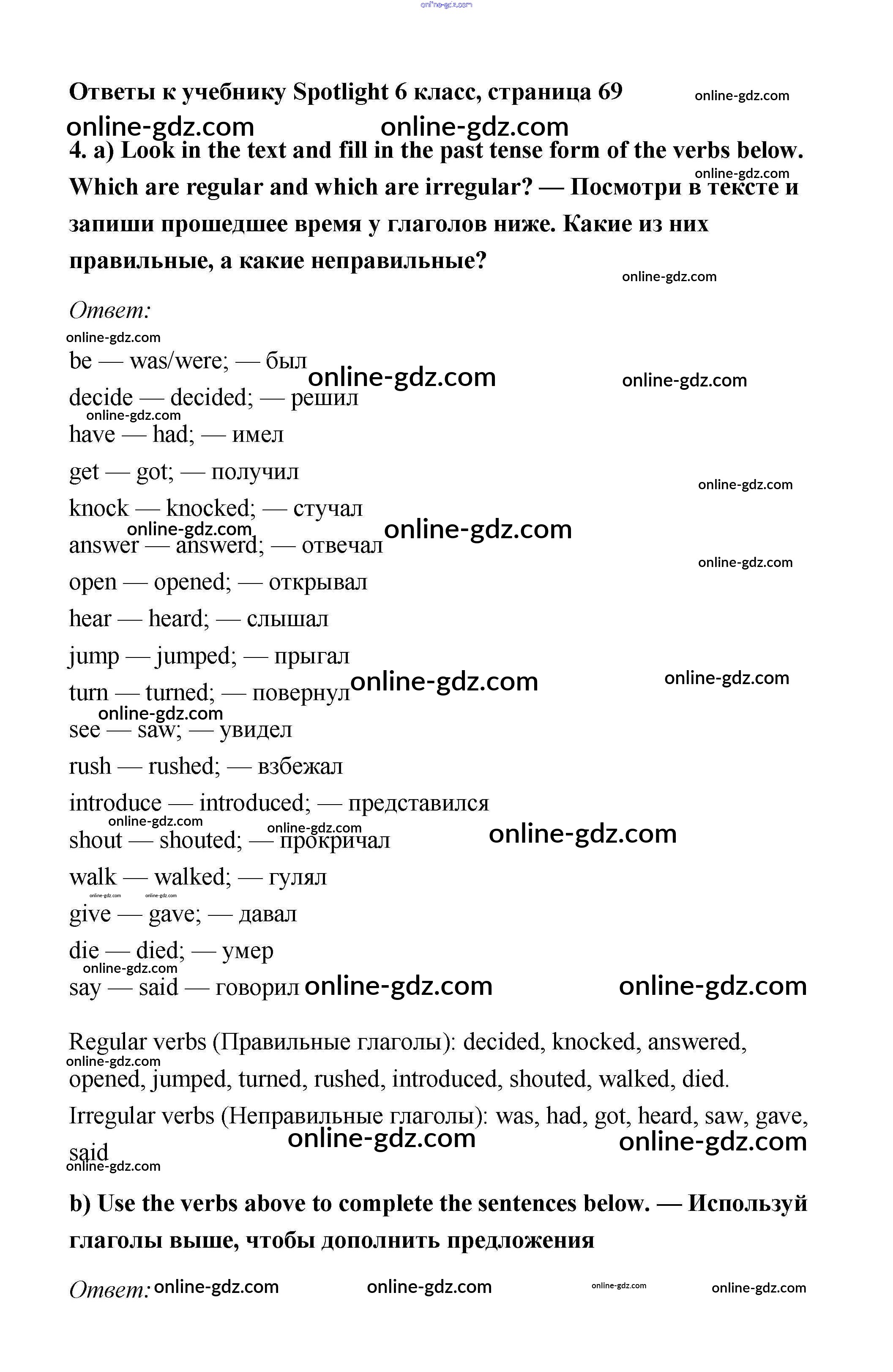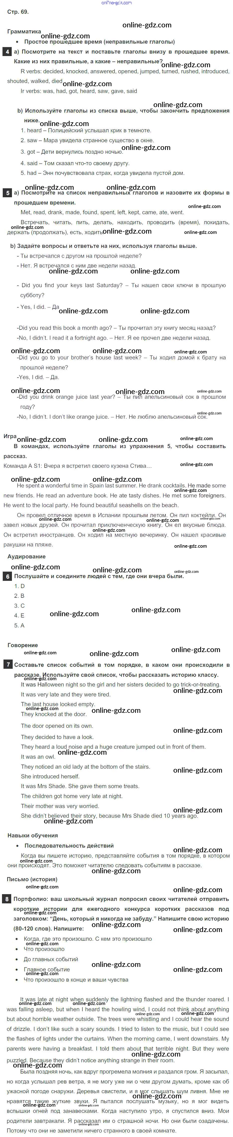 Готовые домашние задания по Английскому языку за 6 класс Учебник Ваулина, Дули Spotlight 2017 - Module 7. Now & then. Страницы 69