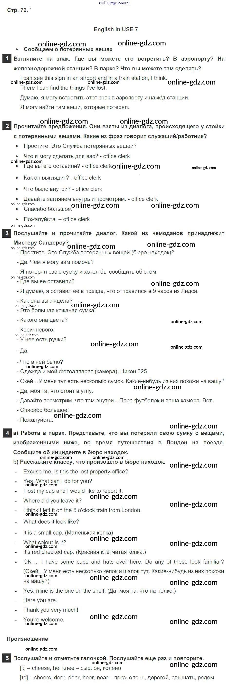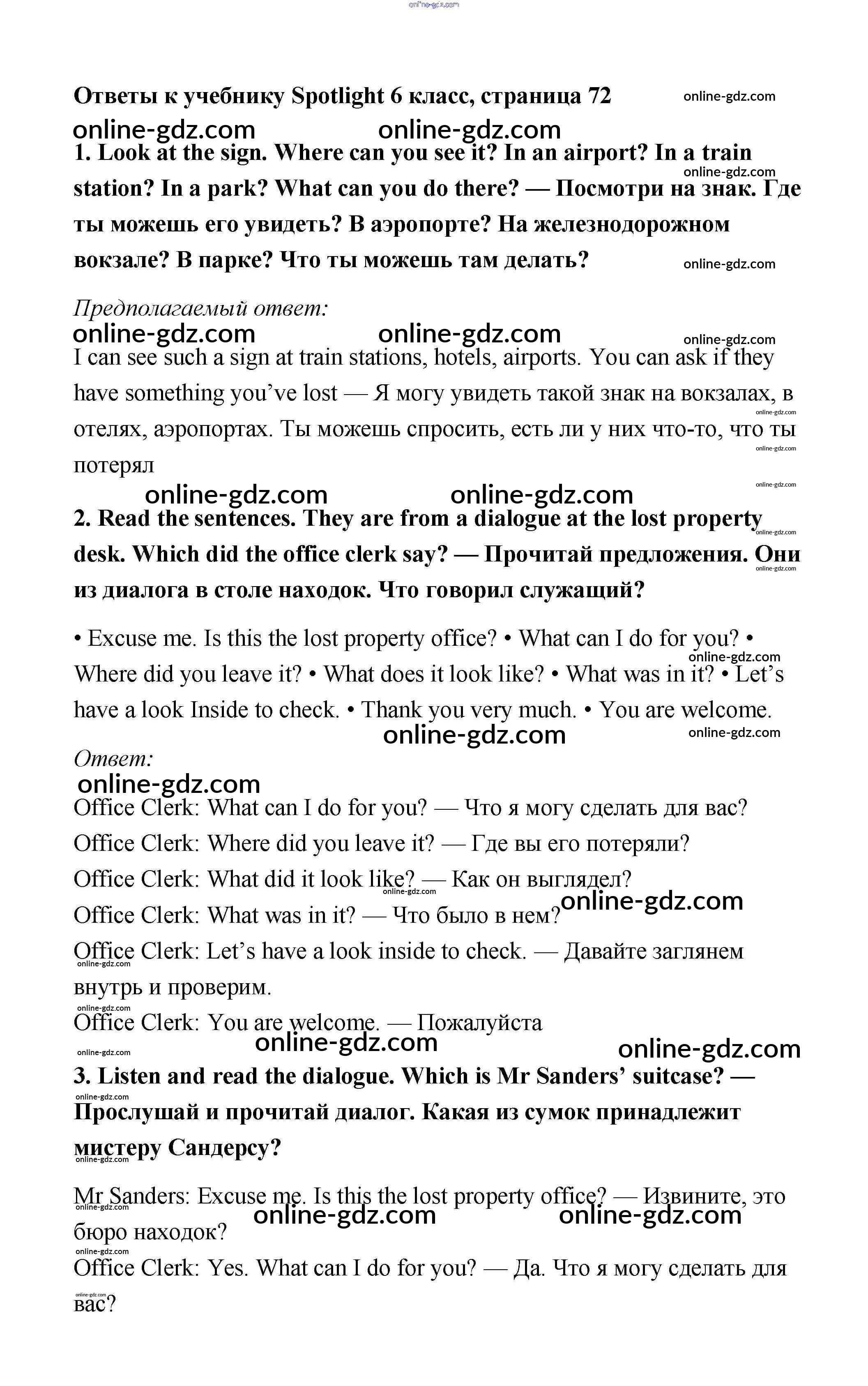 Готовые домашние задания по Английскому языку за 6 класс Учебник Ваулина, Дули Spotlight 2017 - Module 7. Now & then. Страницы 72