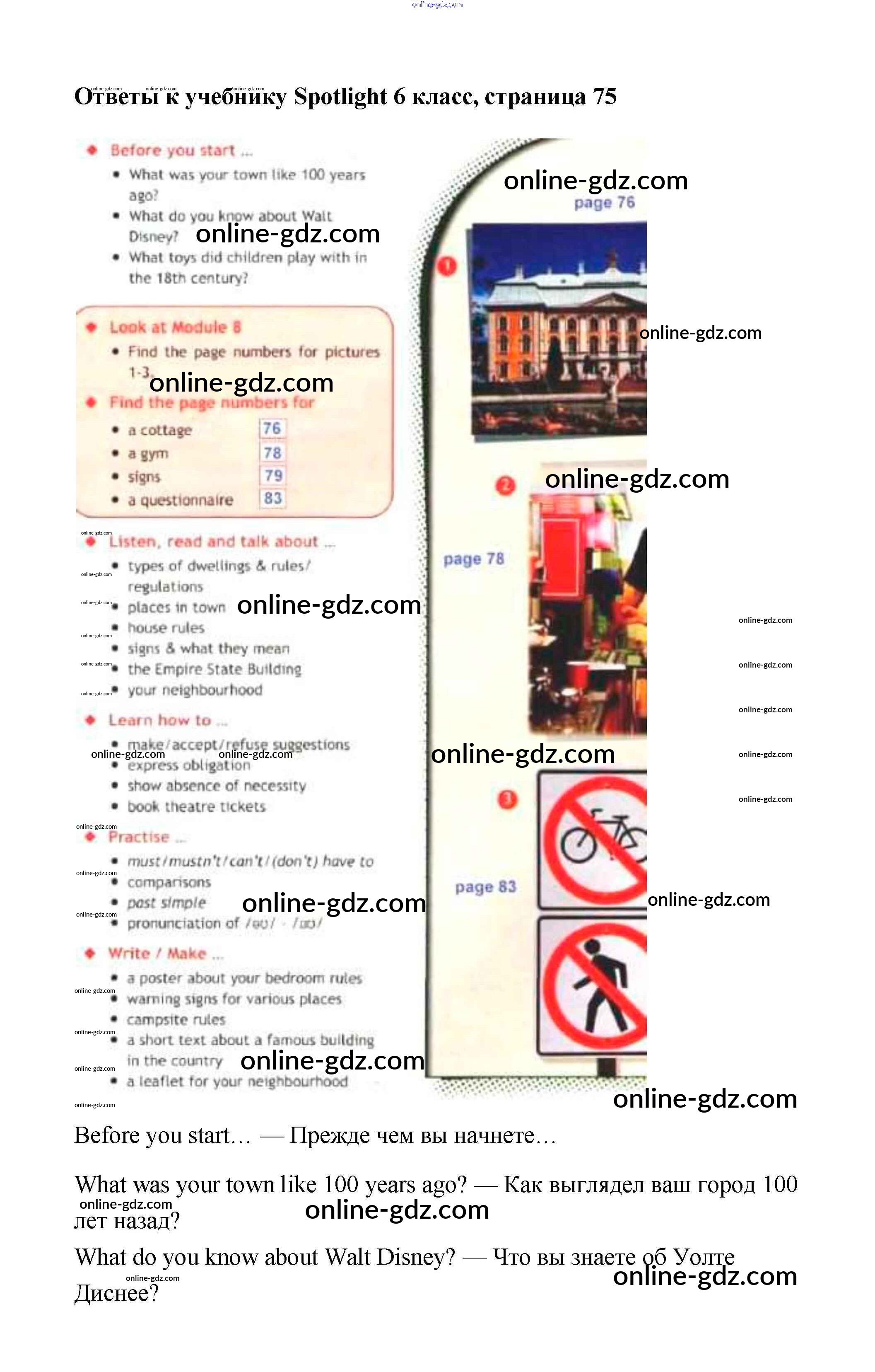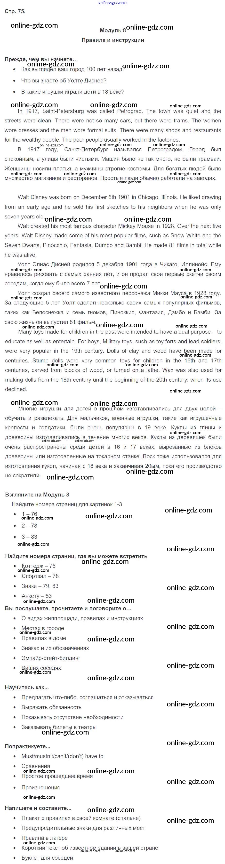 Готовые домашние задания по Английскому языку за 6 класс Учебник Ваулина, Дули Spotlight 2017 - Module 8. Rules & Regulations. Страницы 75