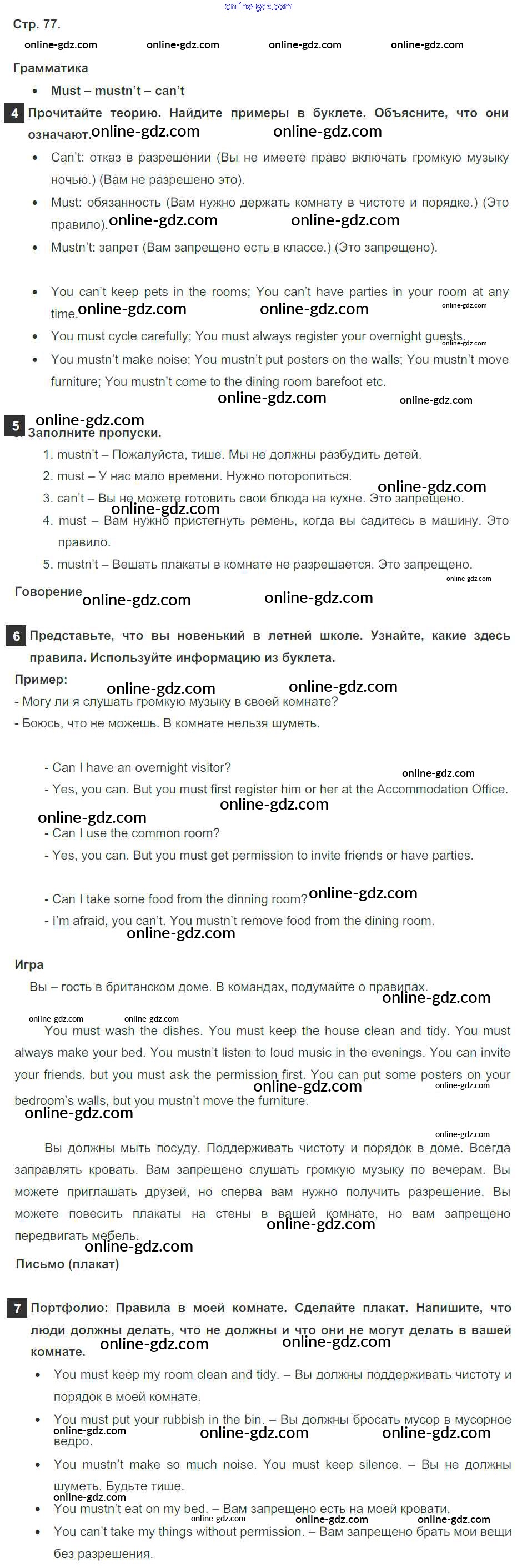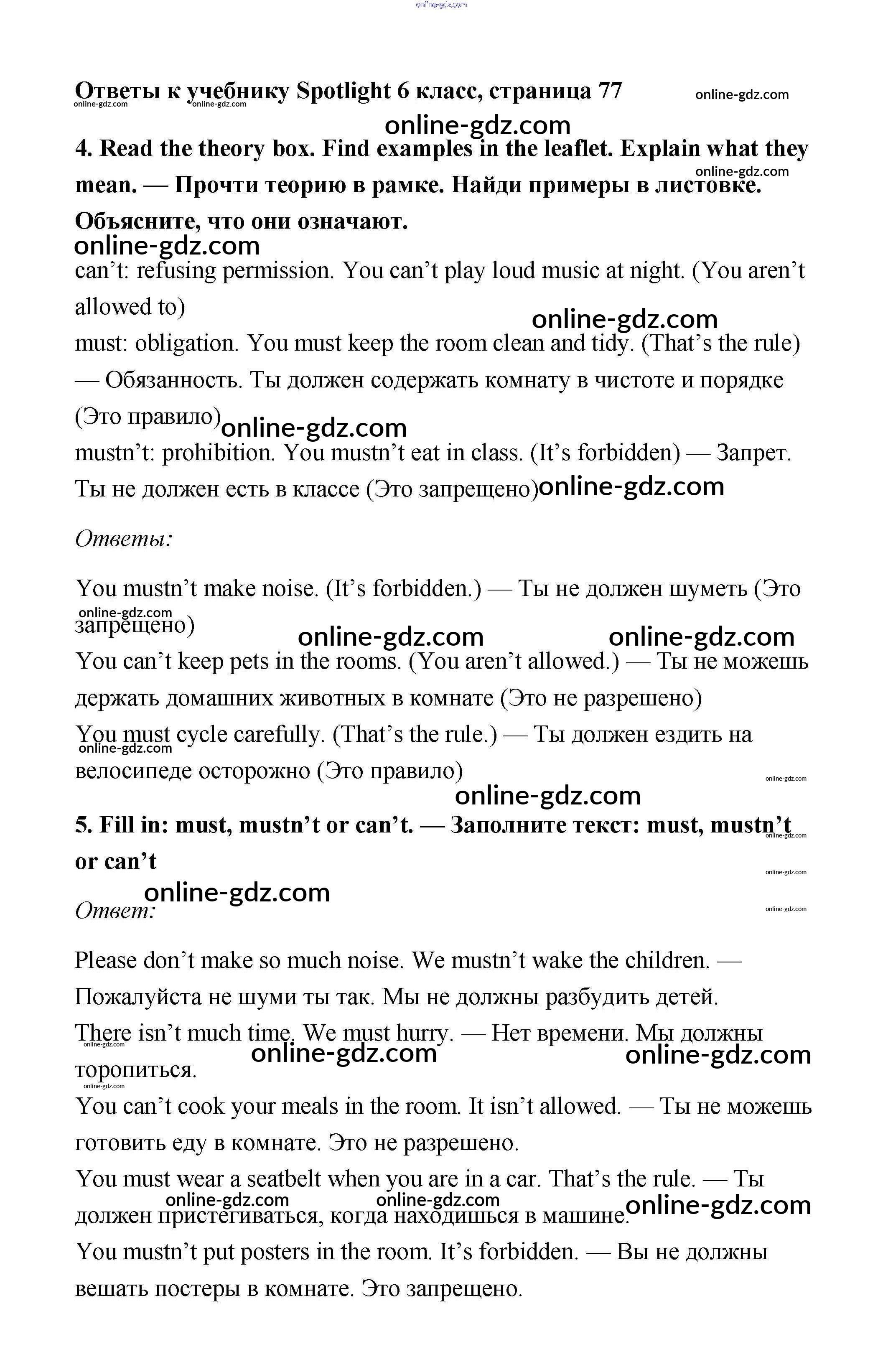 Готовые домашние задания по Английскому языку за 6 класс Учебник Ваулина, Дули Spotlight 2017 - Module 8. Rules & Regulations. Страницы 77