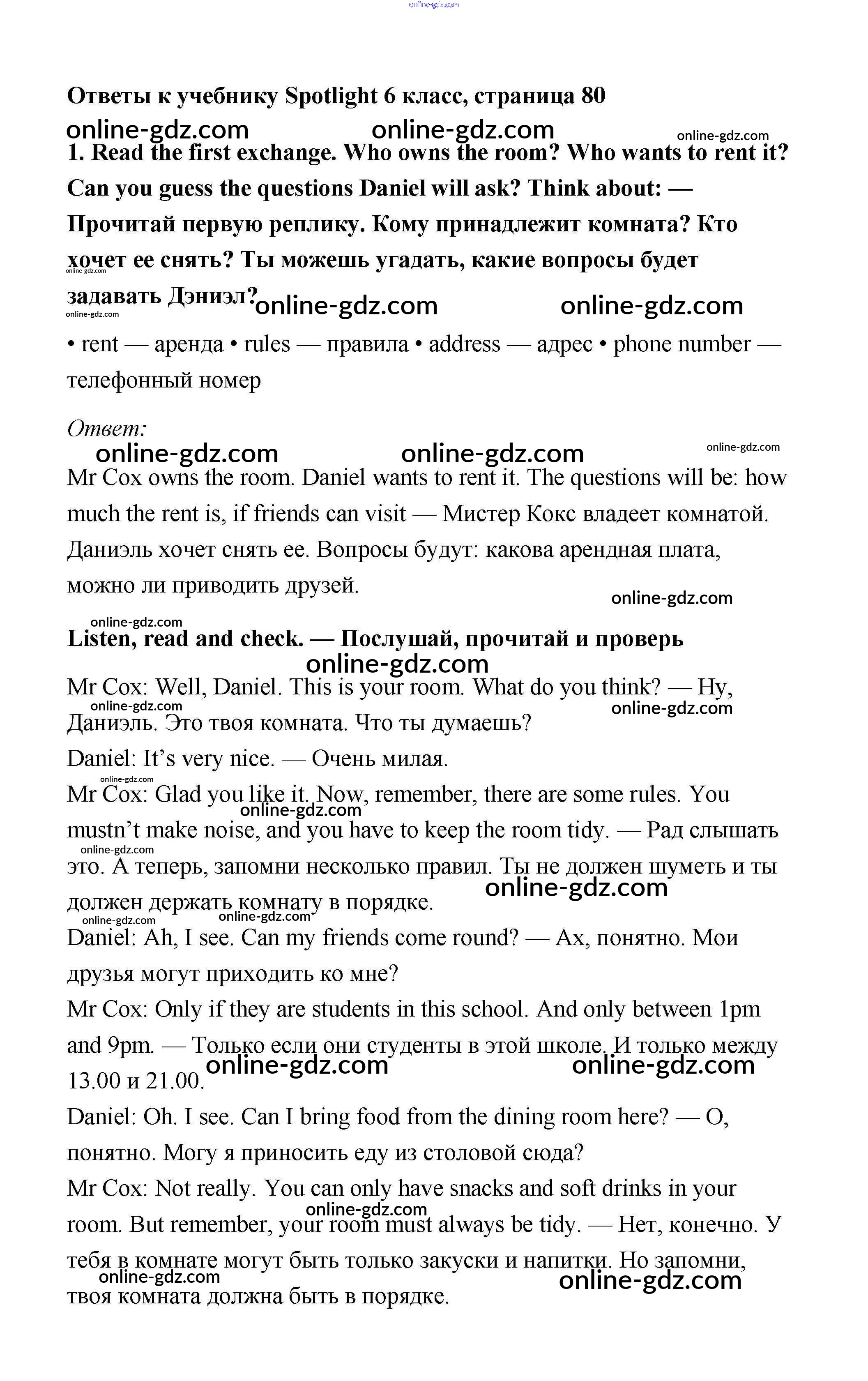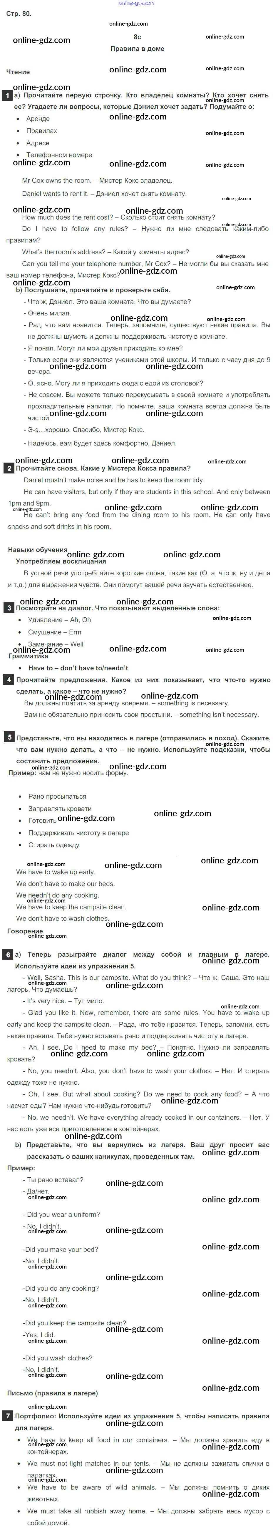 Готовые домашние задания по Английскому языку за 6 класс Учебник Ваулина, Дули Spotlight 2017 - Module 8. Rules & Regulations. Страницы 80
