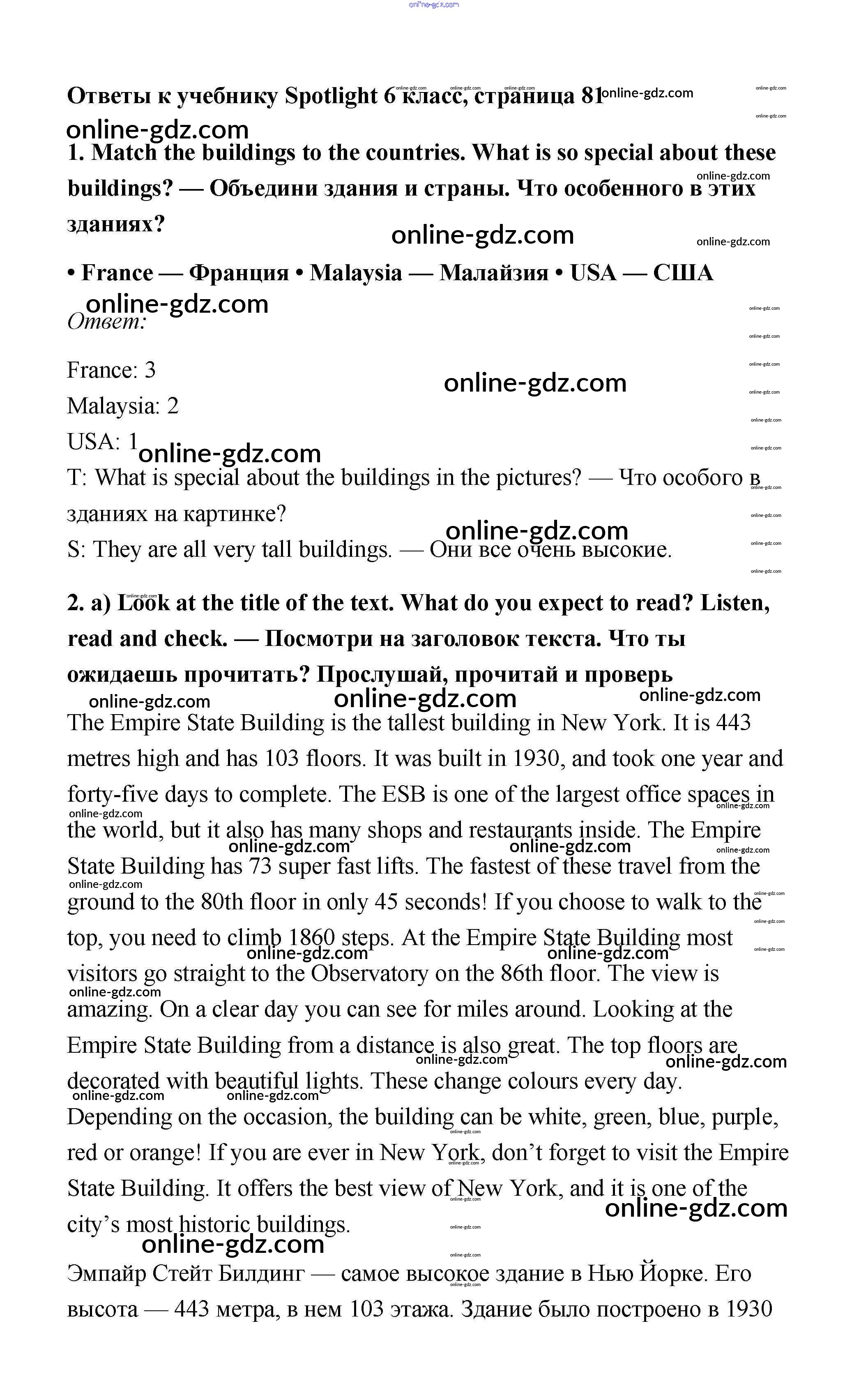 Готовые домашние задания по Английскому языку за 6 класс Учебник Ваулина, Дули Spotlight 2017 - Module 8. Rules & Regulations. Страницы 81