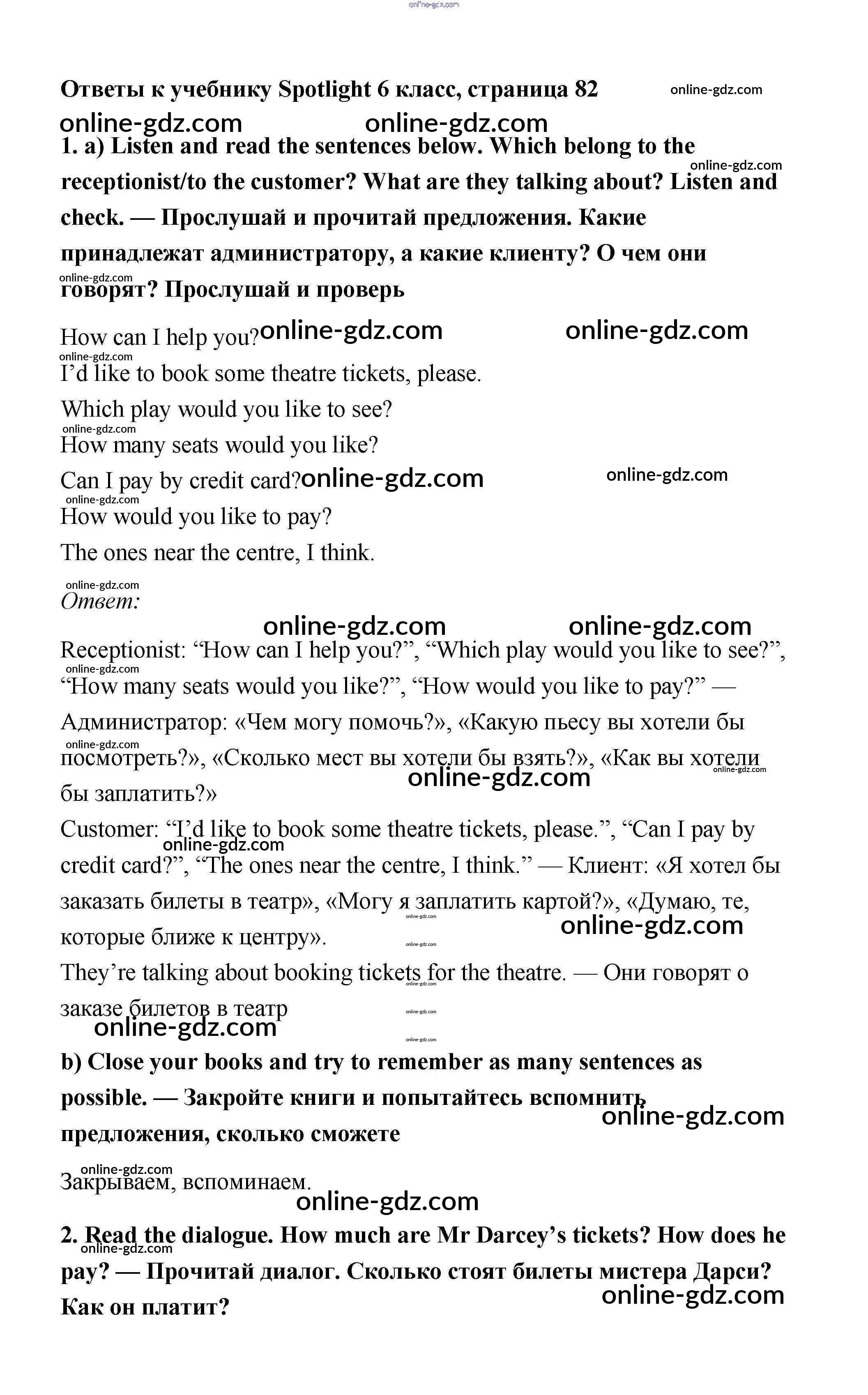 Готовые домашние задания по Английскому языку за 6 класс Учебник Ваулина, Дули Spotlight 2017 - Module 8. Rules & Regulations. Страницы 82