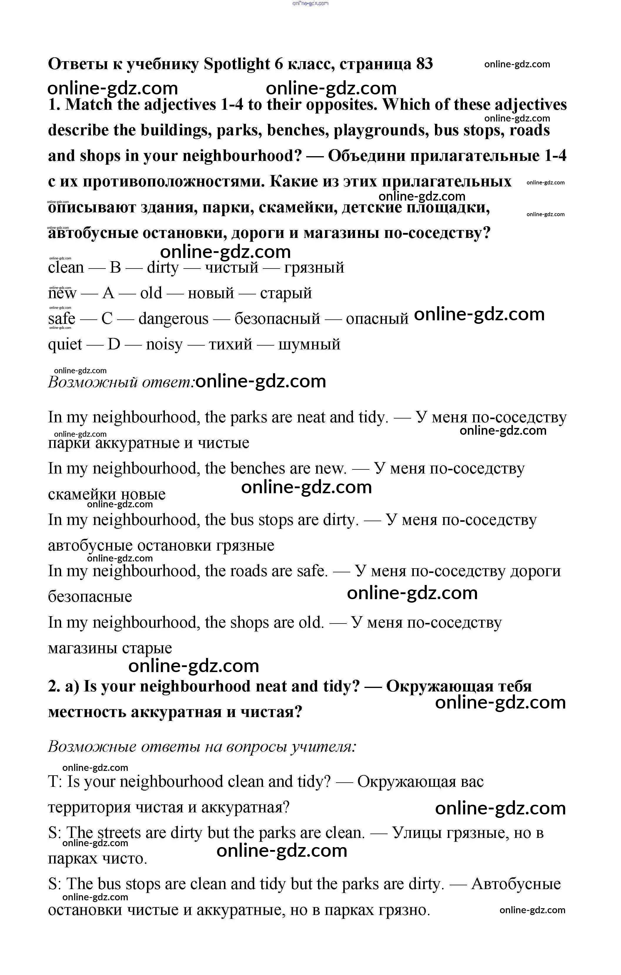 Готовые домашние задания по Английскому языку за 6 класс Учебник Ваулина, Дули Spotlight 2017 - Module 8. Rules & Regulations. Страницы 83