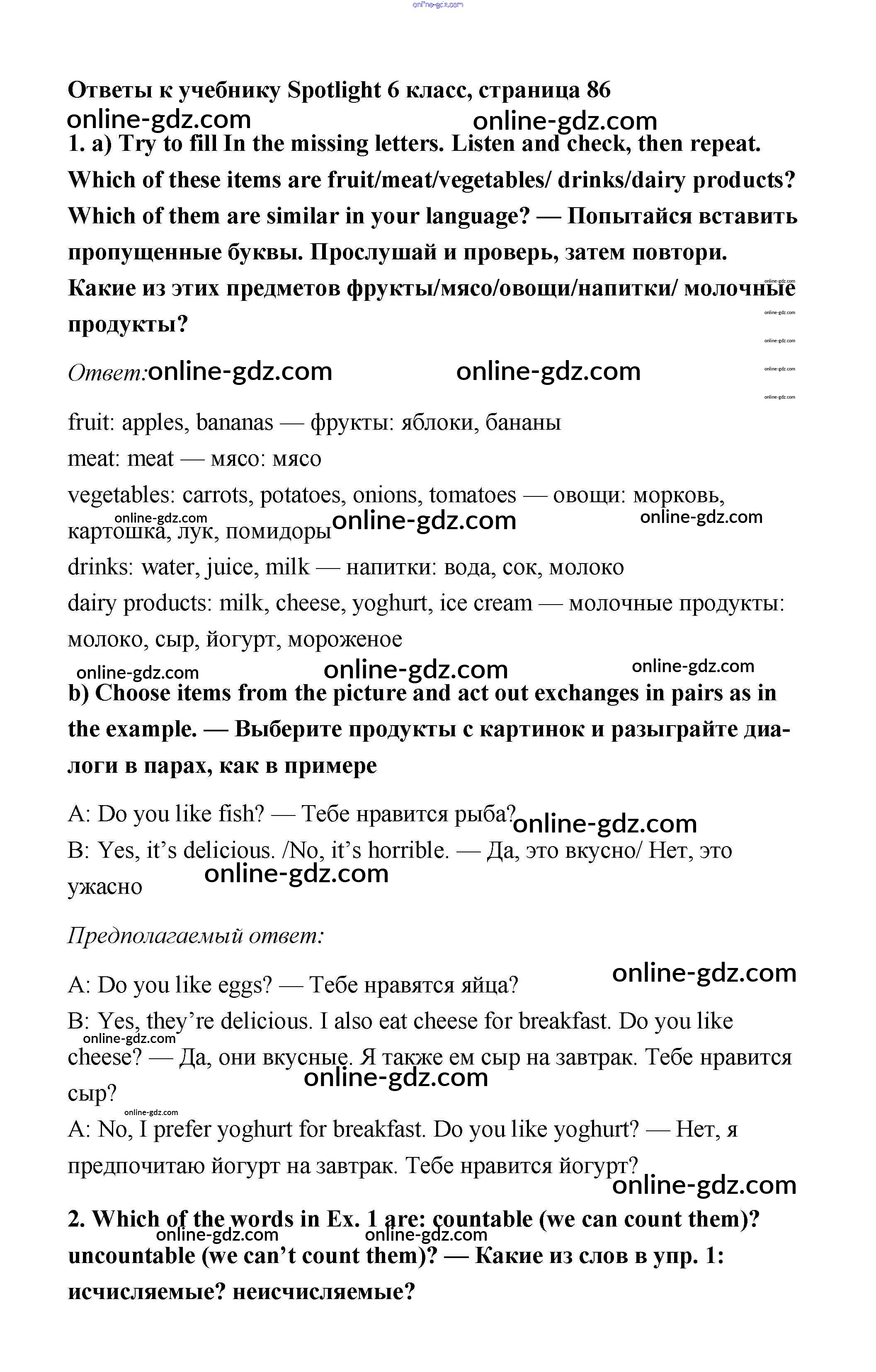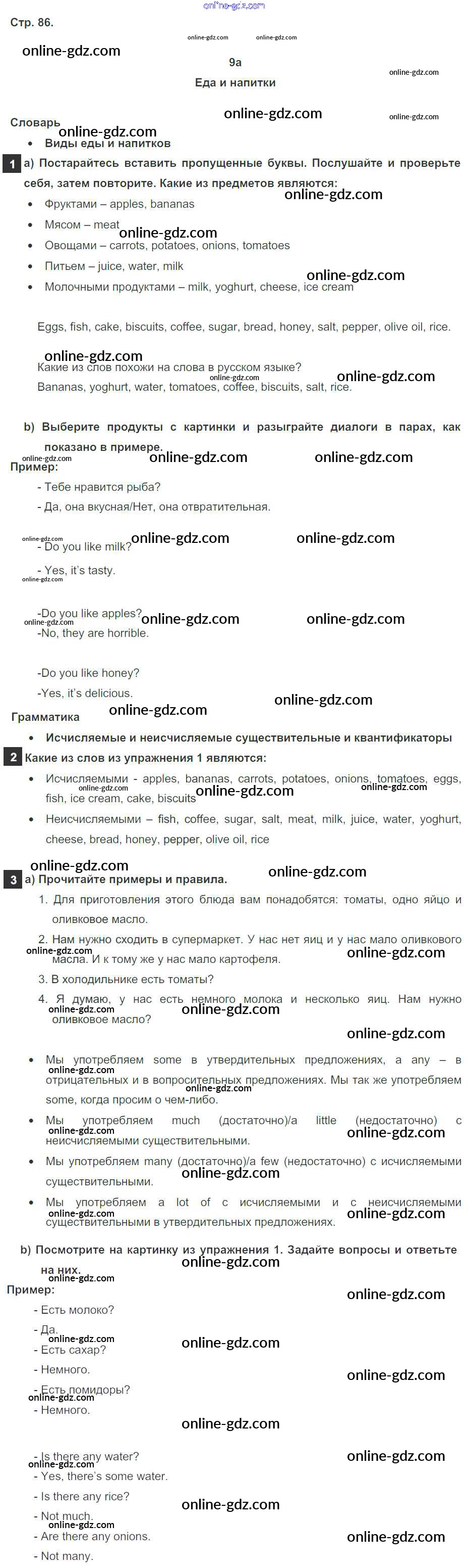 Готовые домашние задания по Английскому языку за 6 класс Учебник Ваулина, Дули Spotlight 2017 - Module 9. Food & Refreshments. Страницы 86