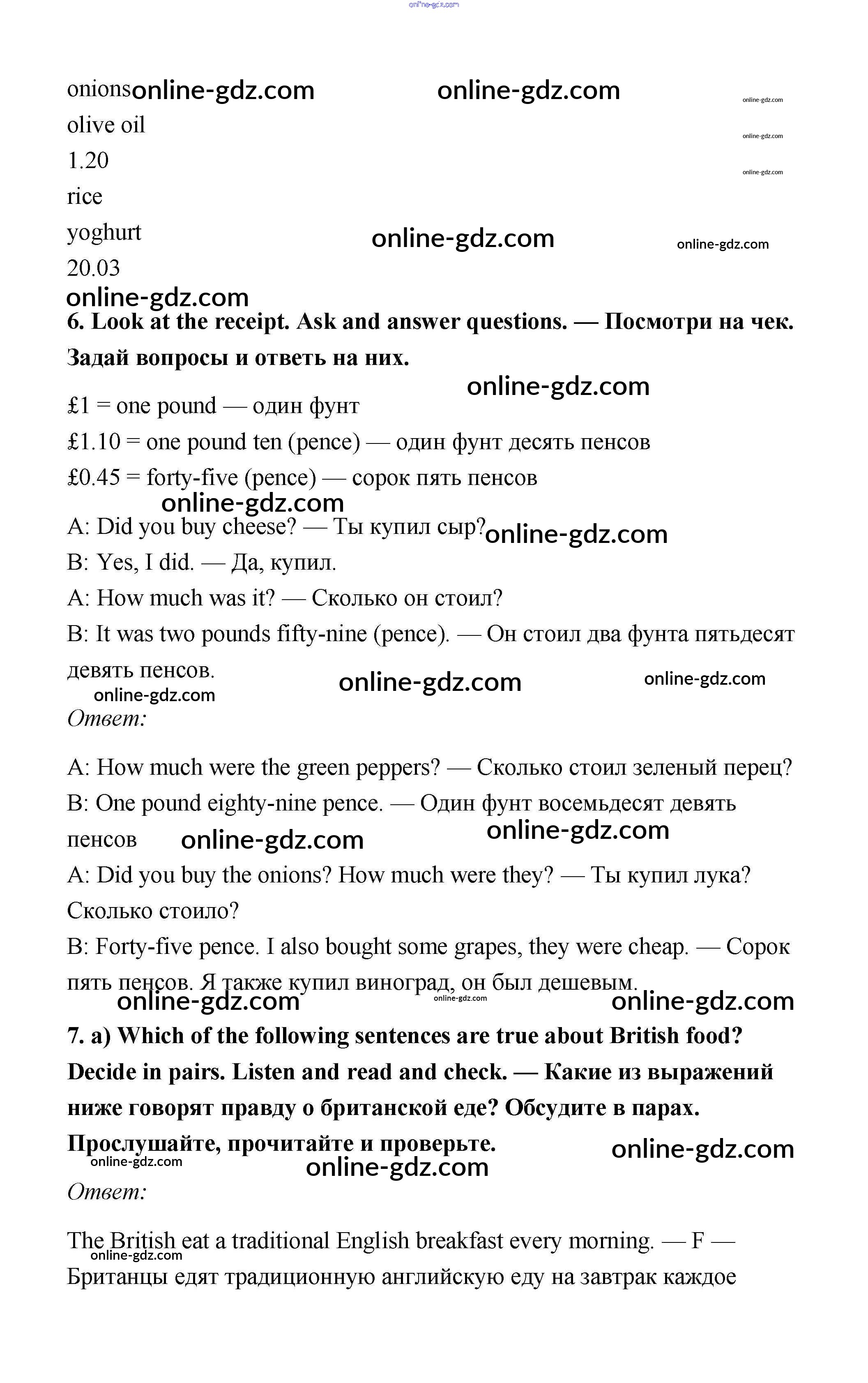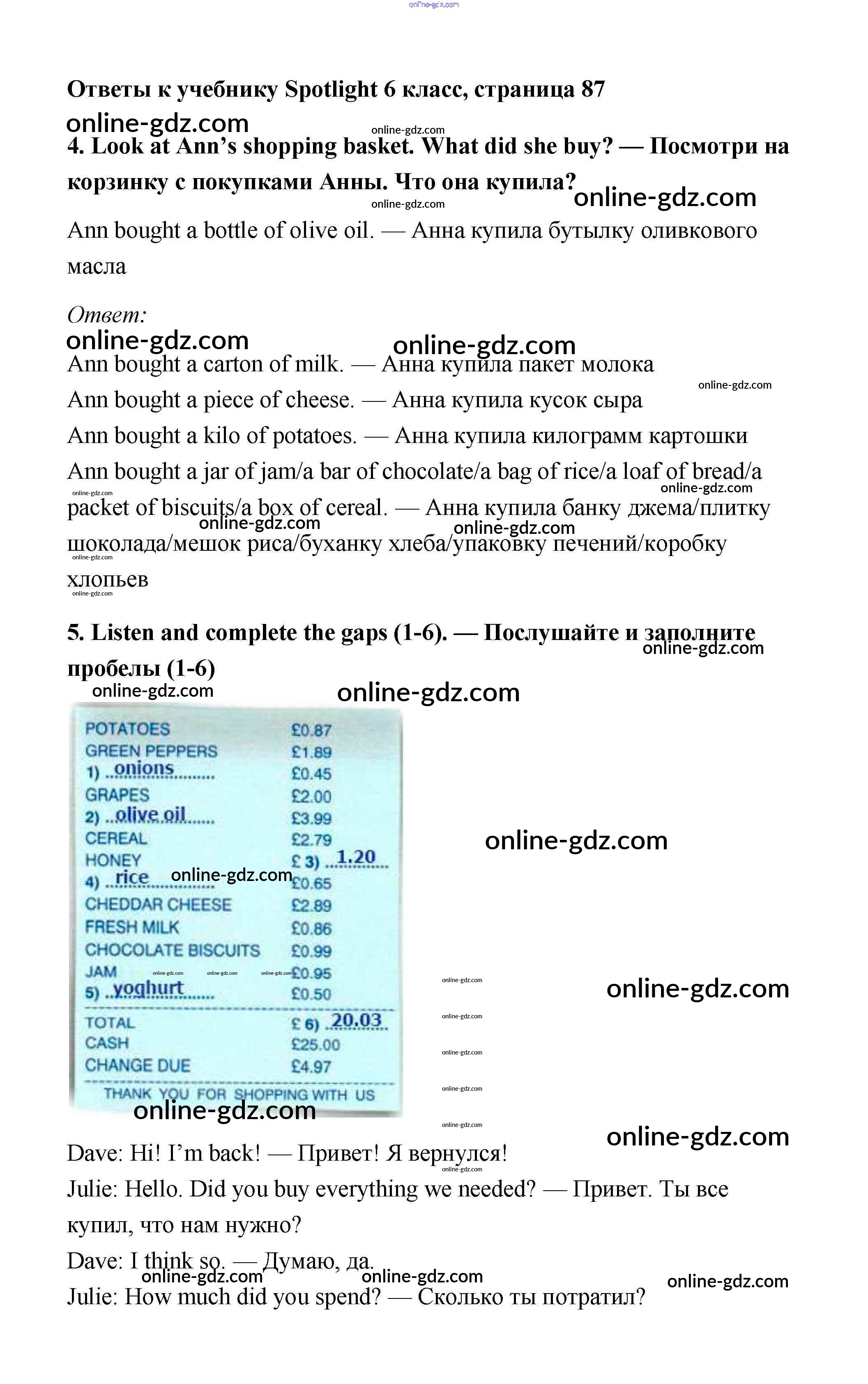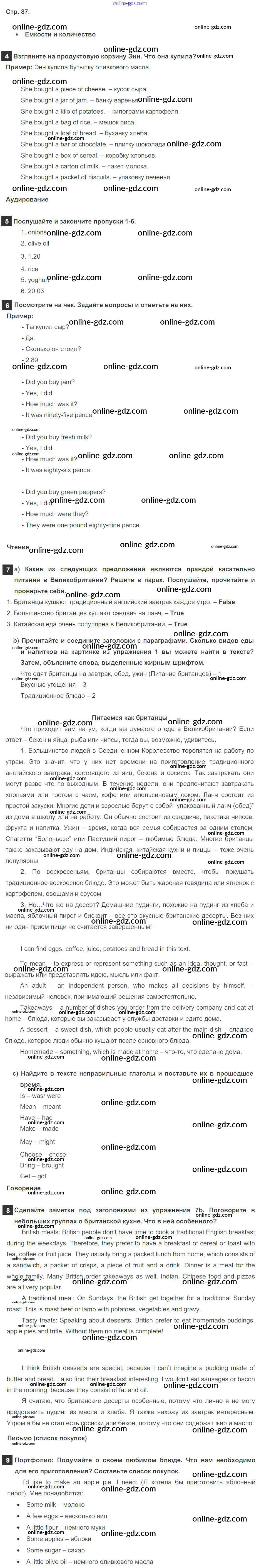 Готовые домашние задания по Английскому языку за 6 класс Учебник Ваулина, Дули Spotlight 2017 - Module 9. Food & Refreshments. Страницы 87