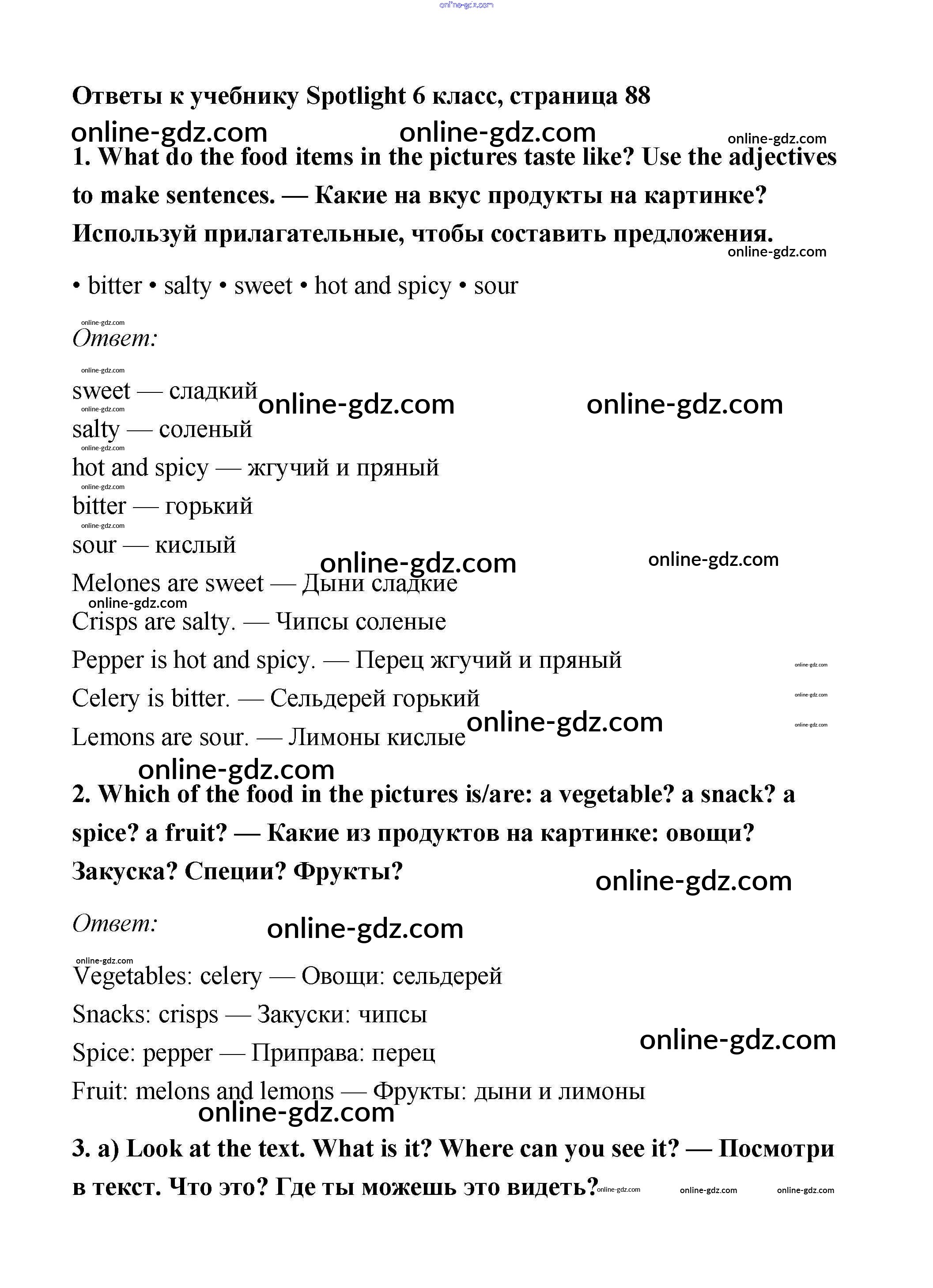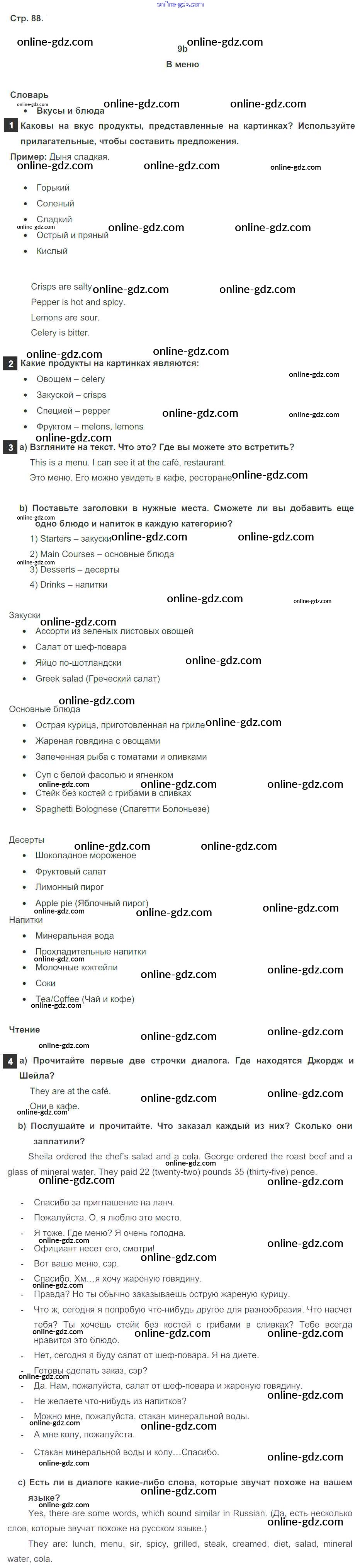 Готовые домашние задания по Английскому языку за 6 класс Учебник Ваулина, Дули Spotlight 2017 - Module 9. Food & Refreshments. Страницы 88