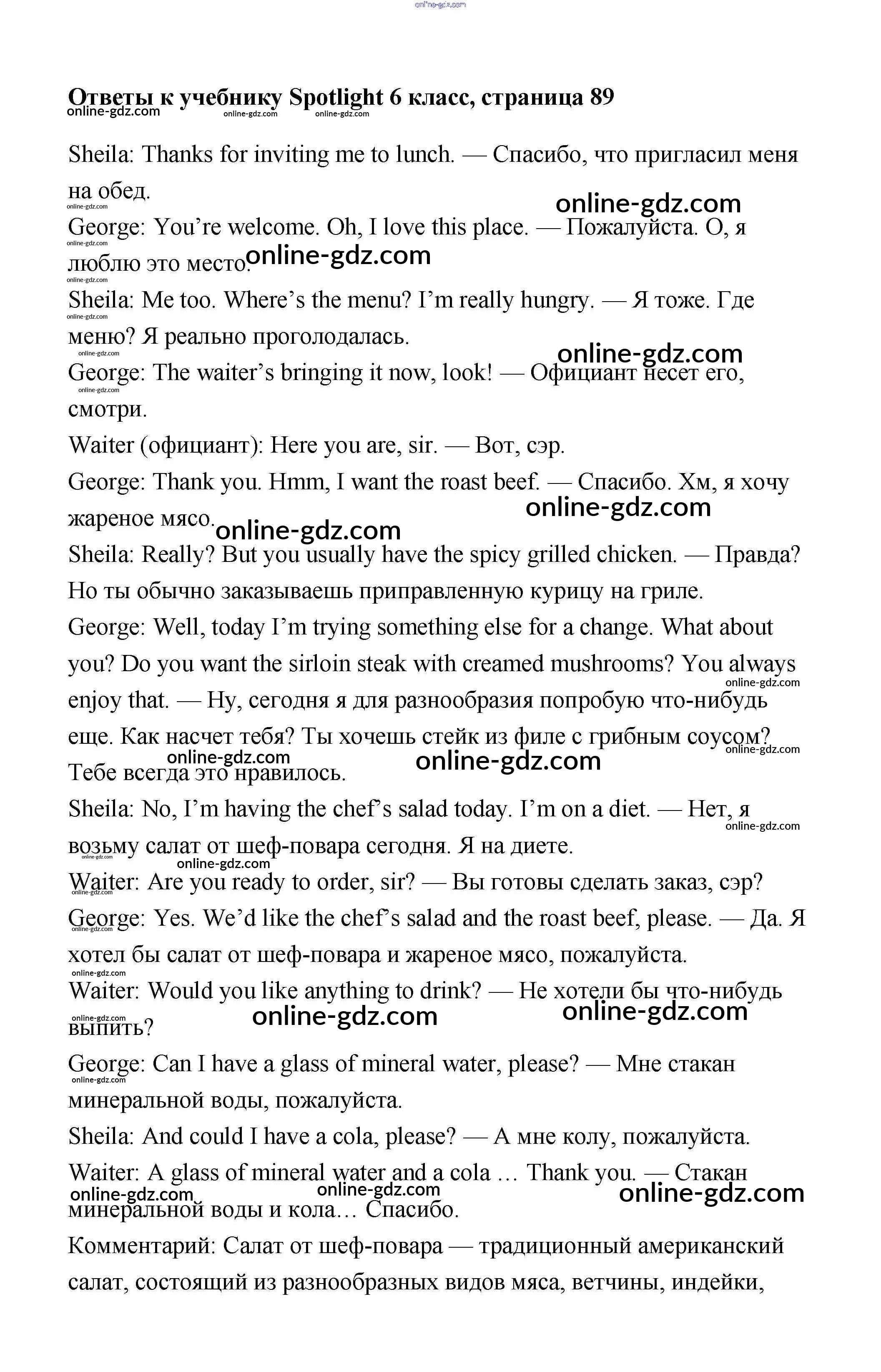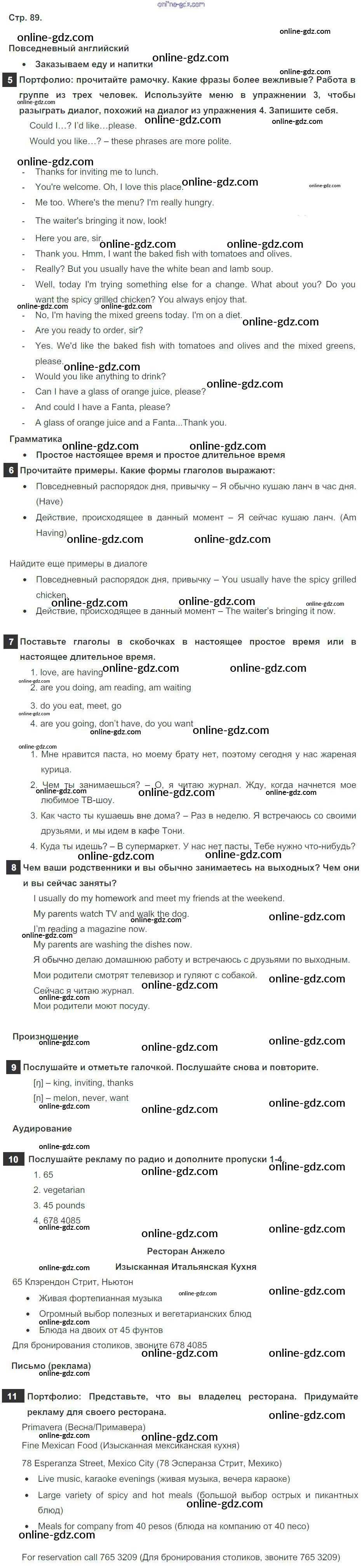 Готовые домашние задания по Английскому языку за 6 класс Учебник Ваулина, Дули Spotlight 2017 - Module 9. Food & Refreshments. Страницы 89