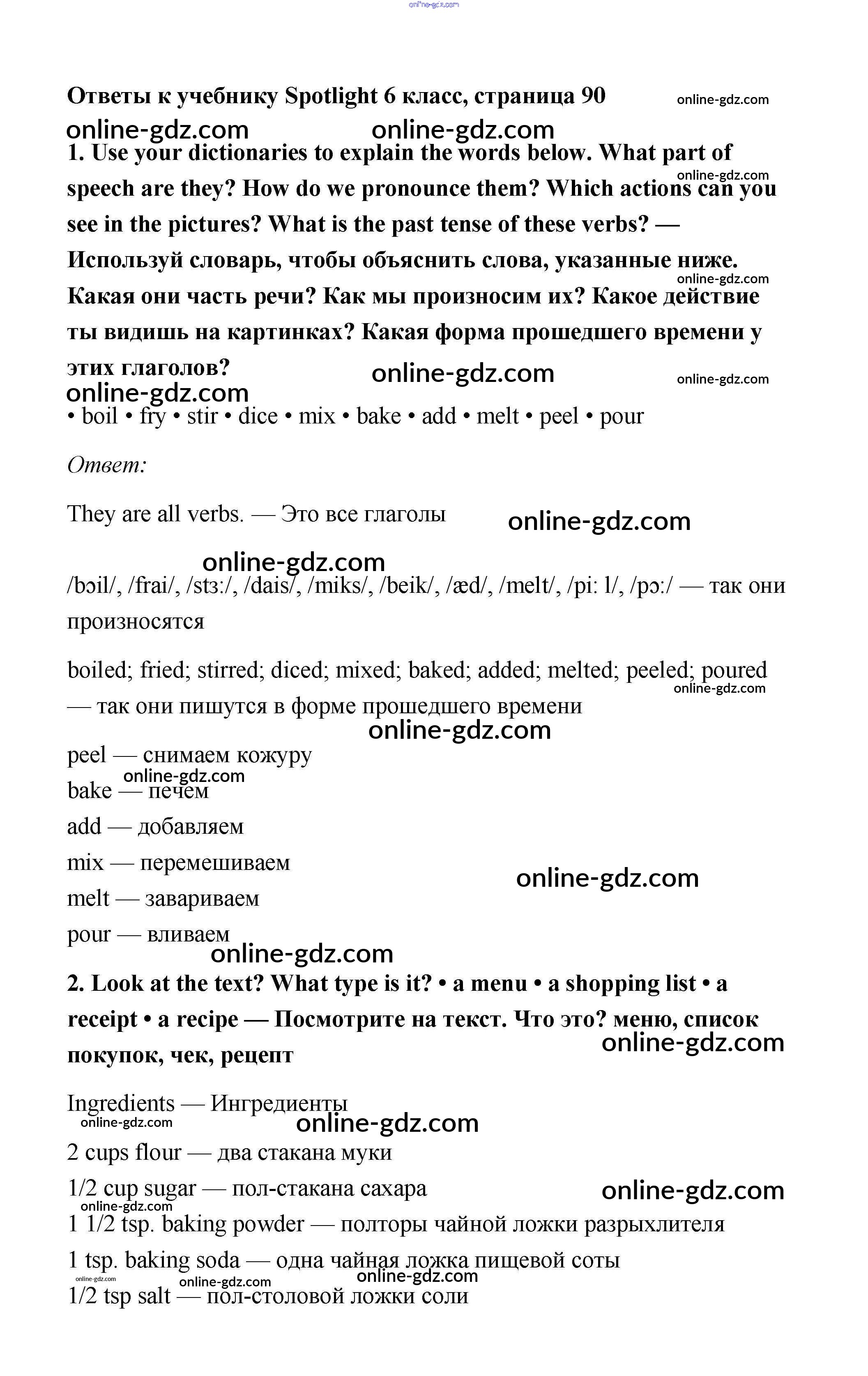 Готовые домашние задания по Английскому языку за 6 класс Учебник Ваулина, Дули Spotlight 2017 - Module 9. Food & Refreshments. Страницы 90