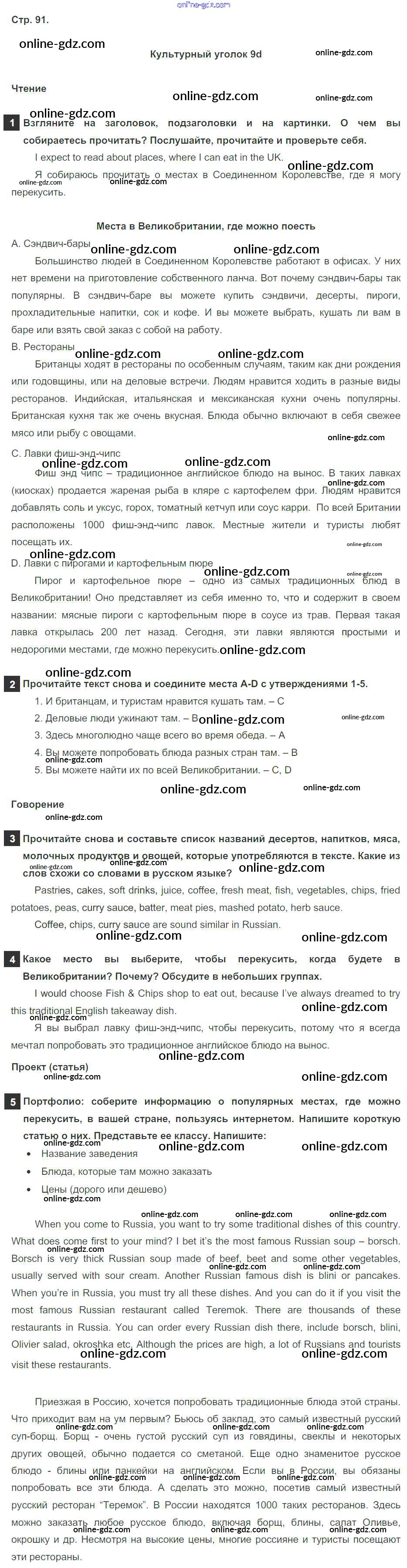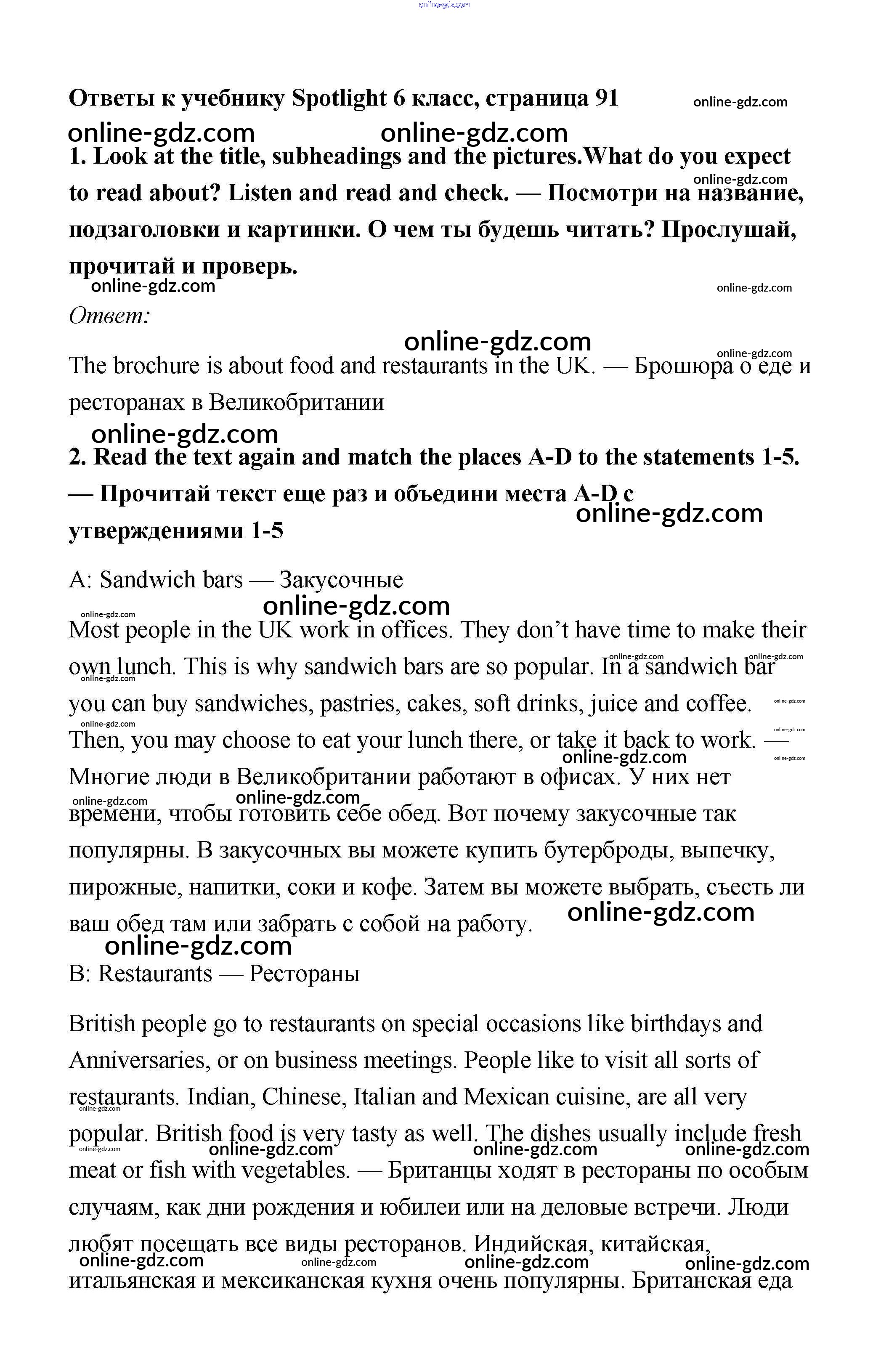 Готовые домашние задания по Английскому языку за 6 класс Учебник Ваулина, Дули Spotlight 2017 - Module 9. Food & Refreshments. Страницы 91