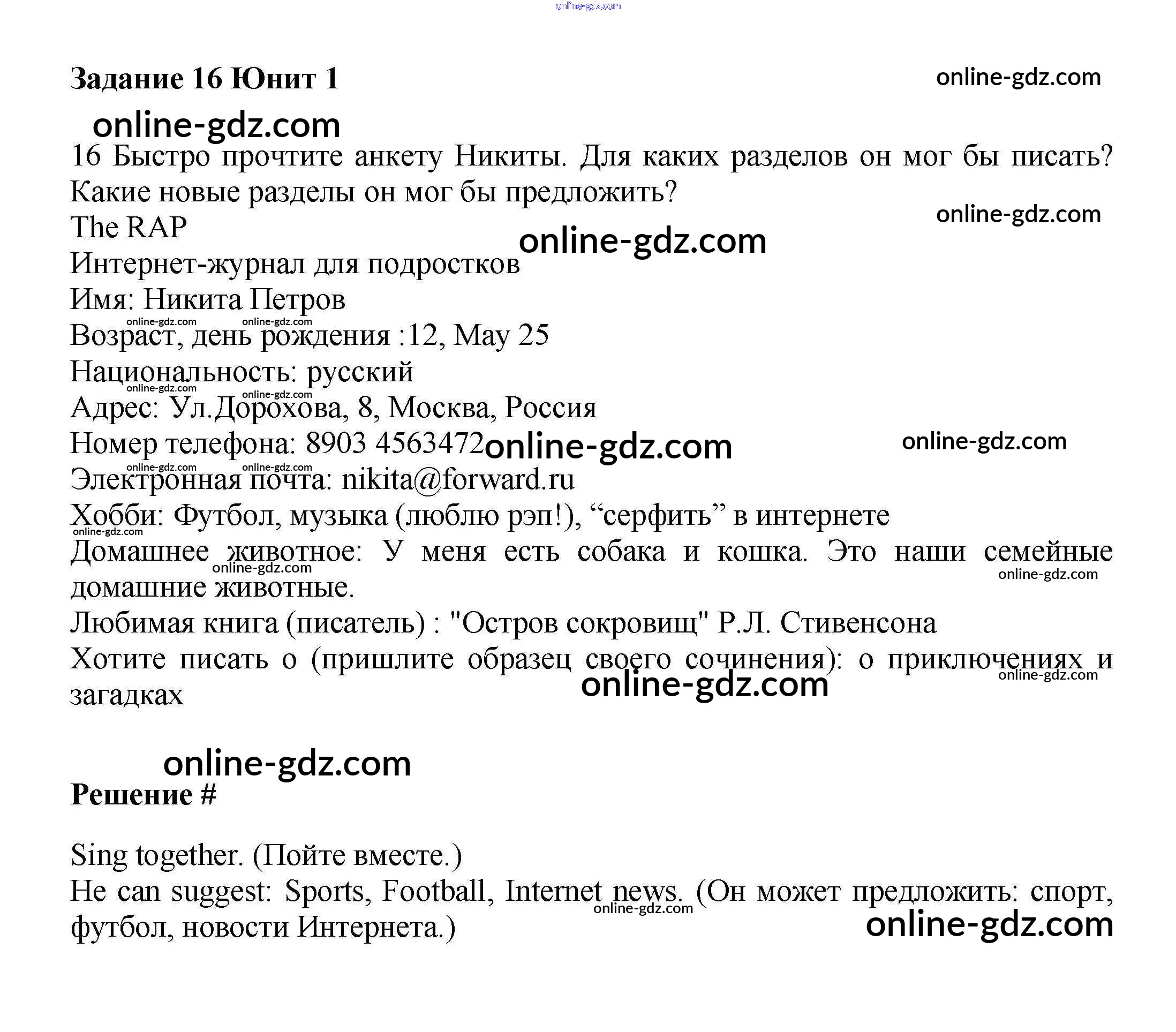 Готовые домашние задания по Английскому языку за 6 класс Учебник Вербицкая, Гаярделли Forward 2017 - Unit 1. Greetings and introductions Часть 1 16