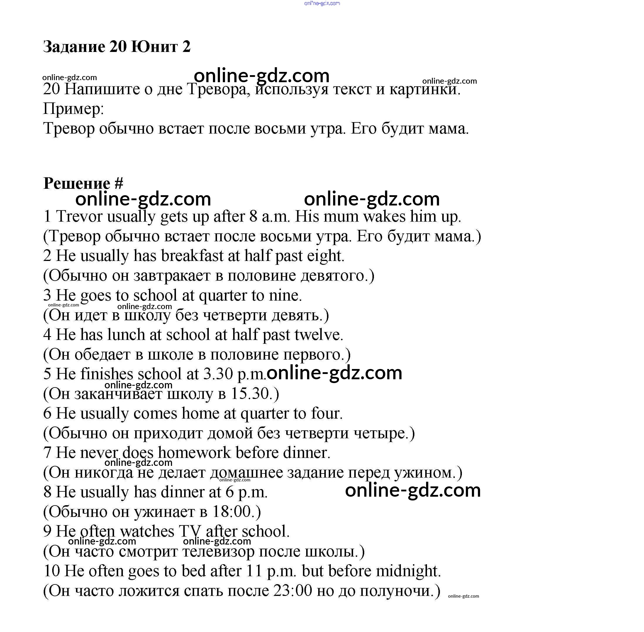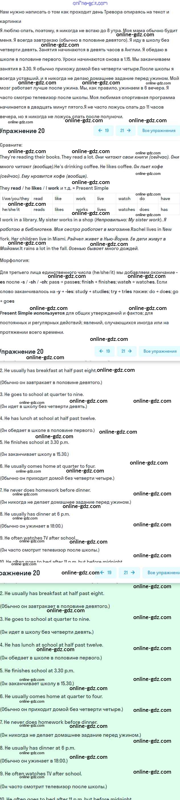 Готовые домашние задания по Английскому языку за 6 класс Учебник Вербицкая, Гаярделли Forward 2017 - Unit 2. Daily routines Часть 1 20