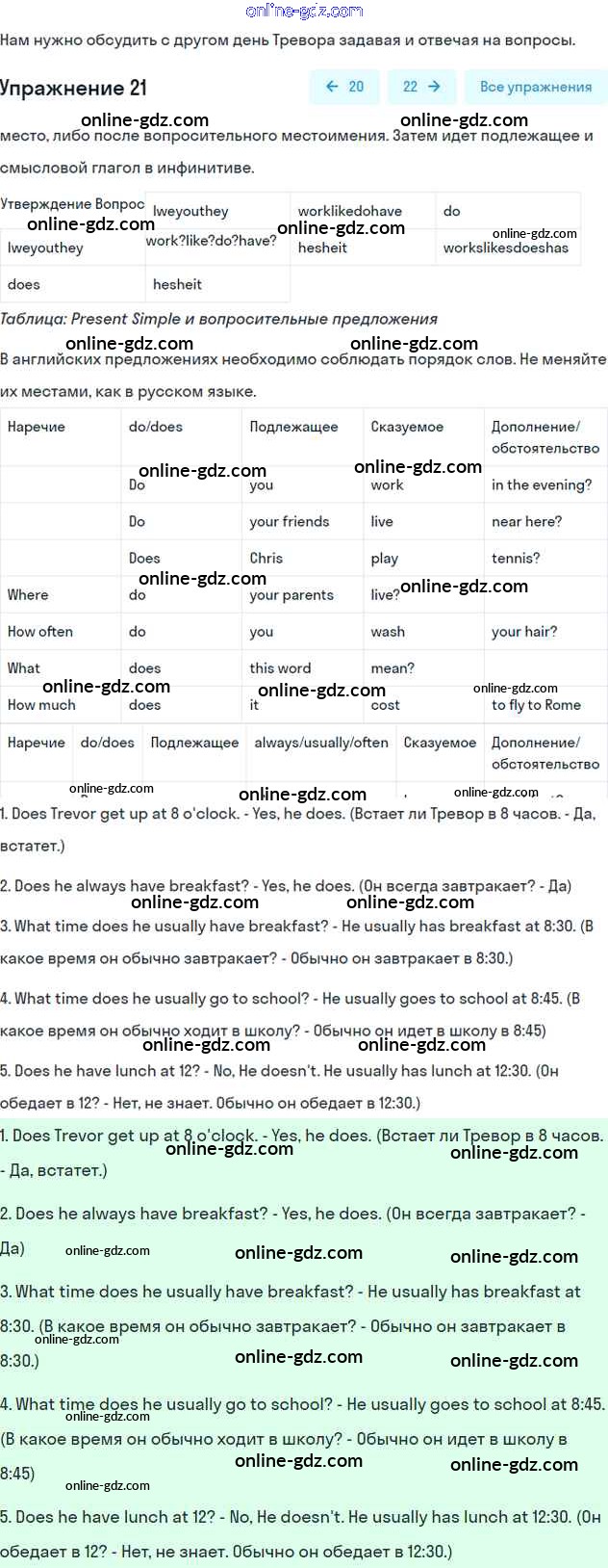 Готовые домашние задания по Английскому языку за 6 класс Учебник Вербицкая, Гаярделли Forward 2017 - Unit 2. Daily routines Часть 1 21