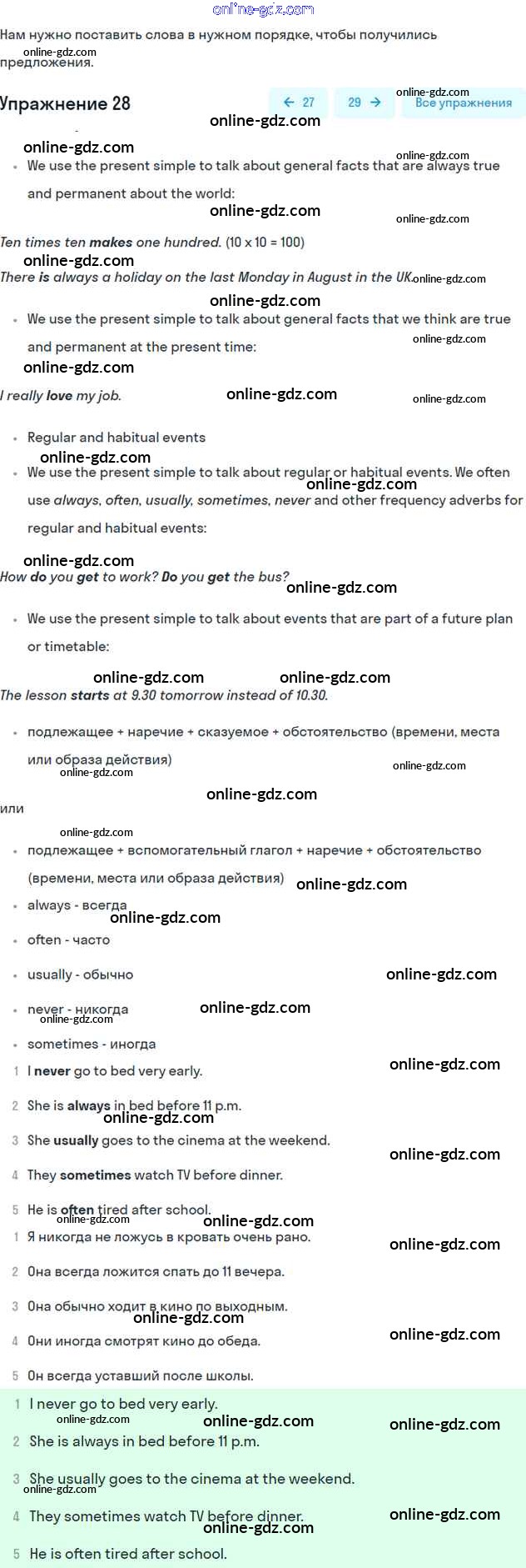 Готовые домашние задания по Английскому языку за 6 класс Учебник Вербицкая, Гаярделли Forward 2017 - Unit 2. Daily routines Часть 1 28