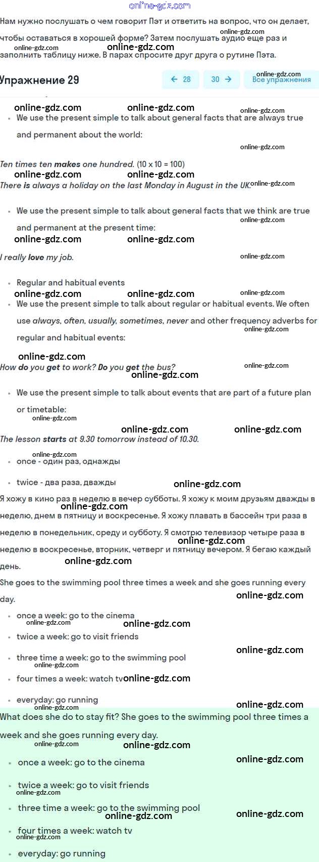 Готовые домашние задания по Английскому языку за 6 класс Учебник Вербицкая, Гаярделли Forward 2017 - Unit 2. Daily routines Часть 1 29