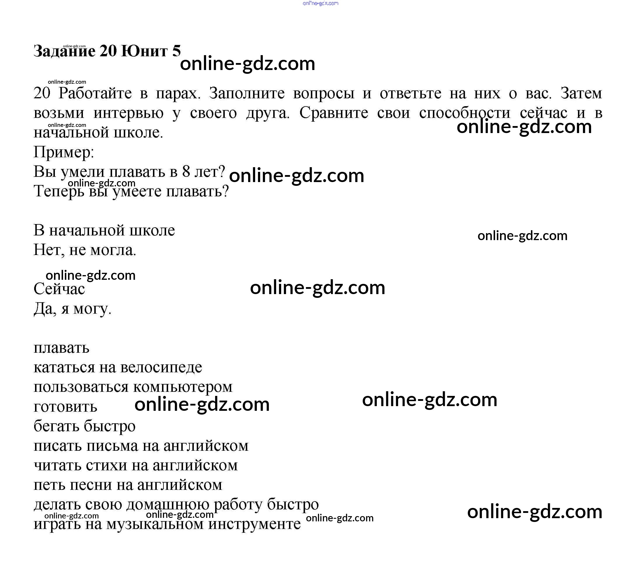 Готовые домашние задания по Английскому языку за 6 класс Учебник Вербицкая, Гаярделли Forward 2017 - Unit 5. Talking about abilities Часть 1 20
