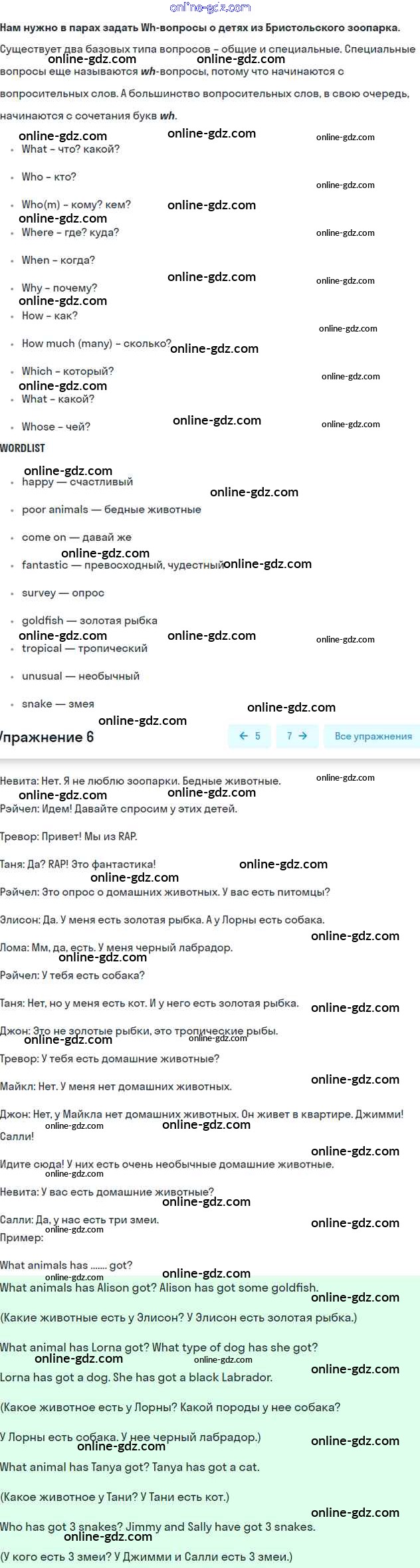 Готовые домашние задания по Английскому языку за 6 класс Учебник Вербицкая, Гаярделли Forward 2017 - Unit 6. Animal life Часть 1 6