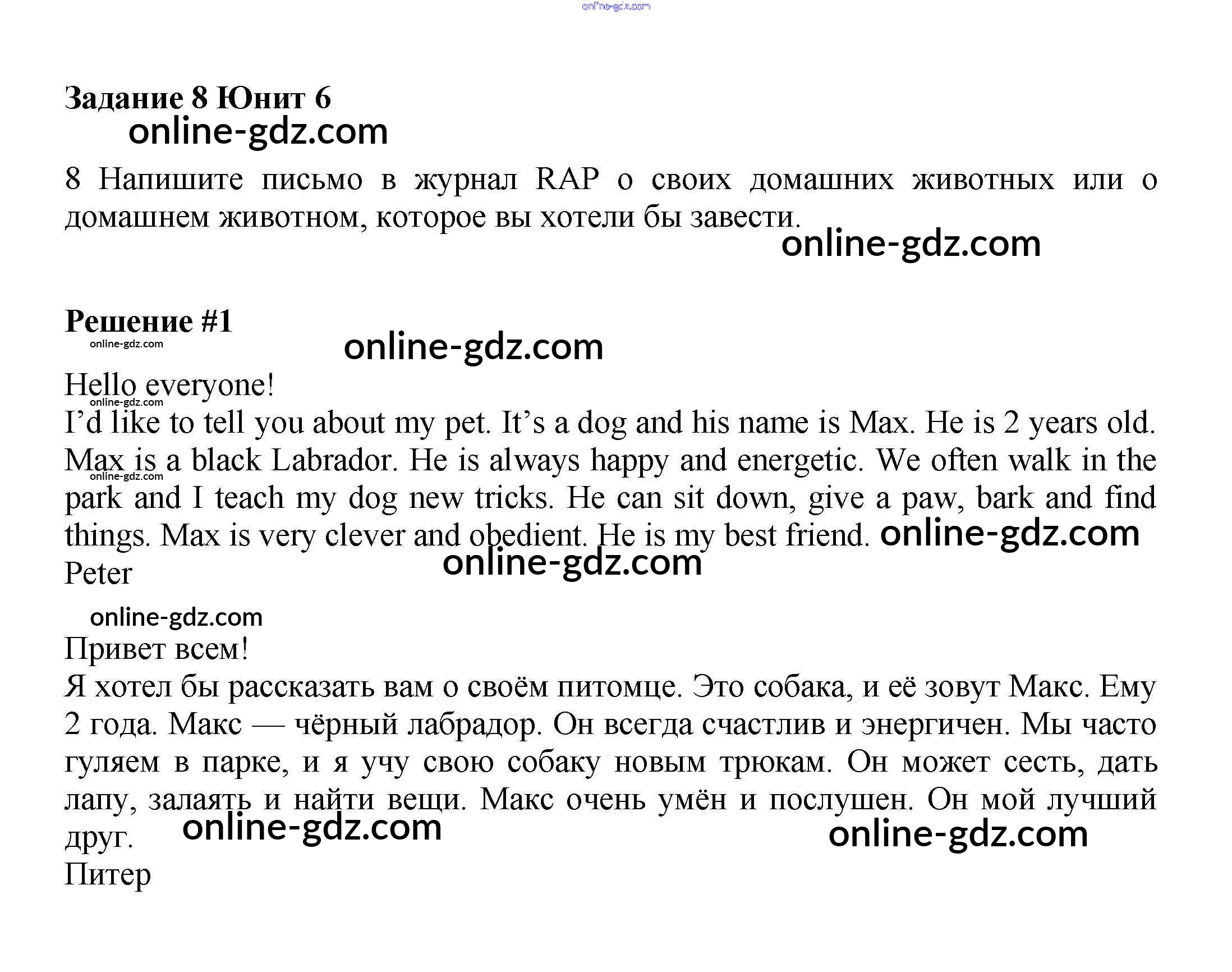 Готовые домашние задания по Английскому языку за 6 класс Учебник Вербицкая, Гаярделли Forward 2017 - Unit 6. Animal life Часть 1 8