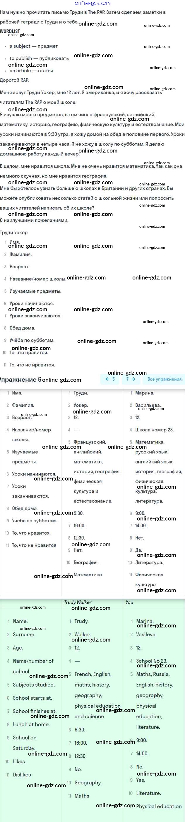 Готовые домашние задания по Английскому языку за 6 класс Учебник Вербицкая, Гаярделли Forward 2017 - Unit 10. School subjects Часть 2 6