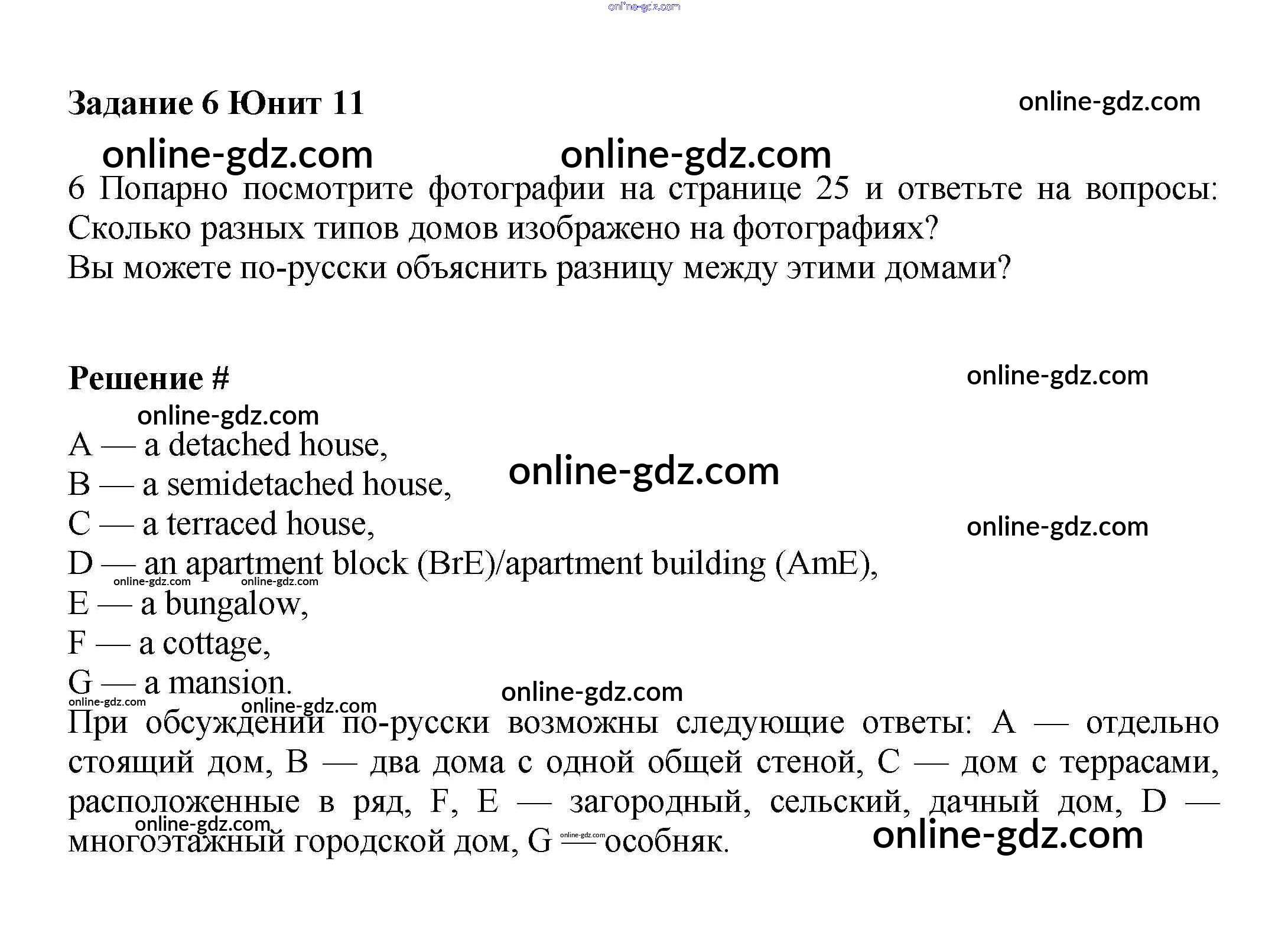 Готовые домашние задания по Английскому языку за 6 класс Учебник Вербицкая, Гаярделли Forward 2017 - Unit 11. Homes and houses Часть 2 6