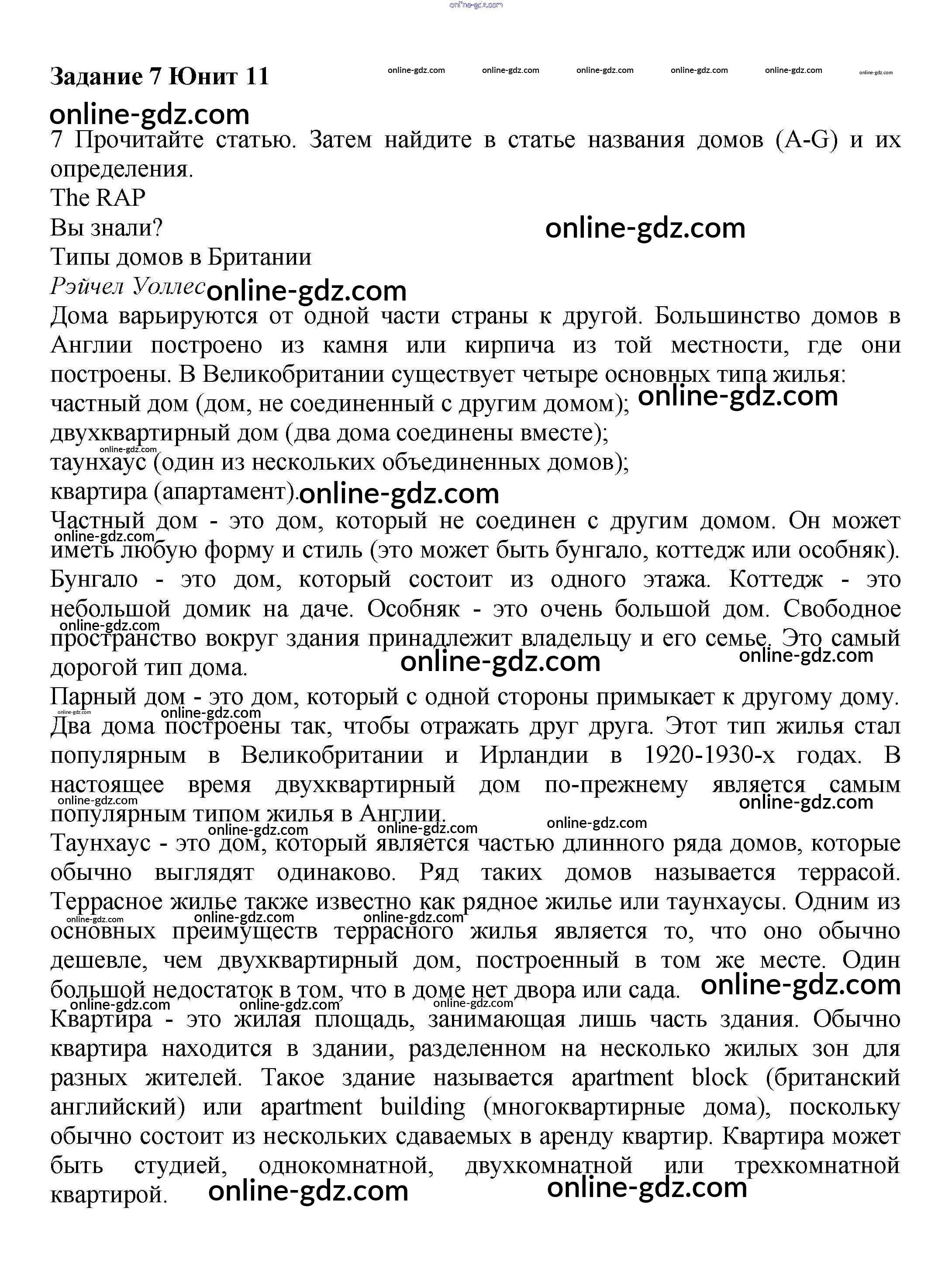 Готовые домашние задания по Английскому языку за 6 класс Учебник Вербицкая, Гаярделли Forward 2017 - Unit 11. Homes and houses Часть 2 7