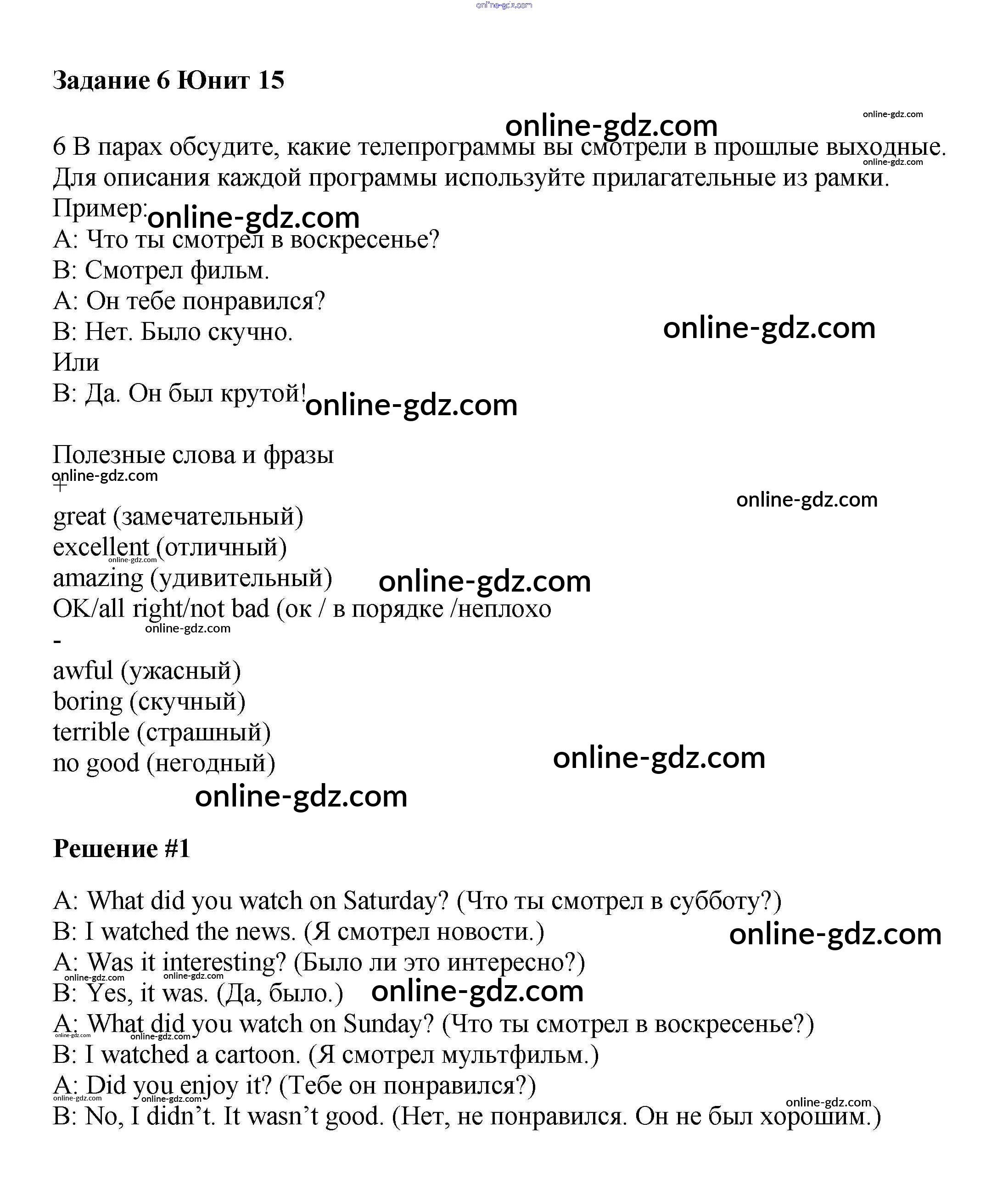 Готовые домашние задания по Английскому языку за 6 класс Учебник Вербицкая, Гаярделли Forward 2017 - Unit 15. TV watching Часть 2 6